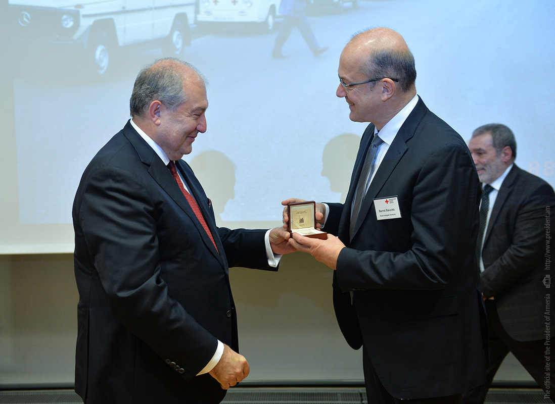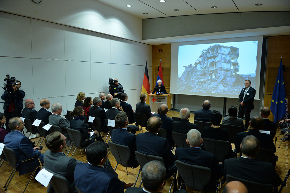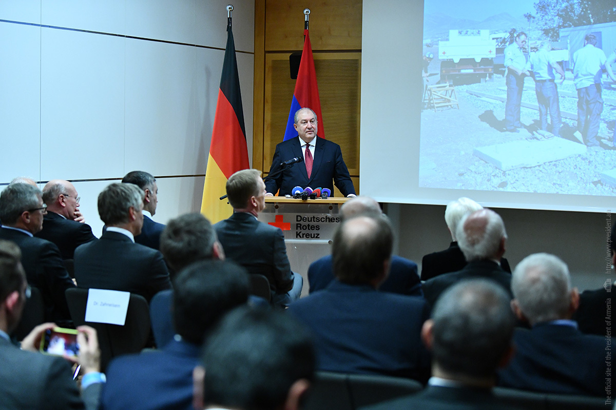 Addressing President of the German Red Cross Gerda Hasselfeldt, President Sarkissian asked her to convey his words of gratitude to thousands of German Red Cross workers, all those who are contributing their time, life, and compassion to help other overcome difficulties.