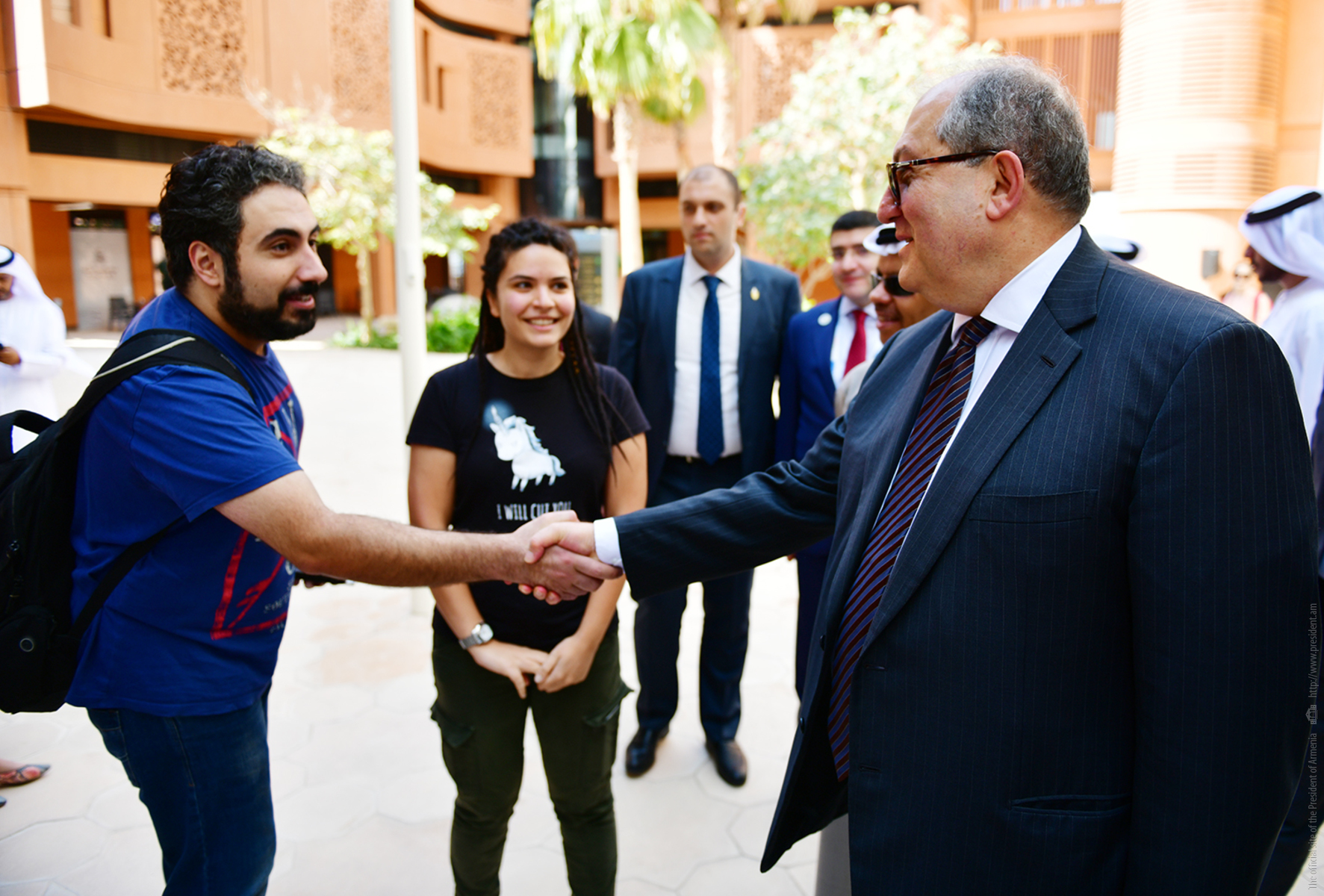 President Sarkissian in Masdar met also with the students from Armenia Maria and Arik, asked about their study progress and programs for the future.