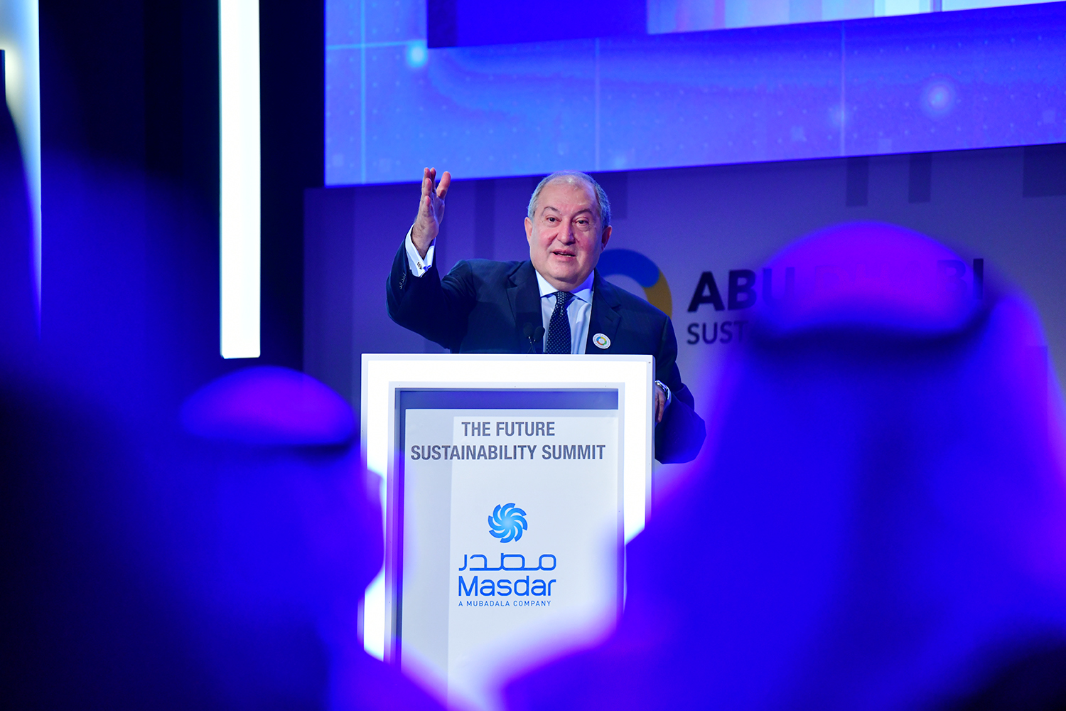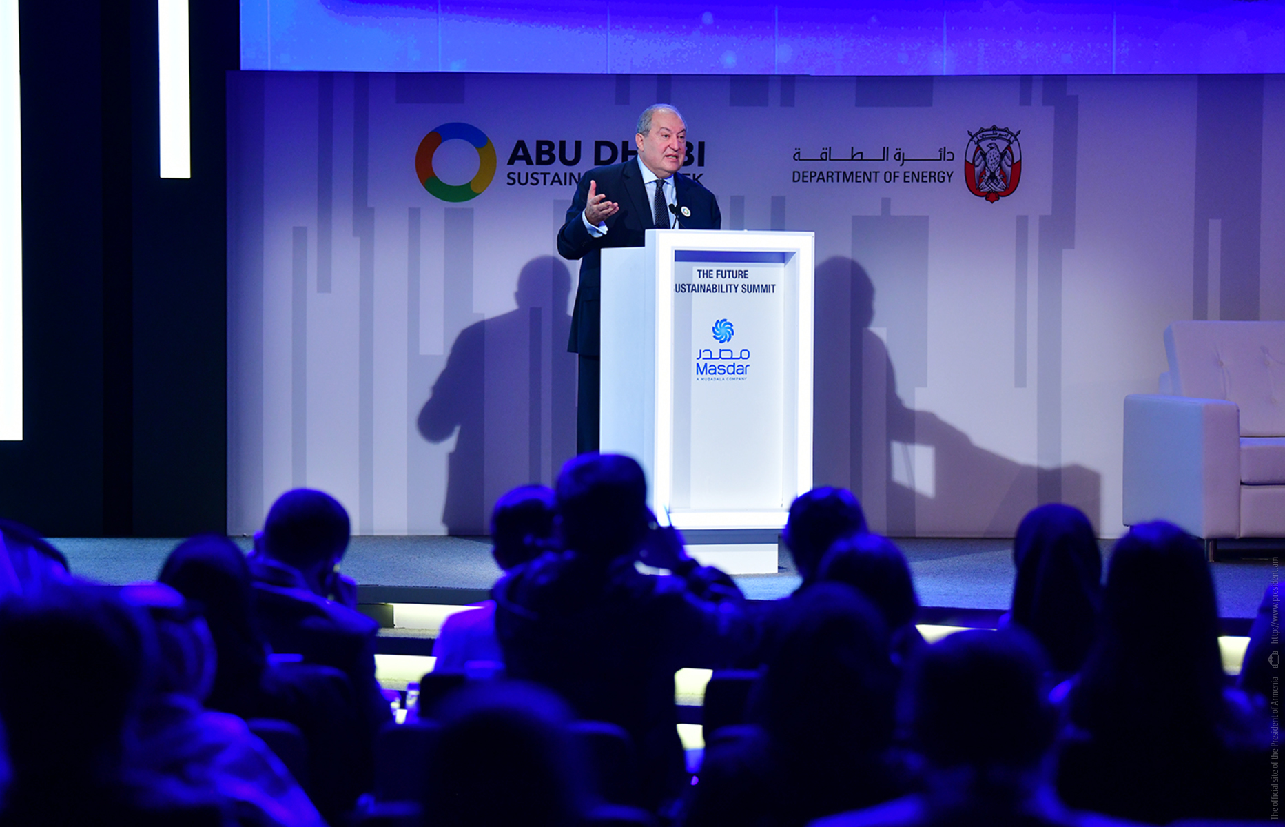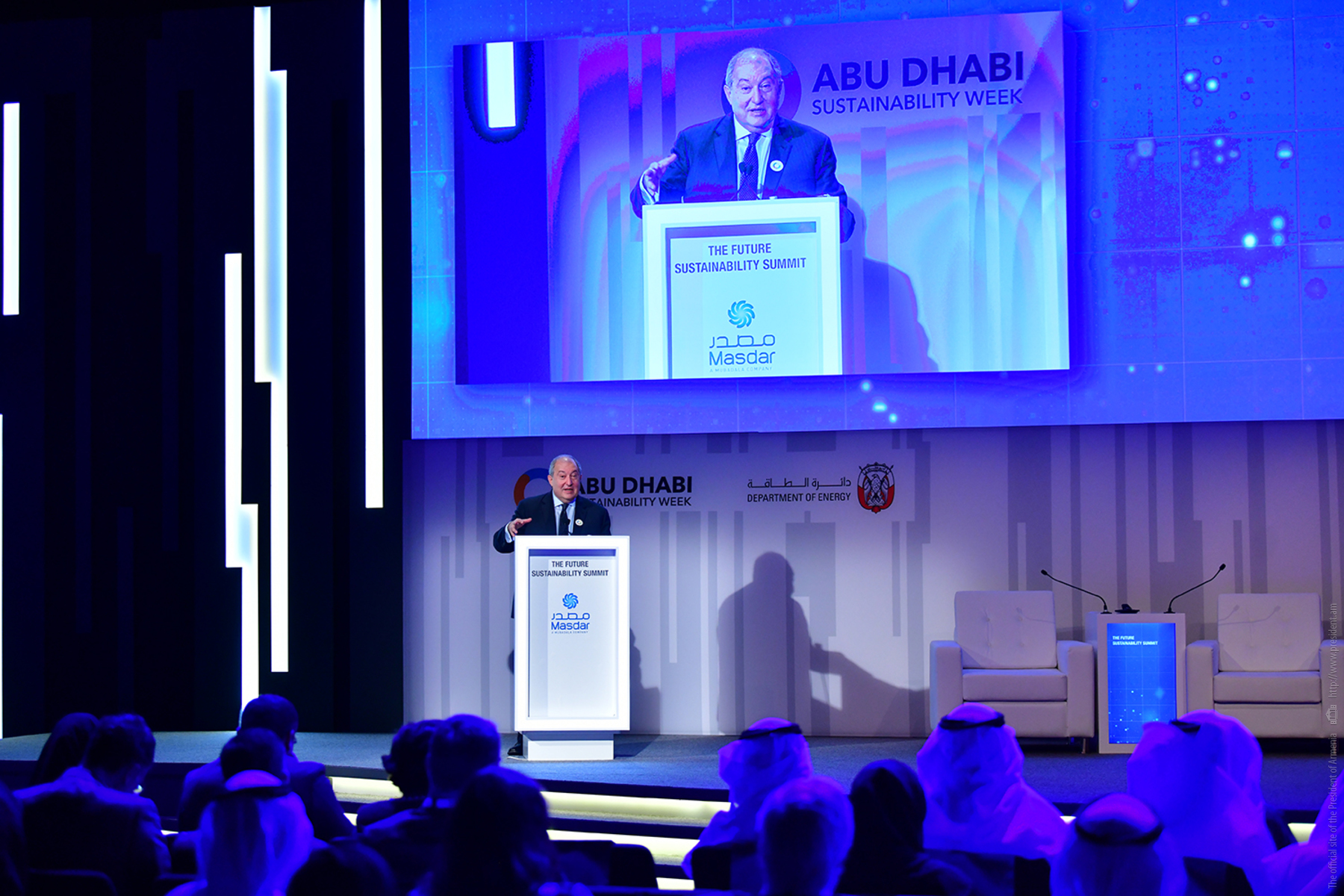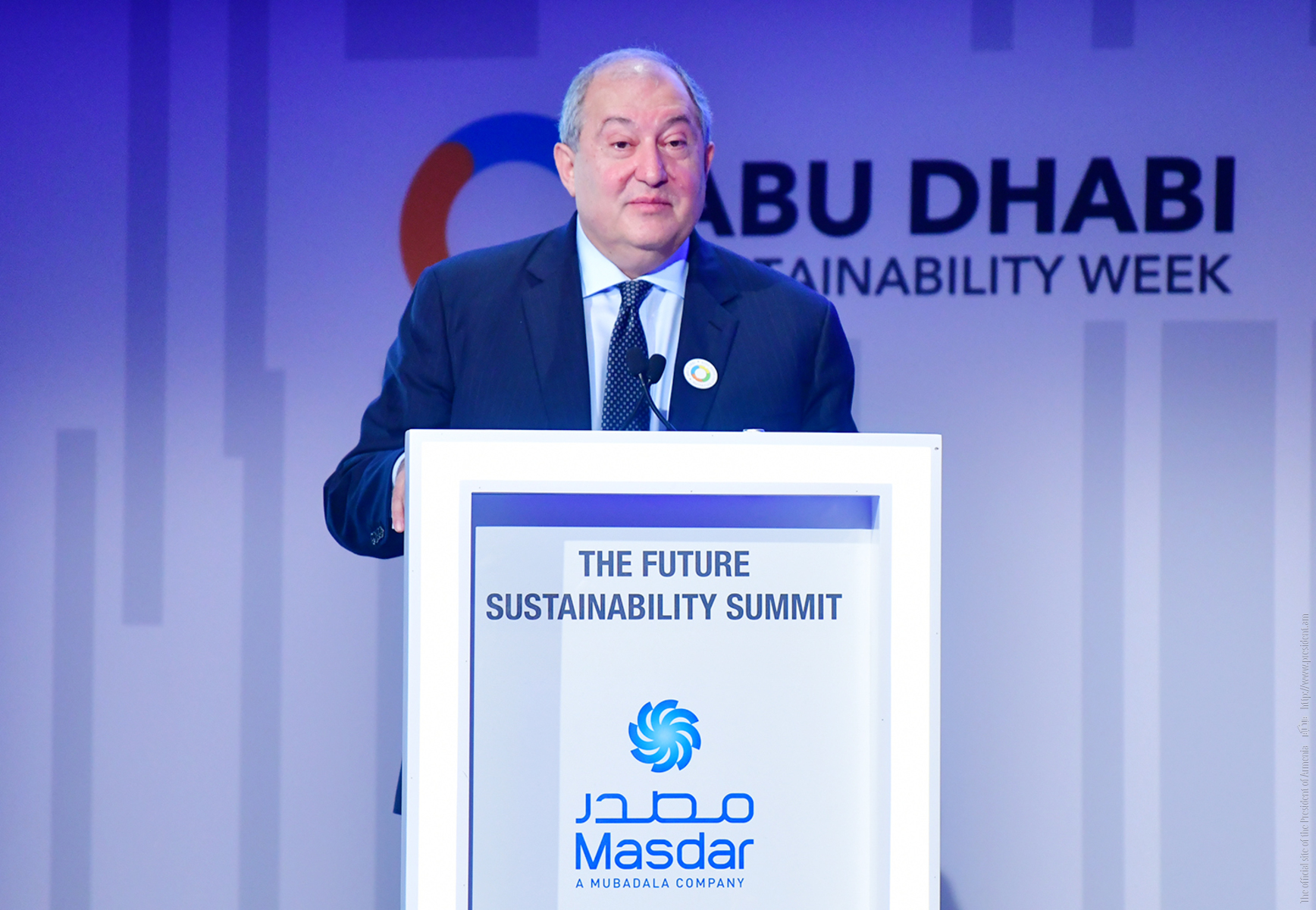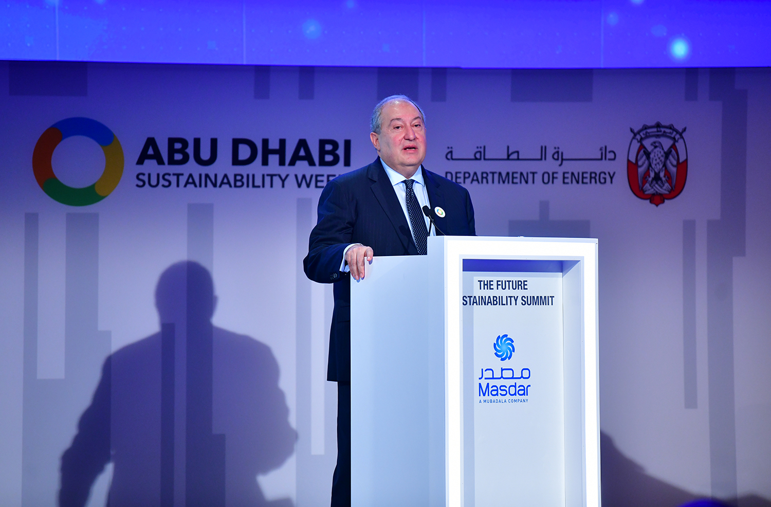 President Armen Sarkissian, who is in the United Arab Emirates on official visit, at the capital city of Abu Dhabi in the framework of the Abu Dhabi Sustainability Week forum participated today at the Future Summit conference. The conference was opened by the Minister of Energy and Industry of the UAE Suhail Mohammed Faraj Al Mazroui.