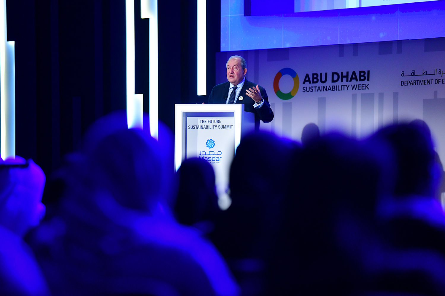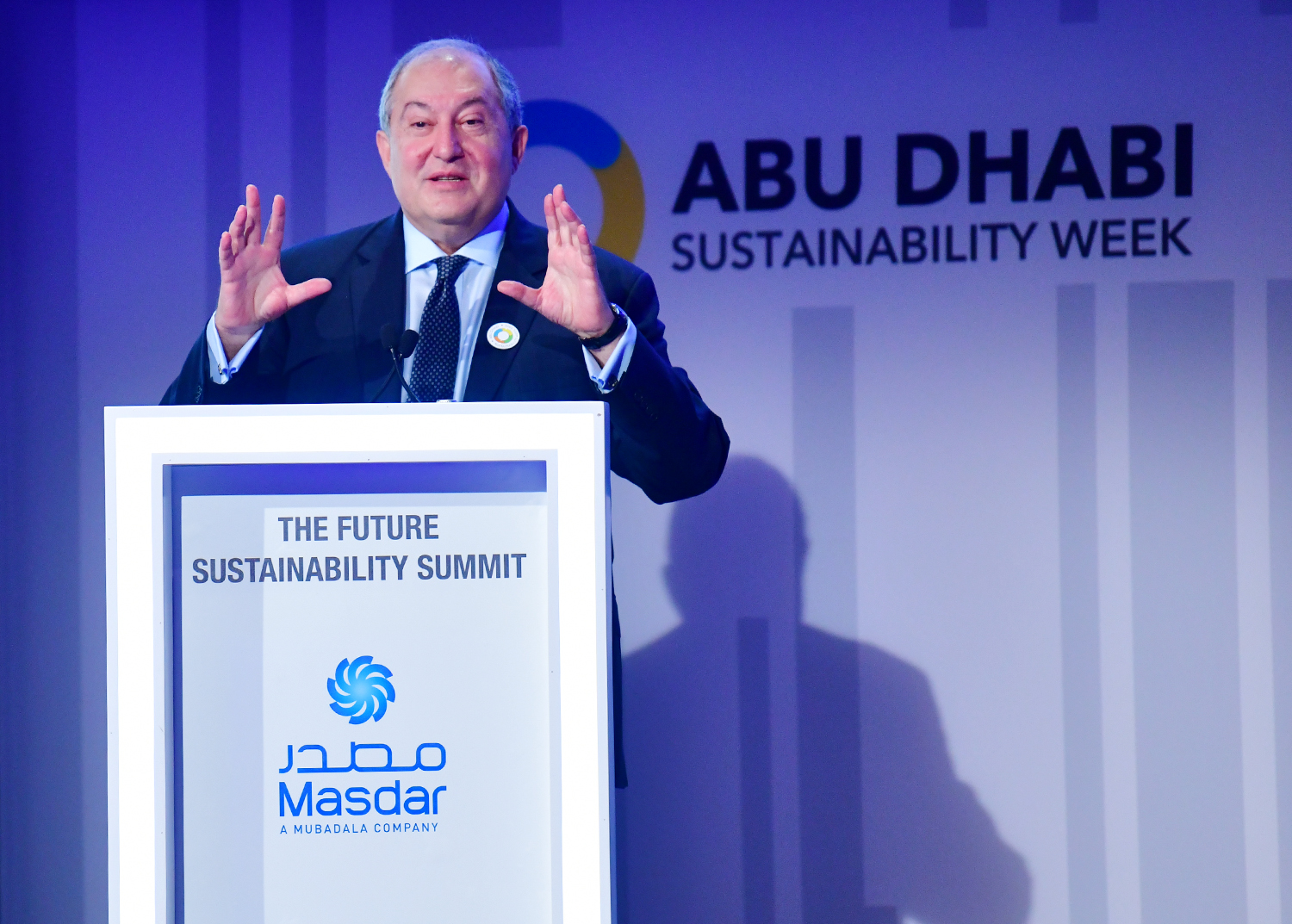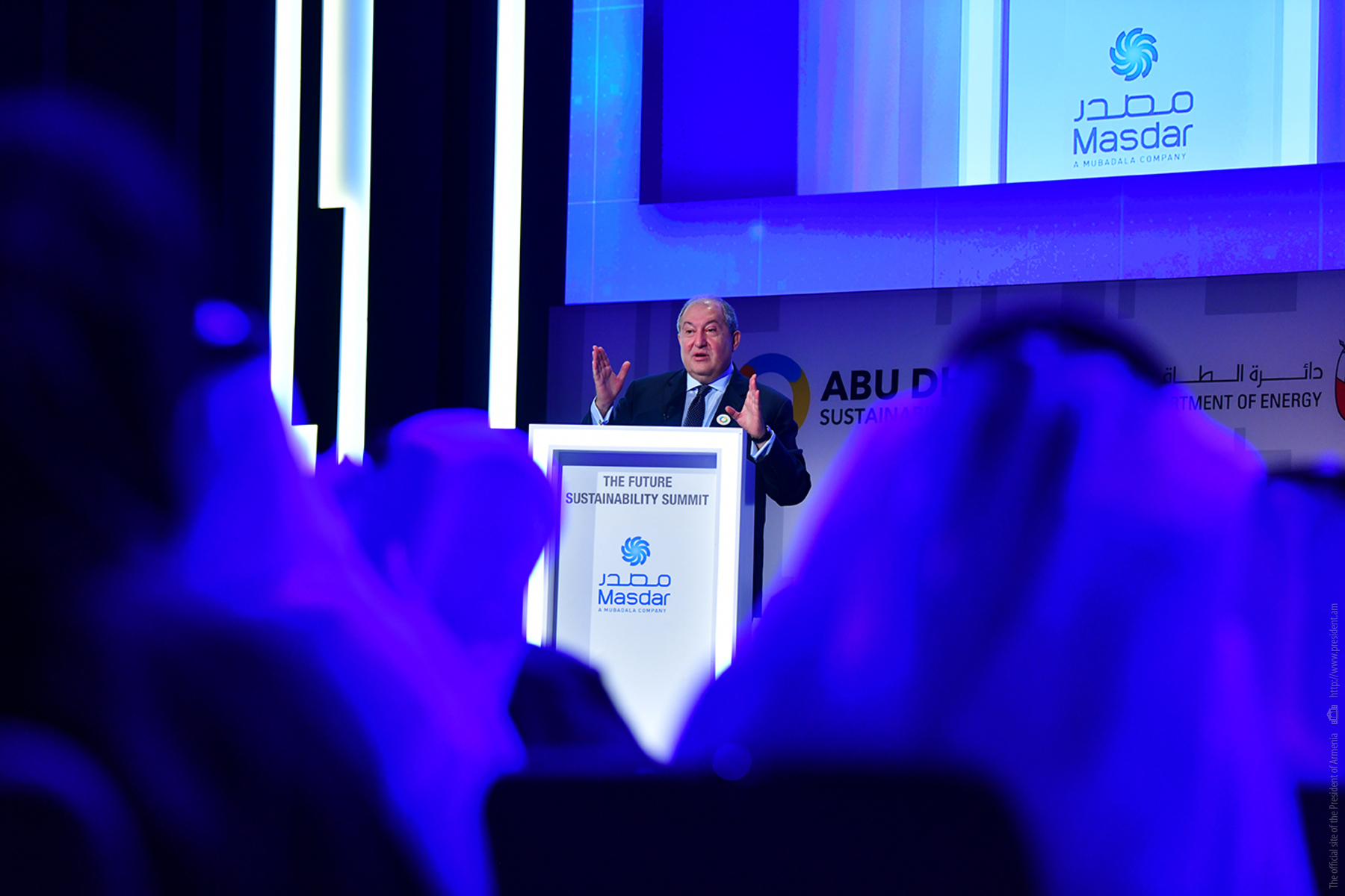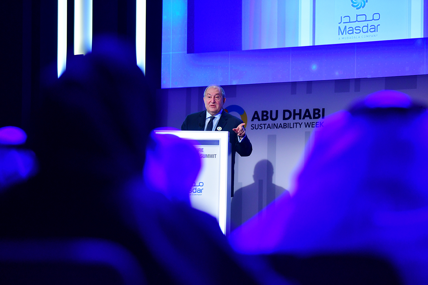 President Armen Sarkissian, who is in the United Arab Emirates on official visit, at the capital city of Abu Dhabi in the framework of the Abu Dhabi Sustainability Week forum participated today at the Future Summit conference. The conference was opened by the Minister of Energy and Industry of the UAE Suhail Mohammed Faraj Al Mazroui.