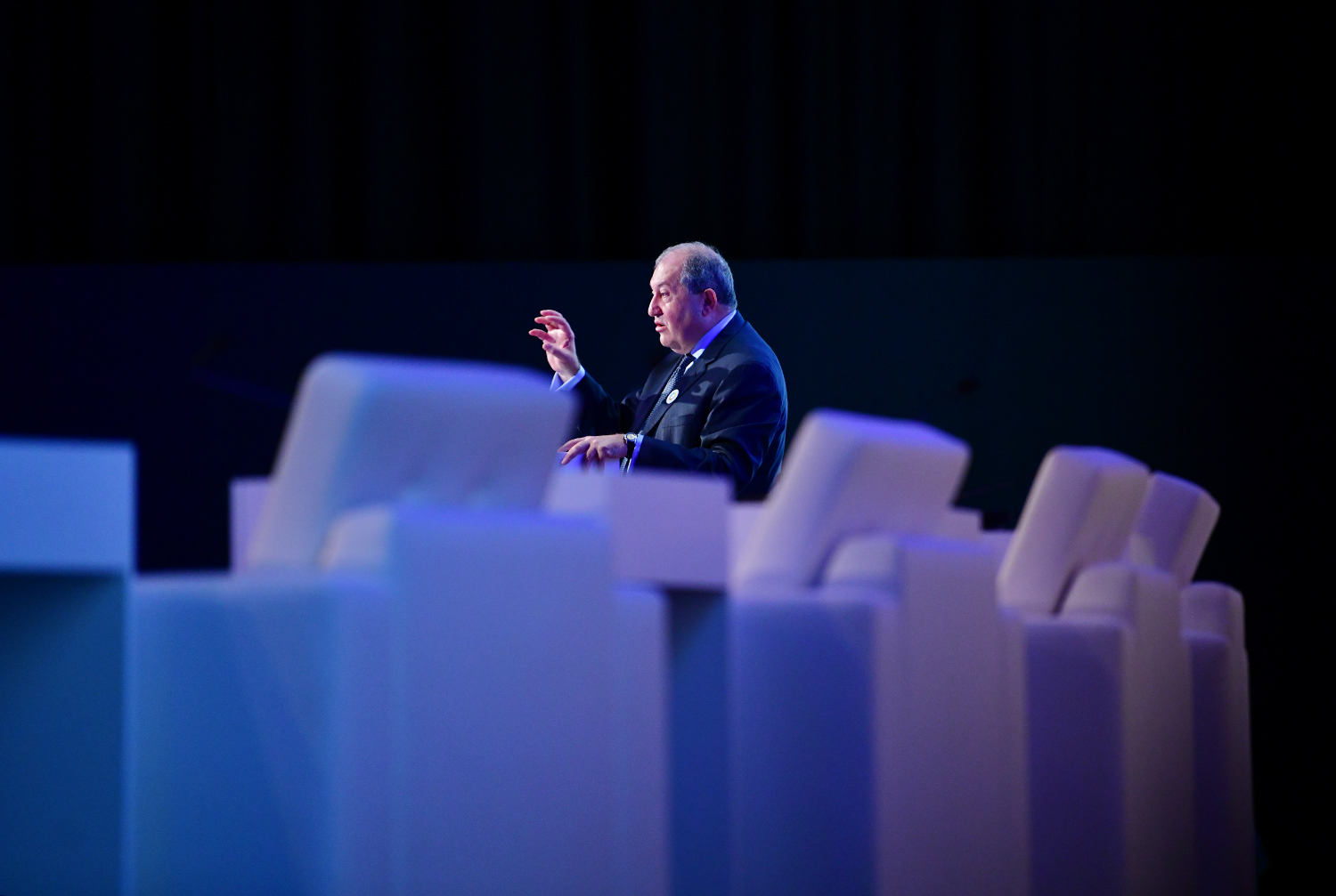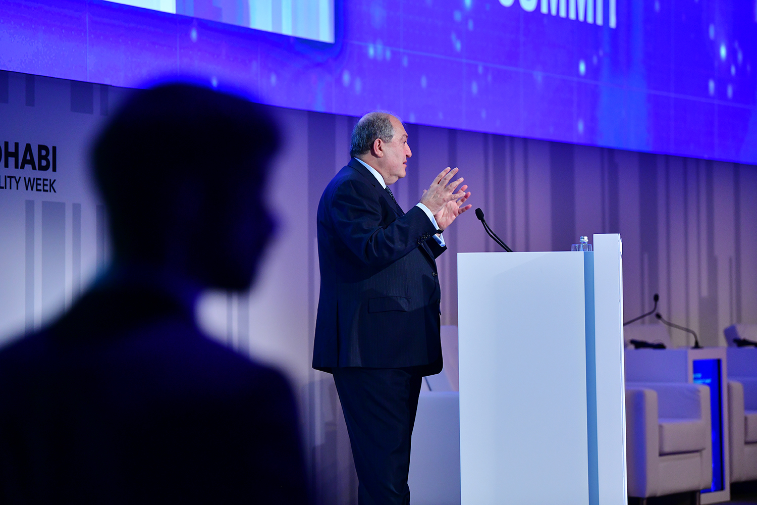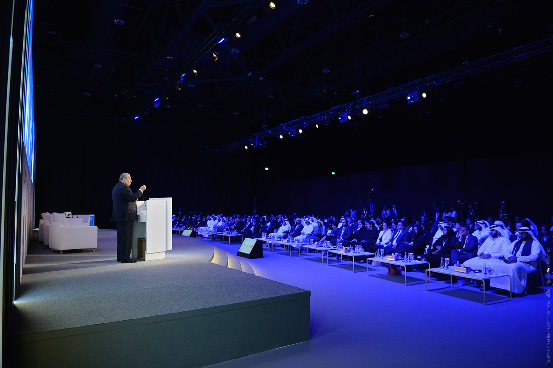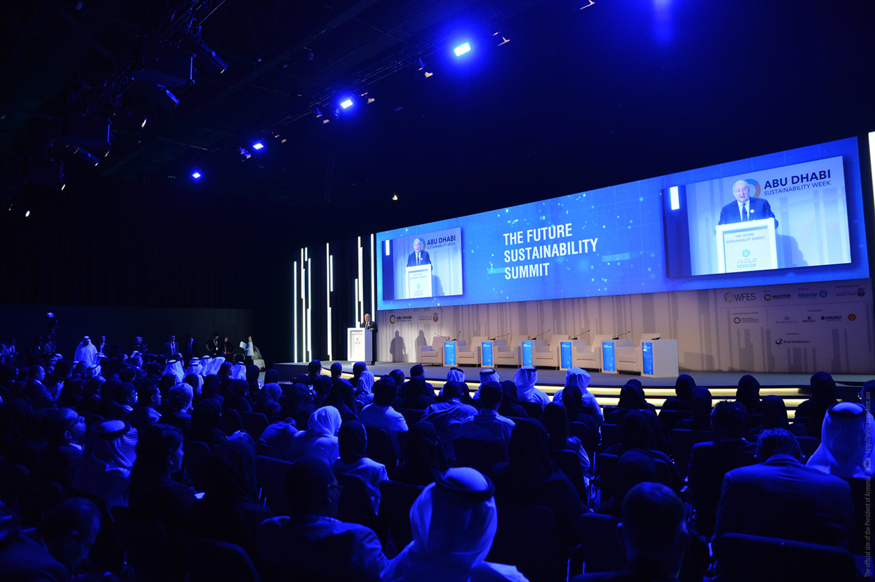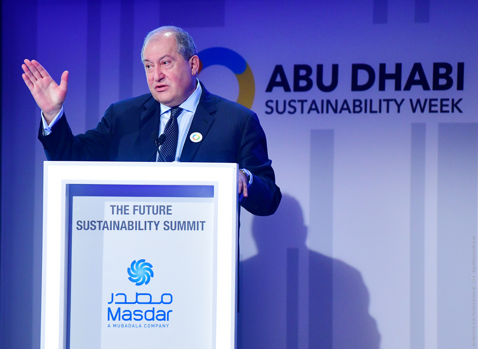 President Armen Sarkissian, who is in the United Arab Emirates on official visit, at the capital city of Abu Dhabi in the framework of the Abu Dhabi Sustainability Week forum participated today at the Future Summit conference. The conference was opened by the Minister of Energy and Industry of the UAE Suhail Mohammed Faraj Al Mazroui.