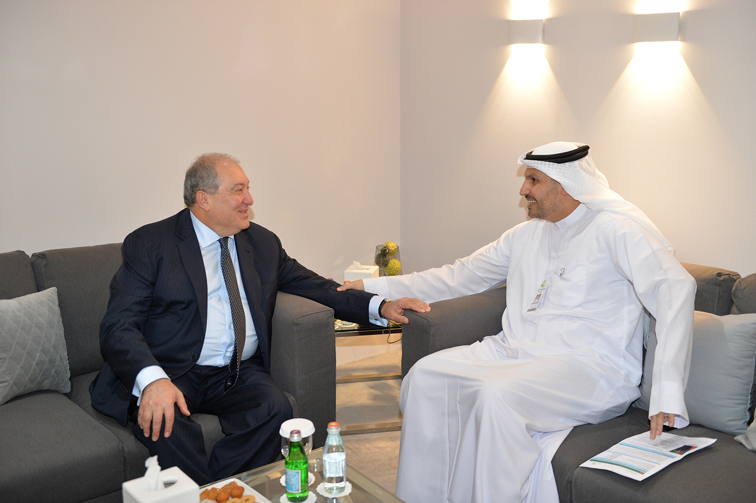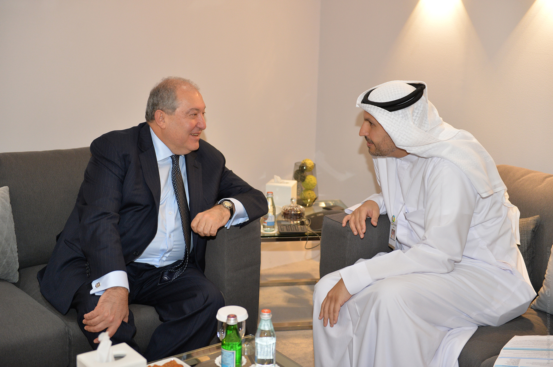 President Armen Sarkissian, who is in the United Arab Emirates on official visit, met today with the Managing Director of the MUBADALA investment company Khaldoon Khalifa Al Mubarak.