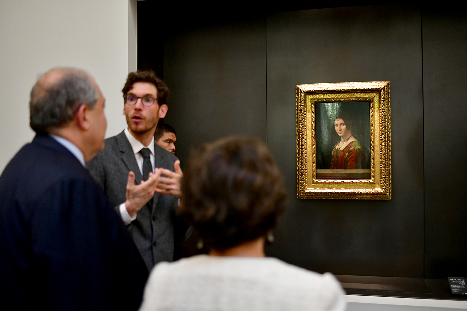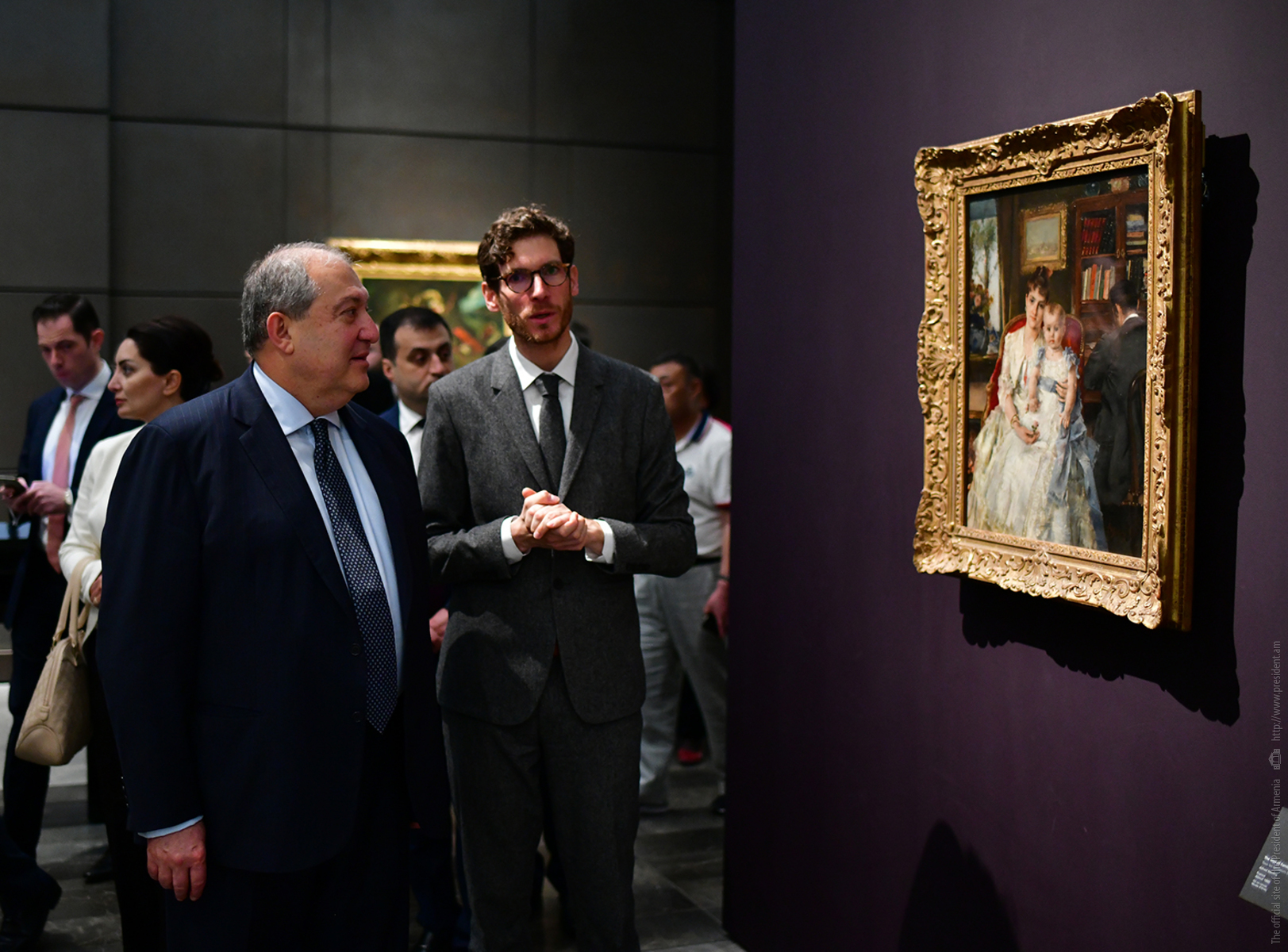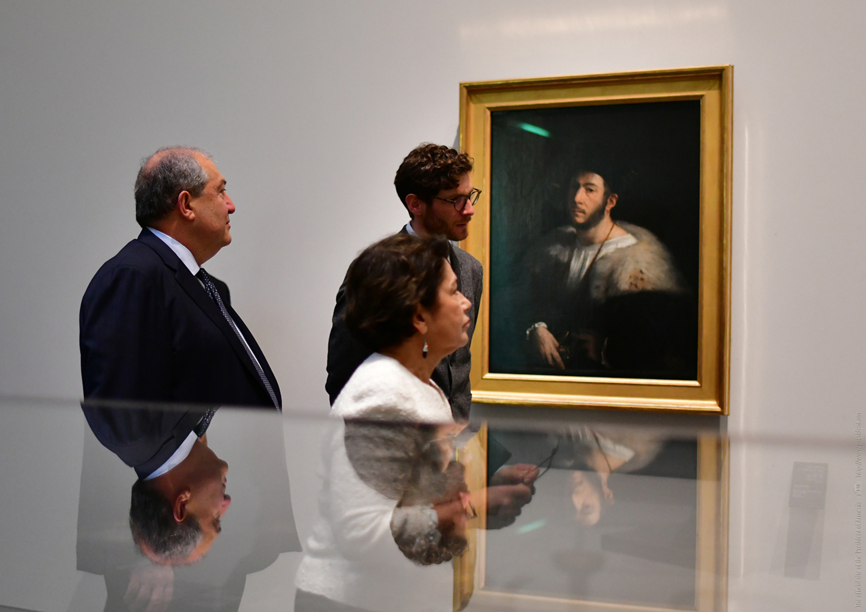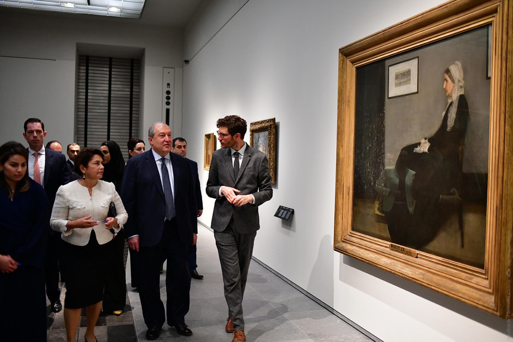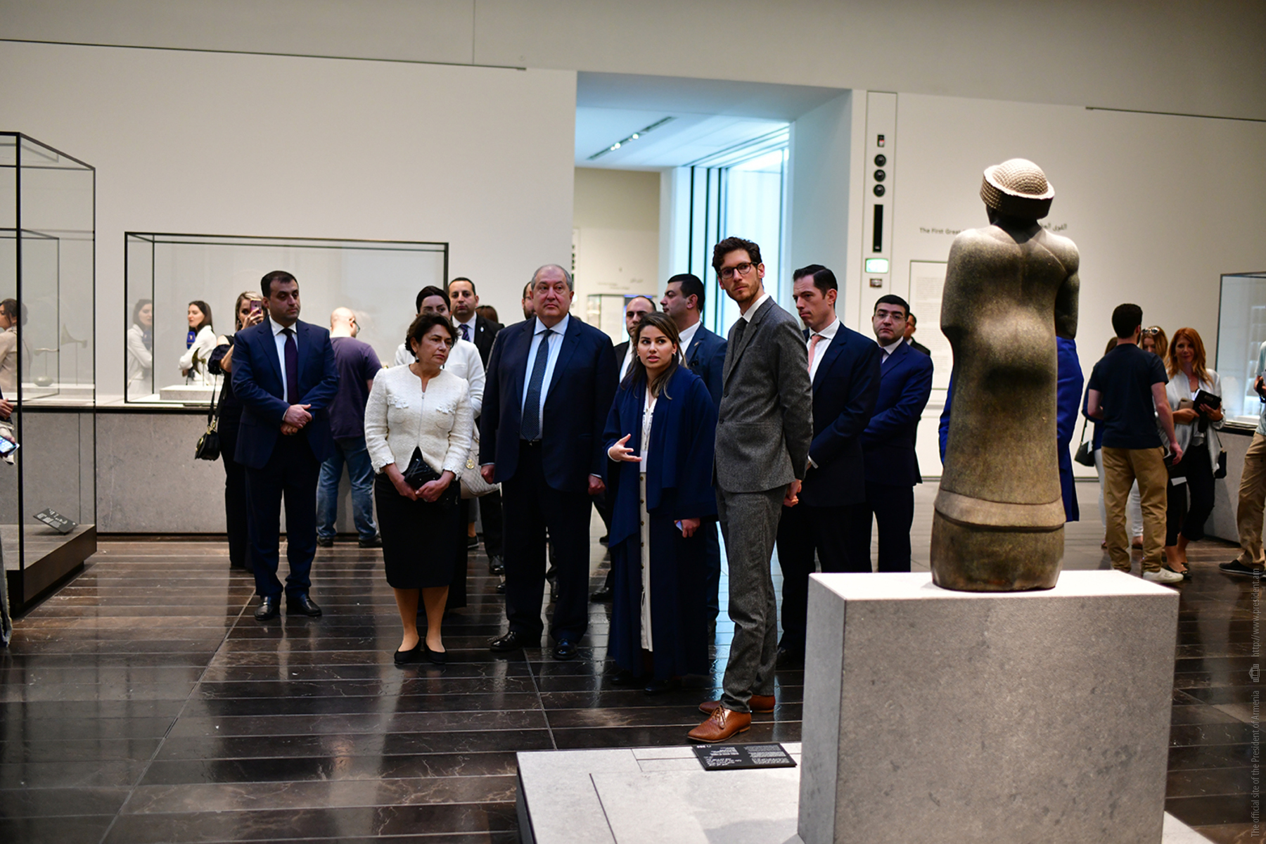 President Sarkissian and Mrs. Sarkissian toured the twelve halls of the museum where the history of world art is presented from the ancient times to modern days, observed the exhibits and artifacts. In the museum presented are also exhibits borrowed from Louvre, Centre Georges Pompidou, Versailles, Rodin Museum, and National Library of France.