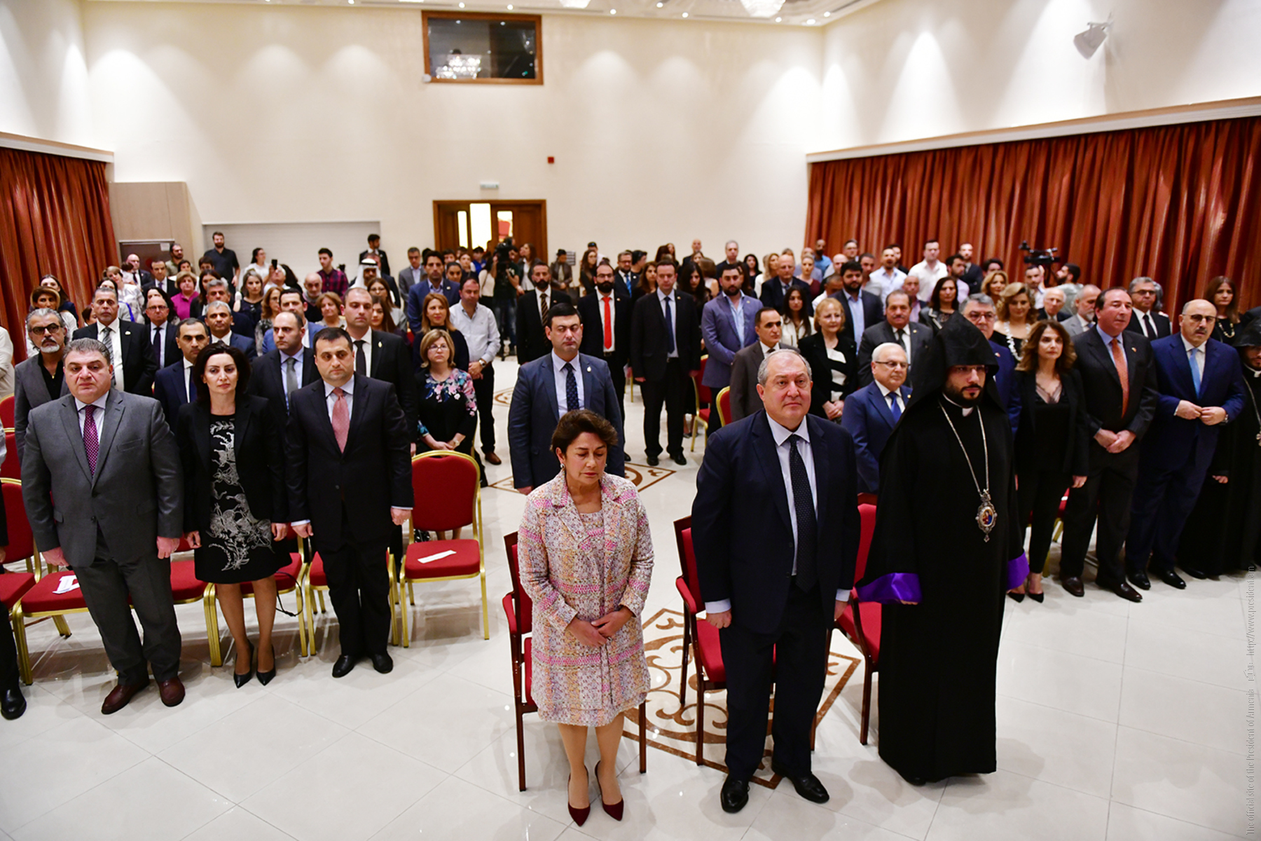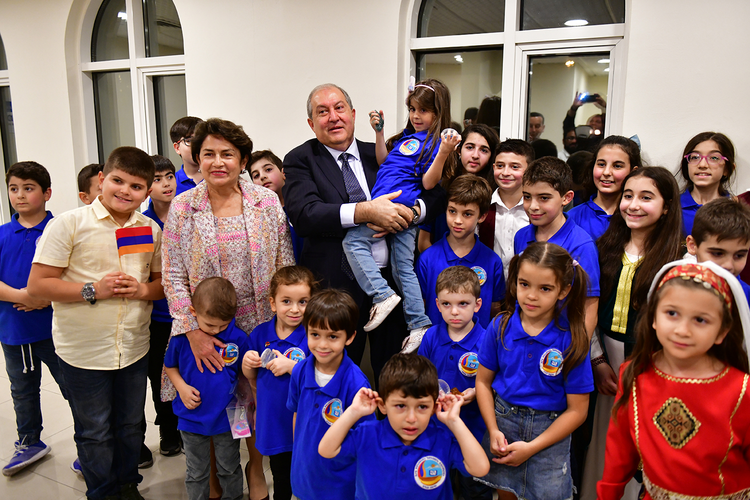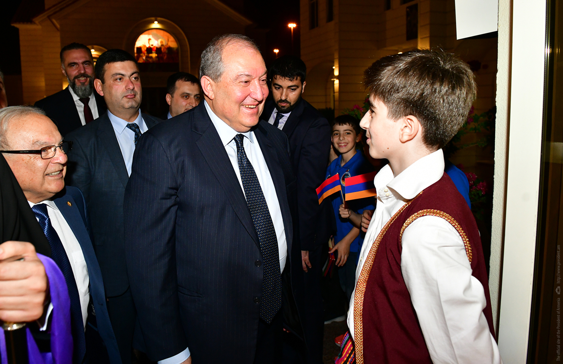 “Everything is gathered in one place – Armenian statehood with its flag and the coat of arms, the Armenian Apostolic Church, and certainly our future – the school,” President Armen Sarkissian said. He thanked the Armenian community for its unity, dedication, patriotism and preservation of national values. “Together with you, I would like to see the day when we will forget the “Spyurk” word, and all will become Hayastantsi. After all, the Fatherland is the center of our lives, but I would like to share with you another idea.