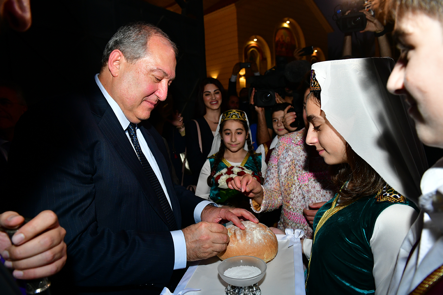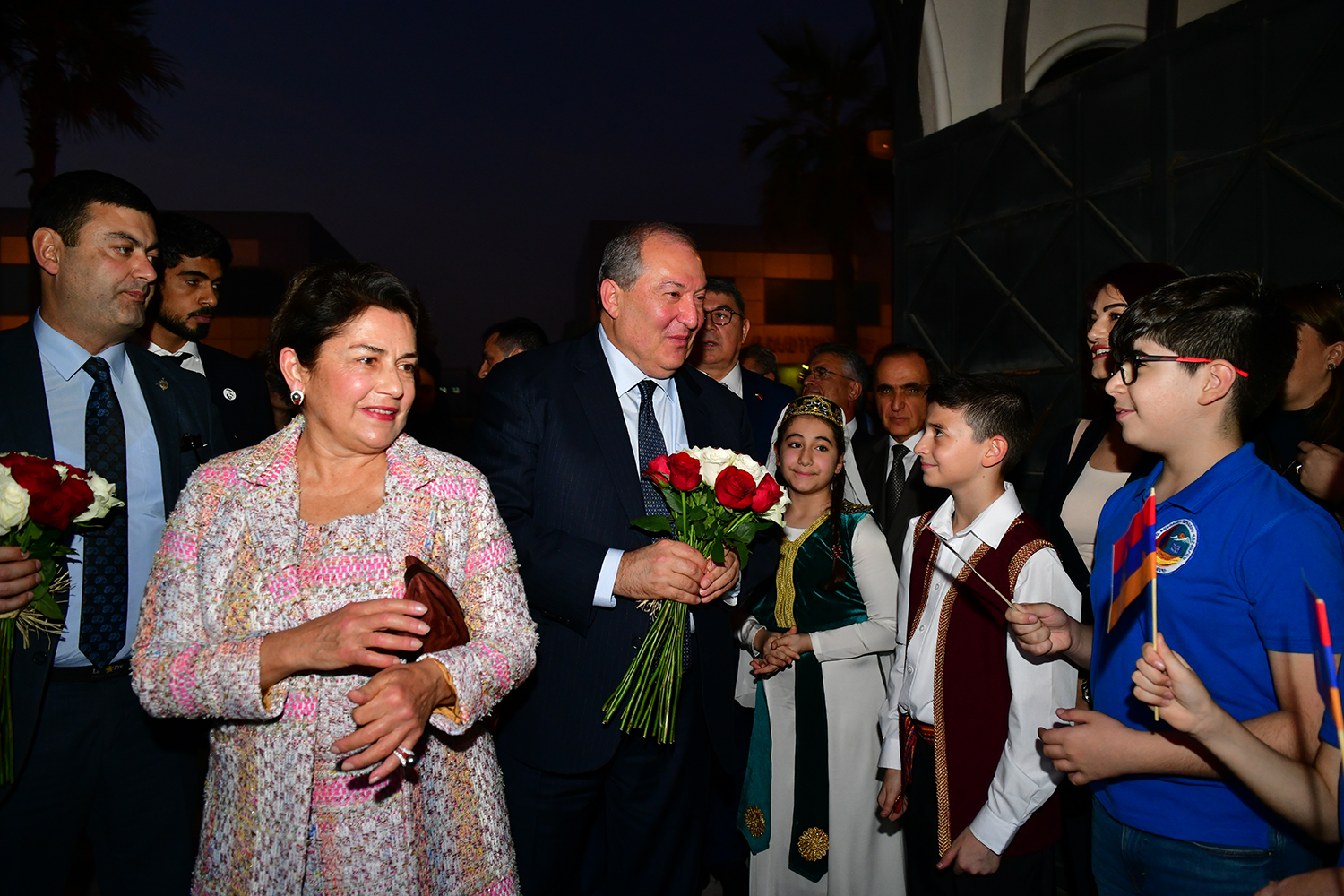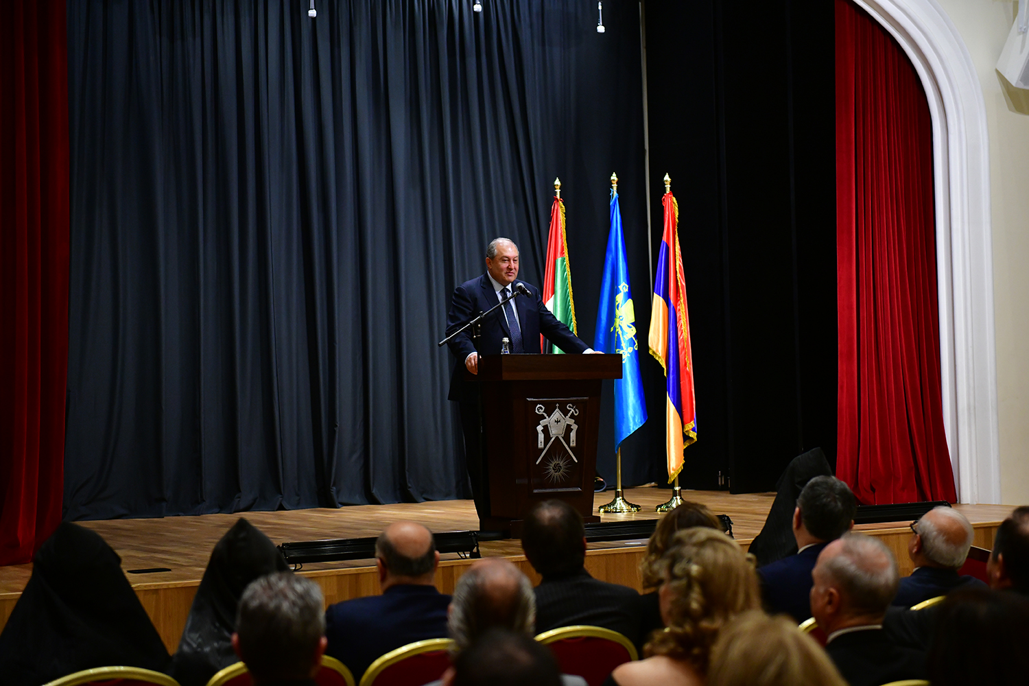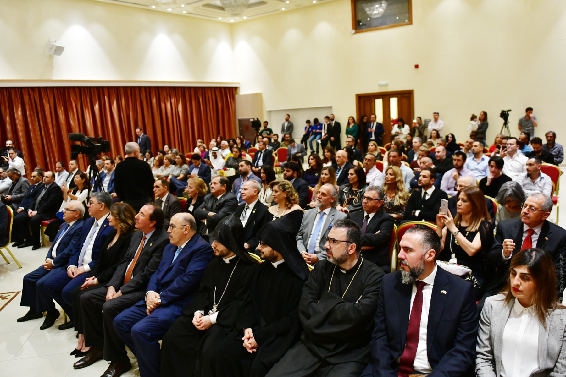 “Everything is gathered in one place – Armenian statehood with its flag and the coat of arms, the Armenian Apostolic Church, and certainly our future – the school,” President Armen Sarkissian said. He thanked the Armenian community for its unity, dedication, patriotism and preservation of national values. “Together with you, I would like to see the day when we will forget the “Spyurk” word, and all will become Hayastantsi. After all, the Fatherland is the center of our lives, but I would like to share with you another idea.