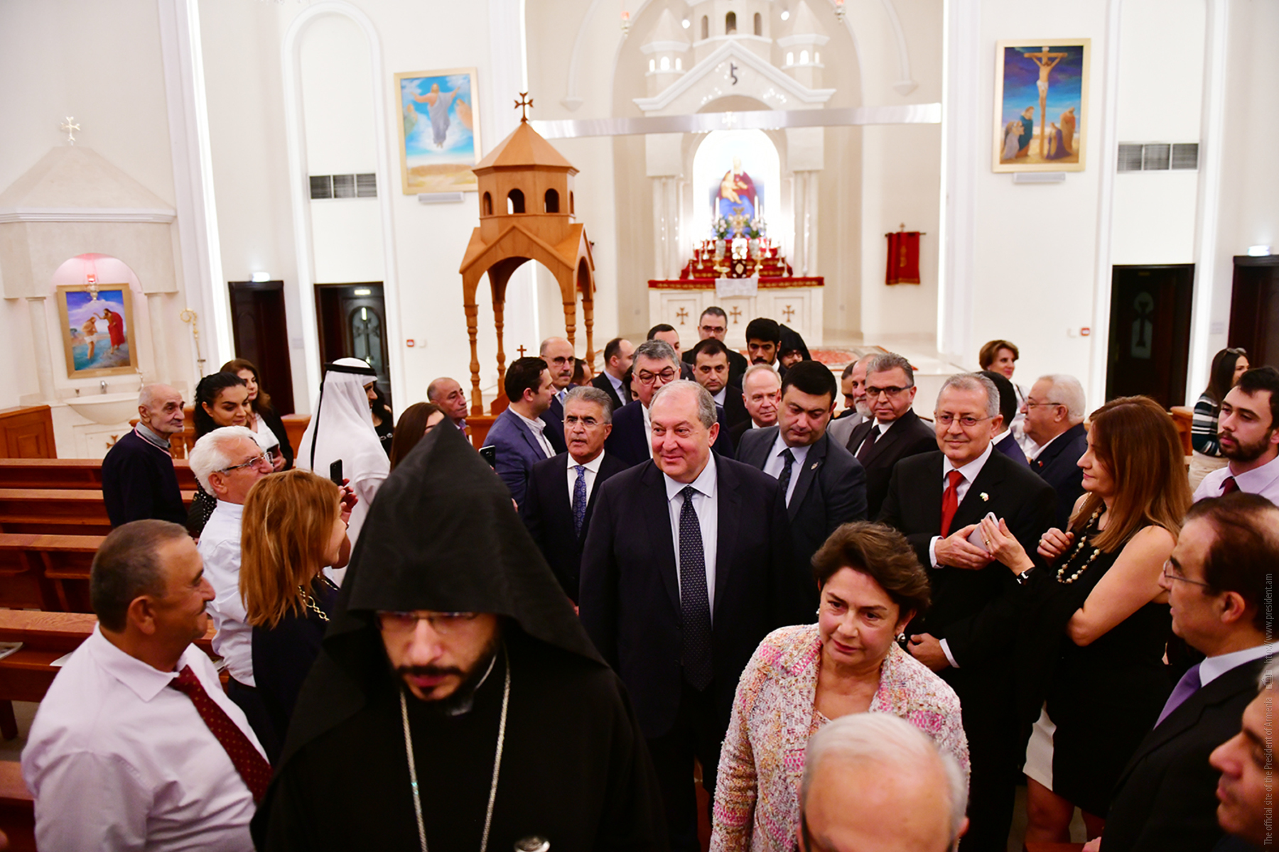 President Armen Sarkissian and Mrs. Sarkissian in the framework of the official visit to the United Arab Emirates visited today the Armenian Church of Holy Martyrs in Abu Dhabi.