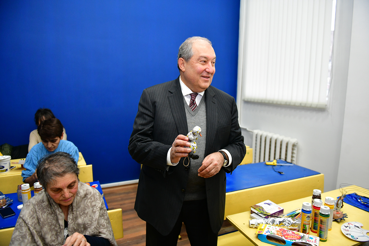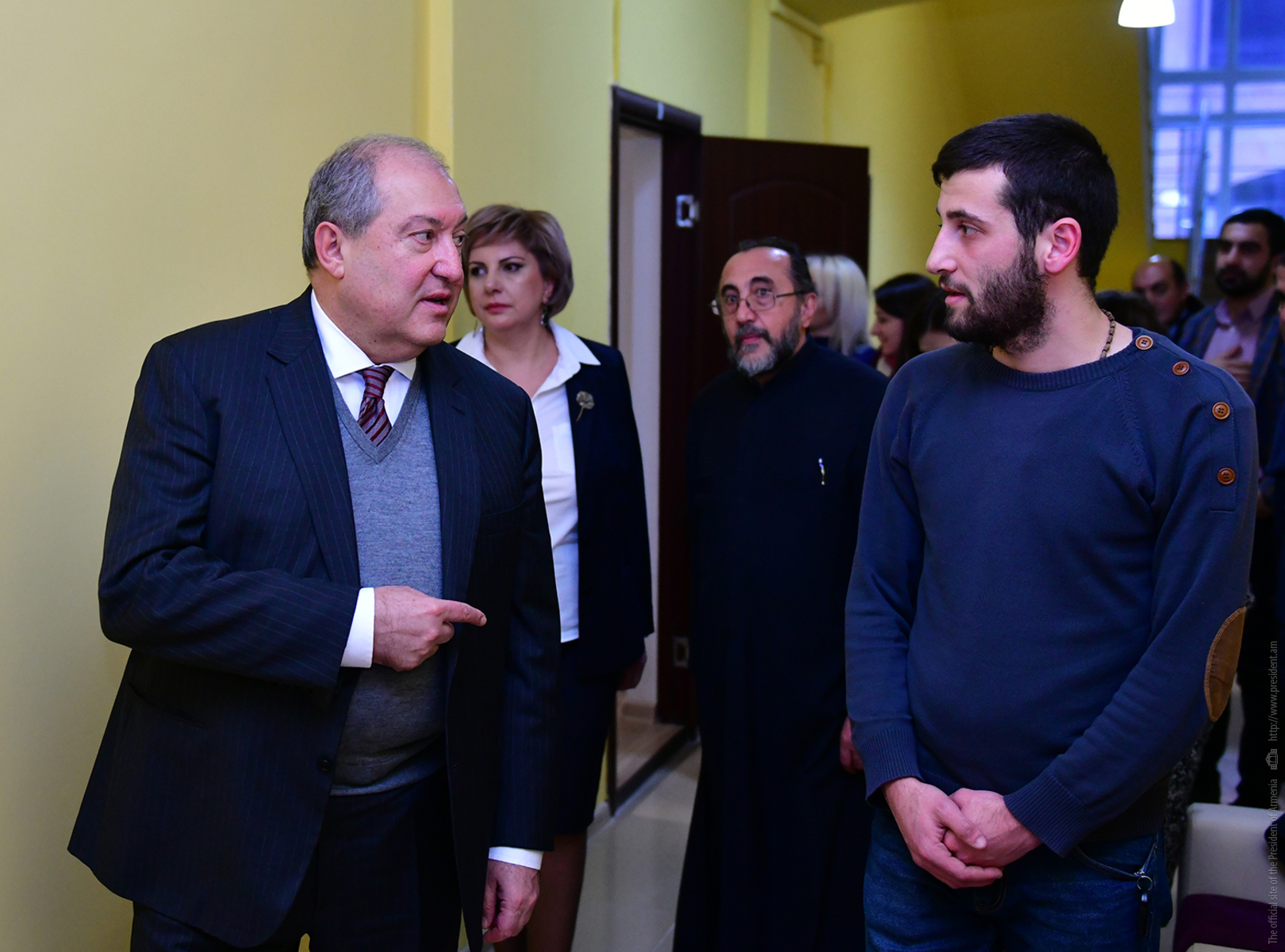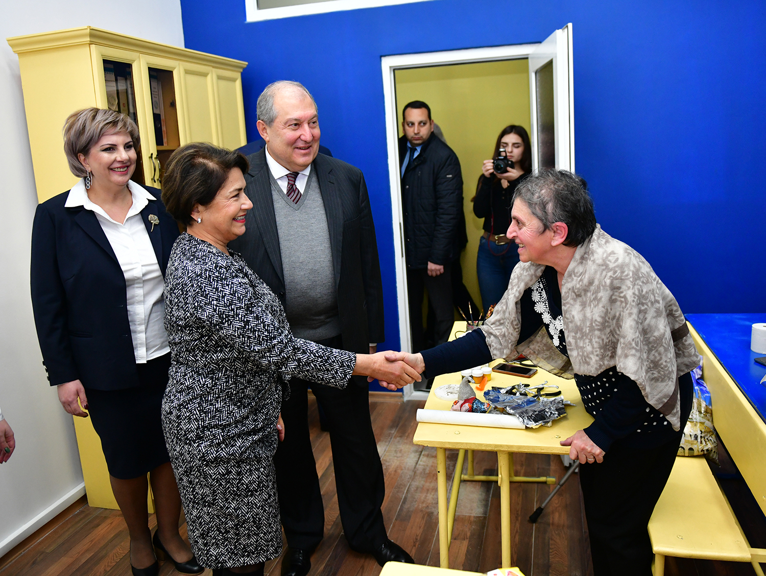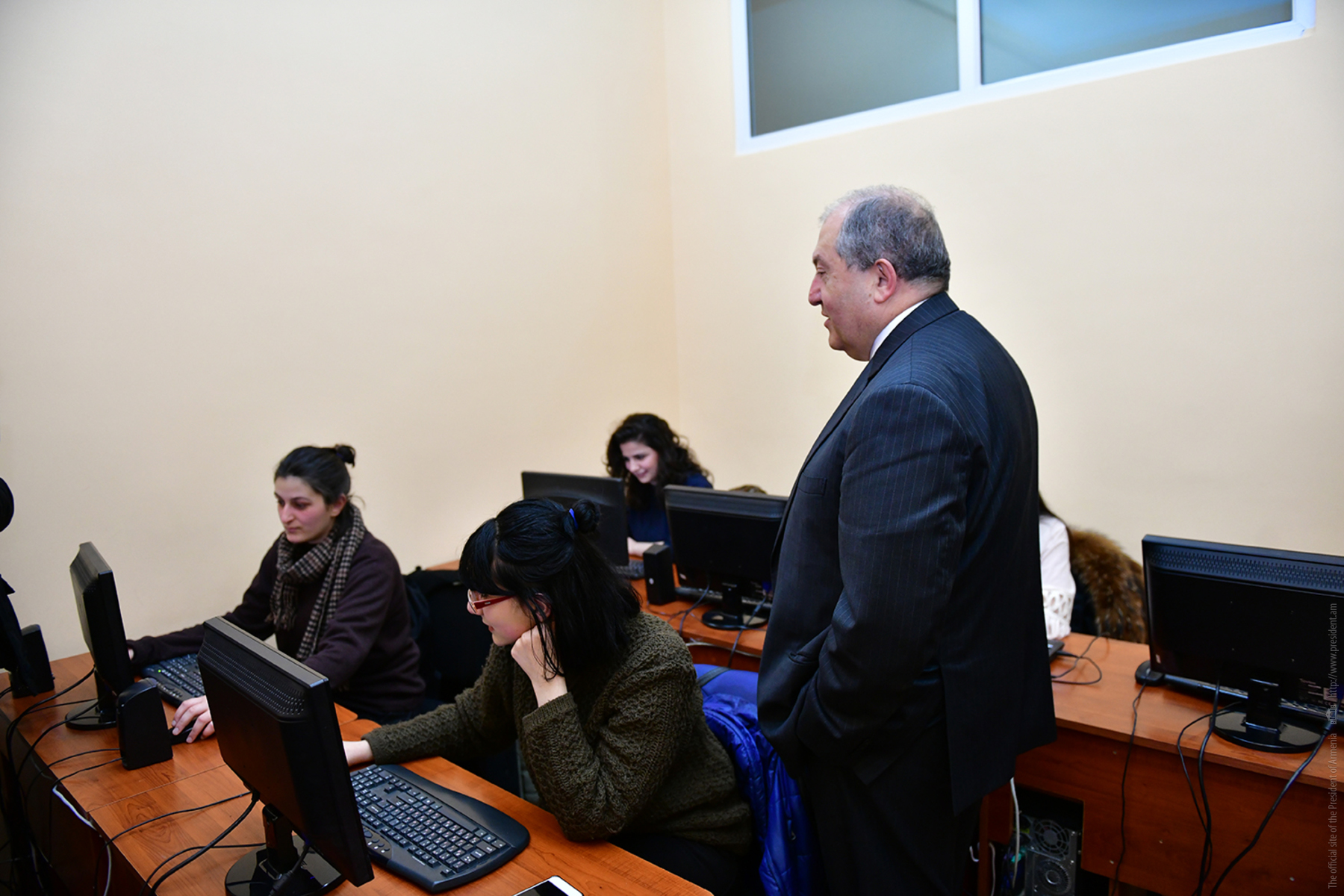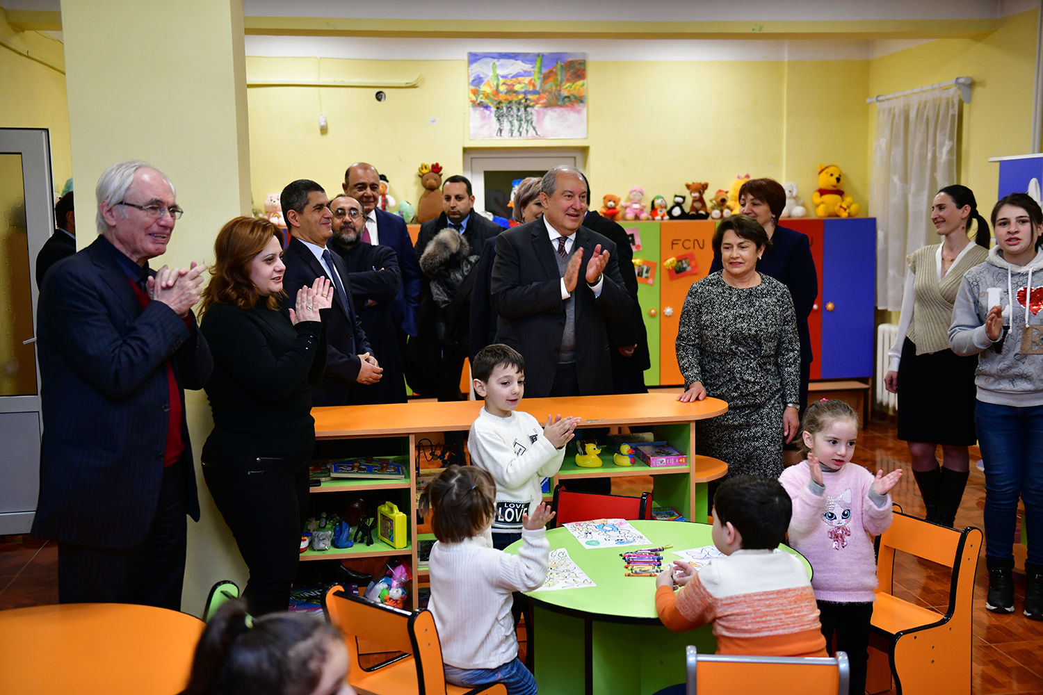 President Sarkissian and Mrs. Nouneh Sarkissian toured the center, had a cordial and warm conversation with the kids studying in painting, computer, language, and other classes. Children were impressed with the meeting and asked the President to sign in their exercise books.