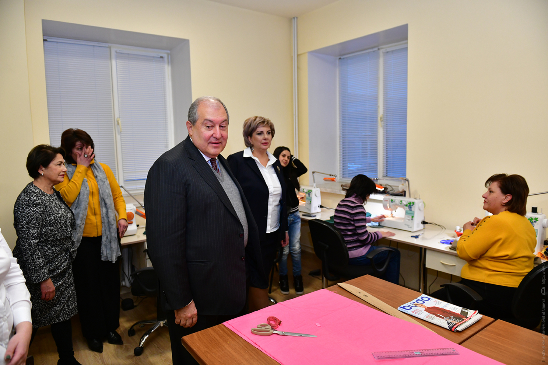 Adults too, are getting retrained or receive profession at the center. They specialize in different occupations such sewing and cooking. Mr. and Mrs. Sarkissian familiarized also with the works of the beneficiaries of these classes and observed the results of their skillful work.
