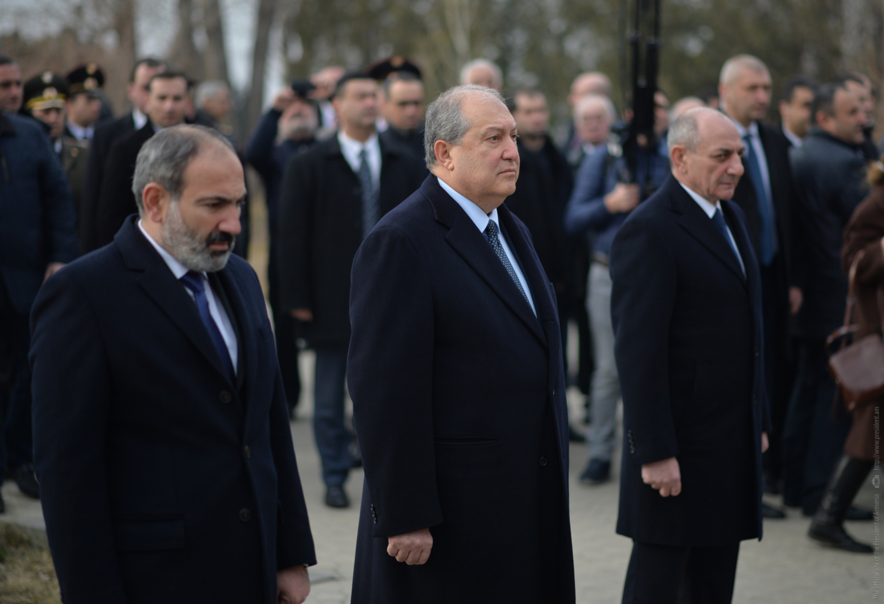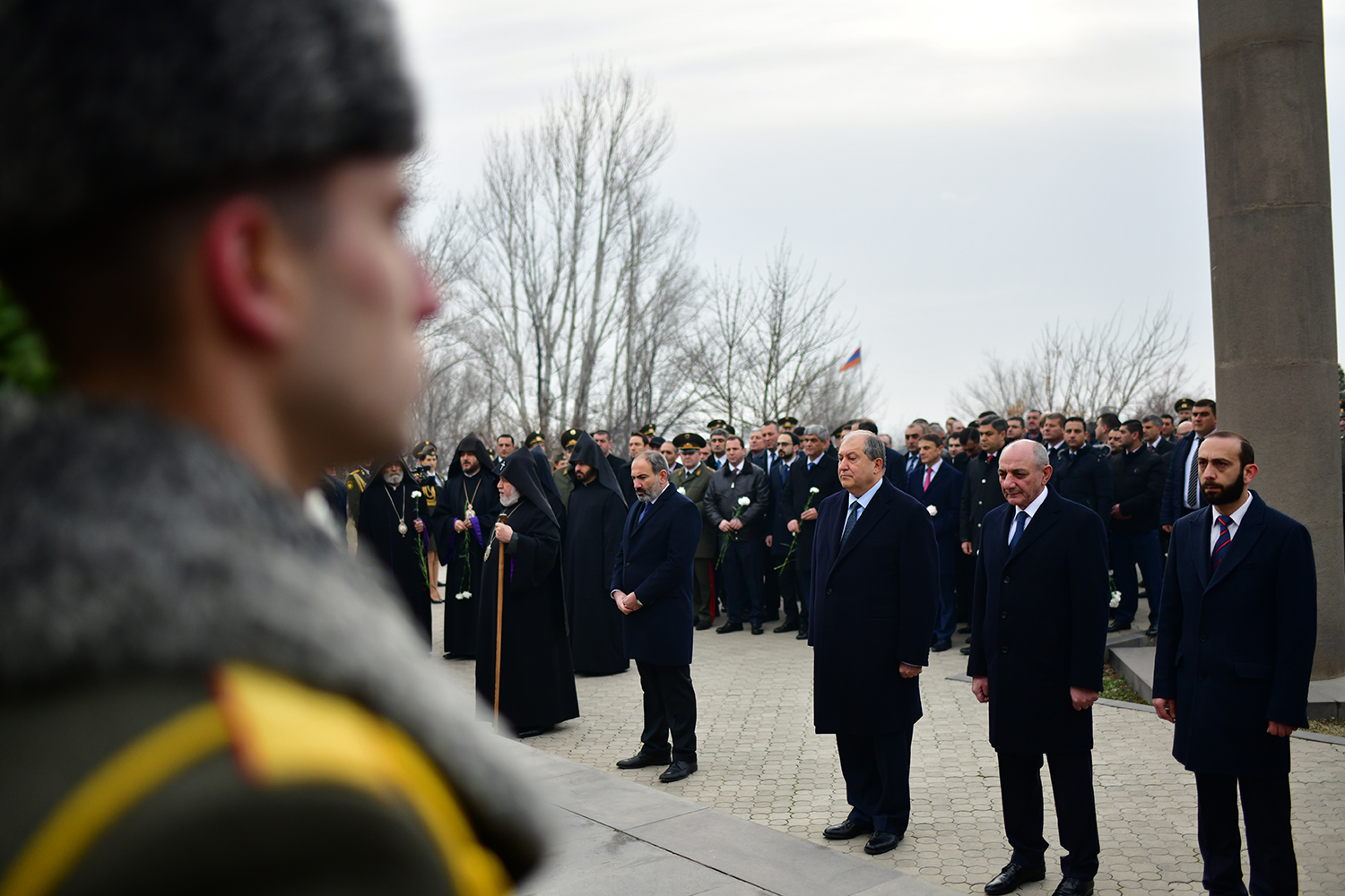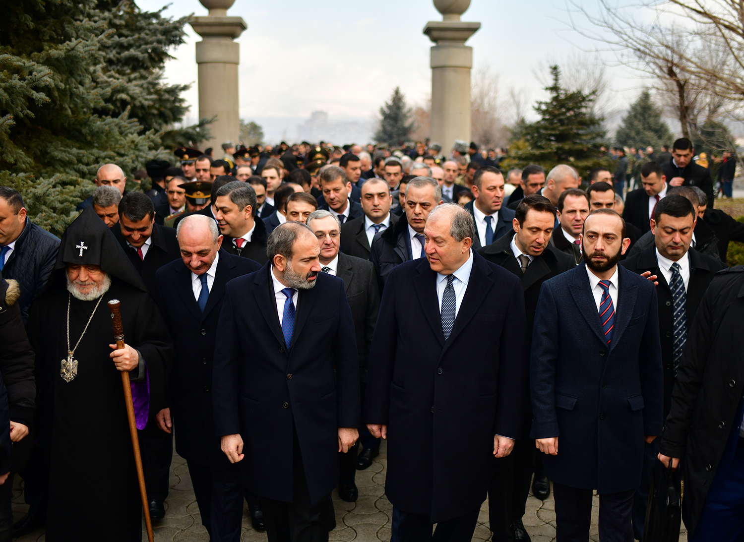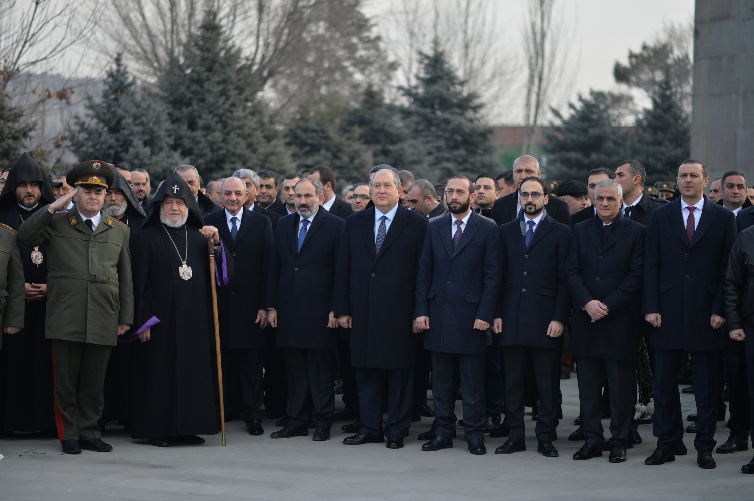 President Armen Sarkissian, accompanied by His Holiness Supreme Patriarch and Catholicos of All Armenians Garegin II, Prime Minister Nikol Pashinian, President of the Republic of Artsakh Bako Sahakian, Speaker of the Parliament Ararat Mirzoyan, members of the National Security Council, the highest leadership of the Ministry of Defense and Armed Forces visited today the Erablur military pantheon and paid tribute to the memory of the sons of the Armenian nation who gave their lives for the Fatherland’s independence.
