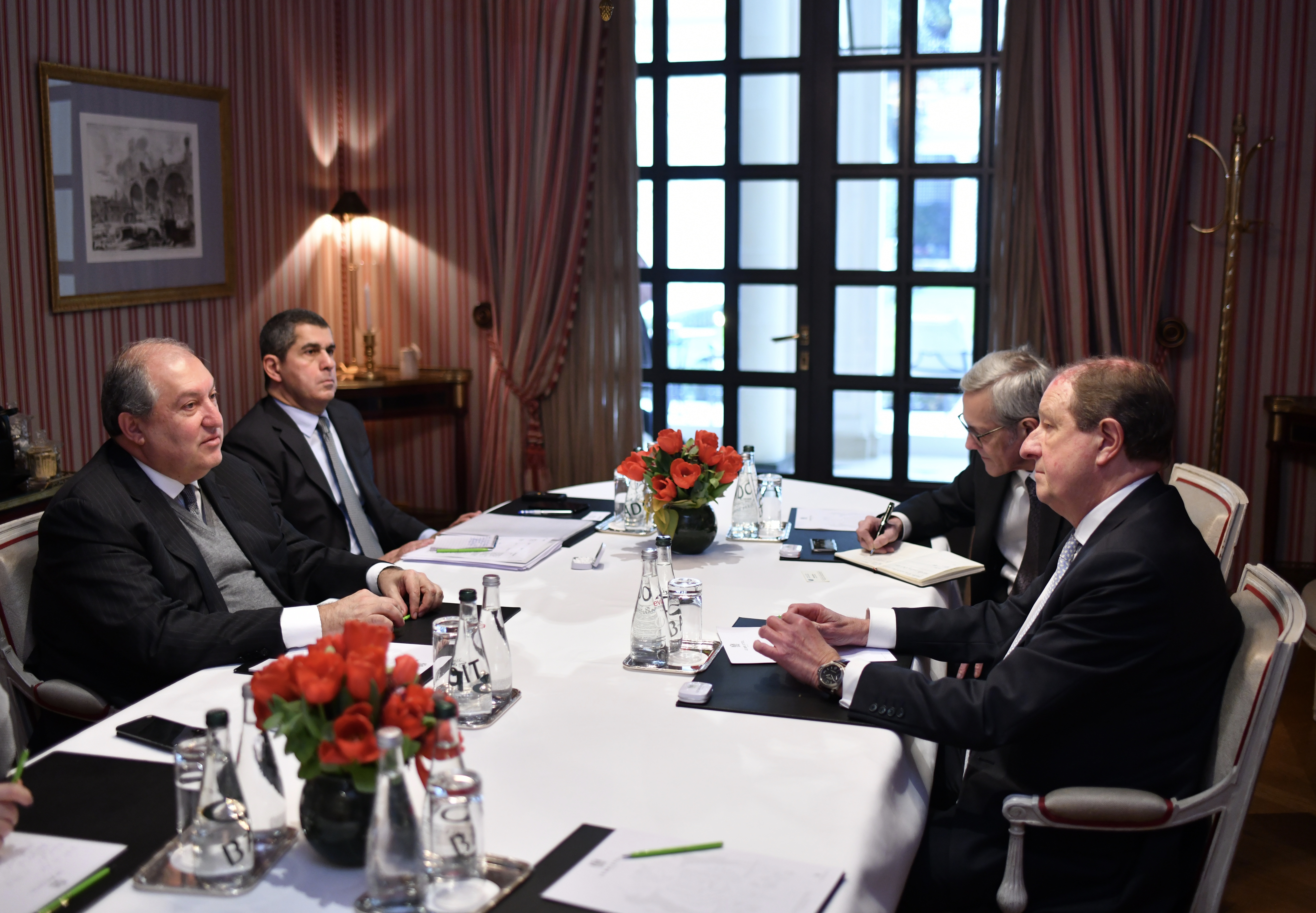 President Armen Sarkissian, who is in Paris on a working visit, is meeting with the heads of the French public, business, and cultural circles to discuss opportunities and prospects for cooperation in these areas.