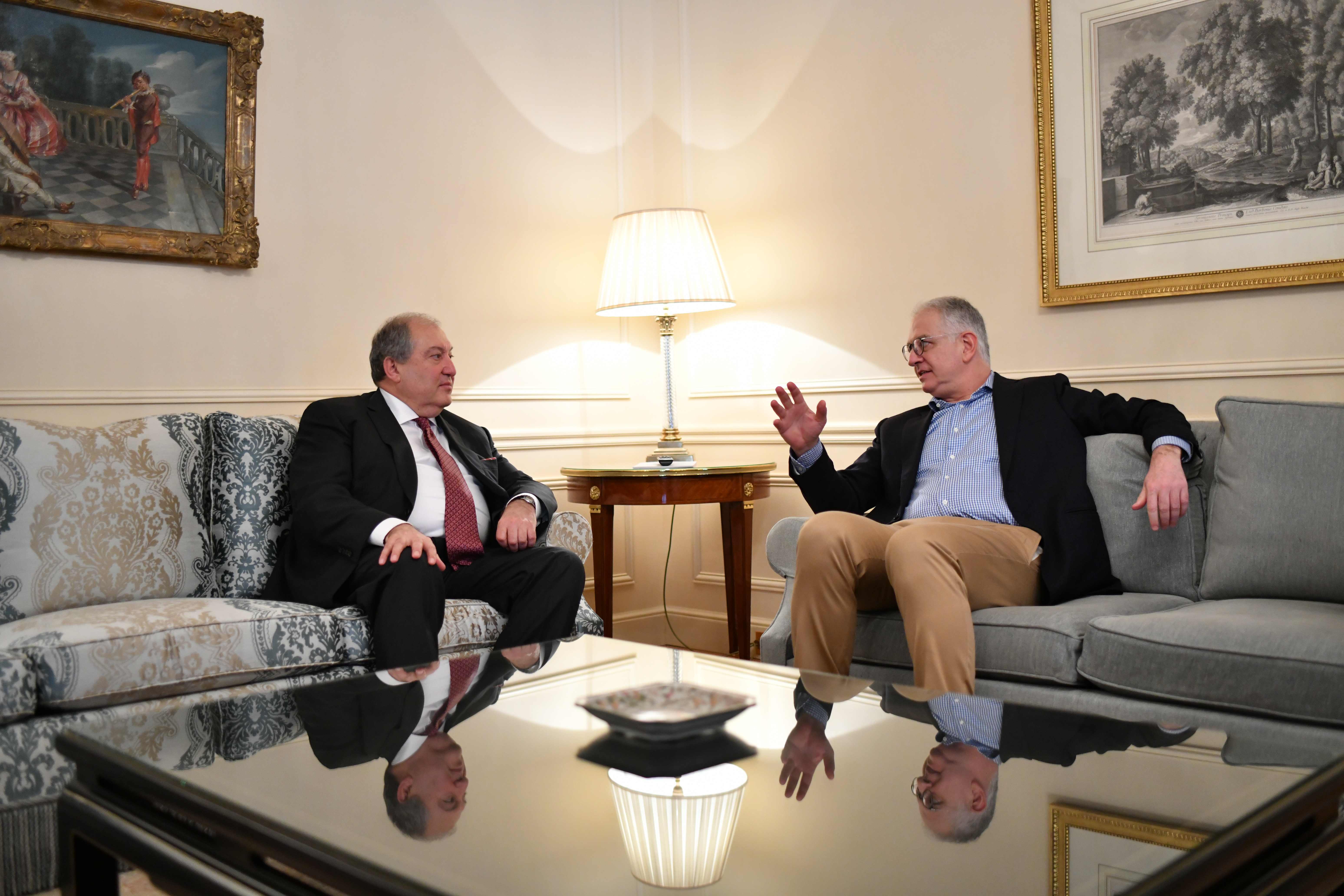 In the framework of his working visit, President Sarkissian met in Paris with the Executive Director of the Nestlé Waters company Maurizio Patarnello.