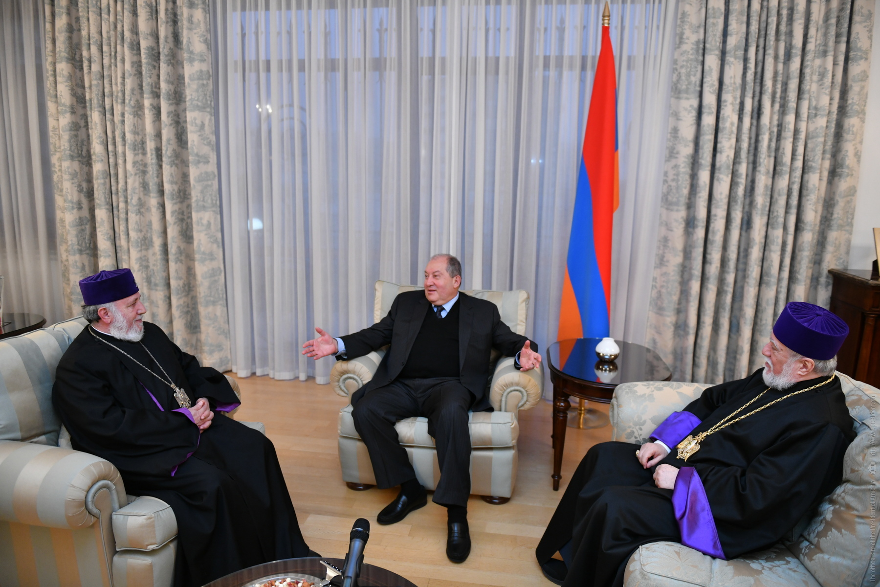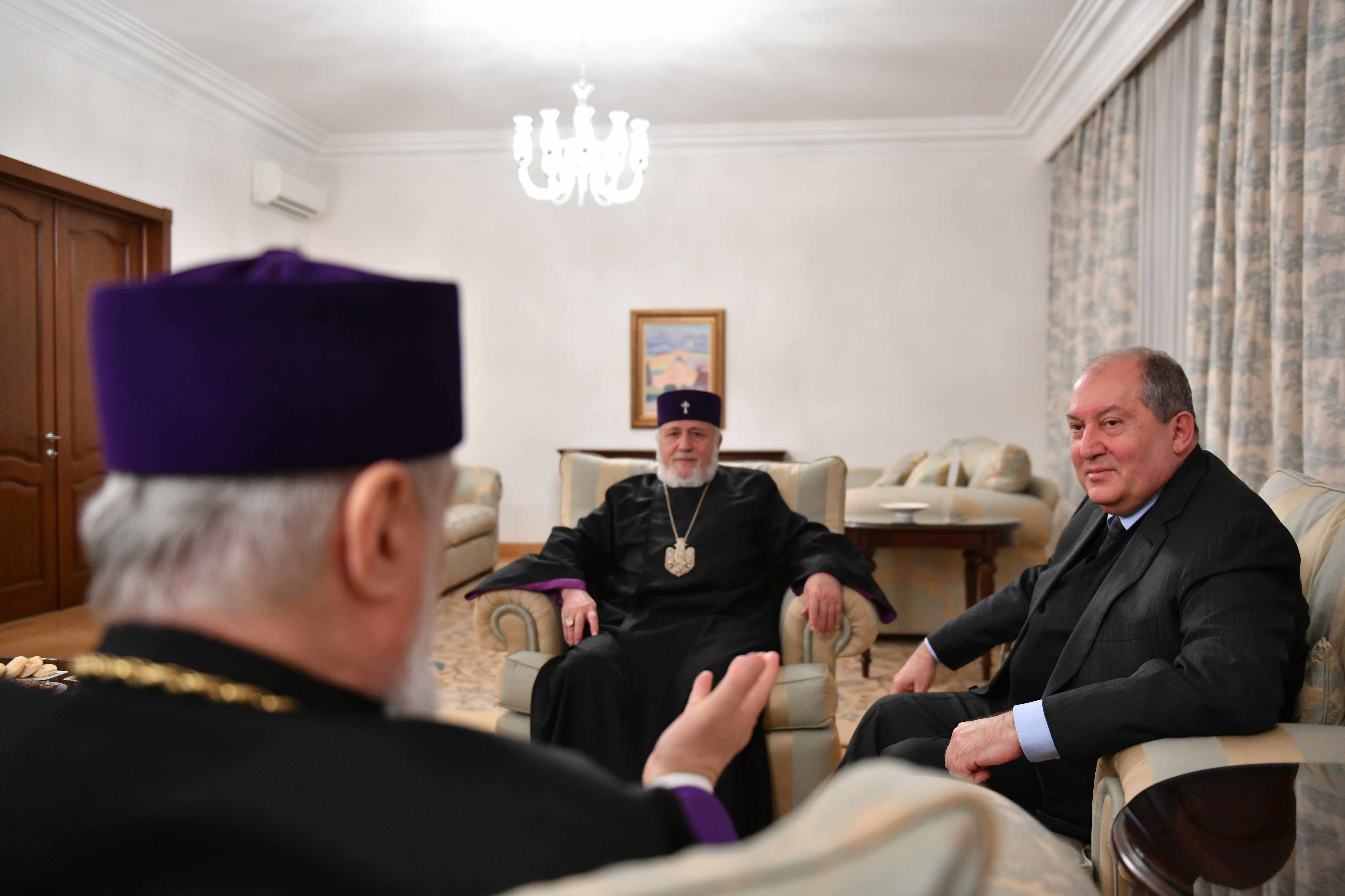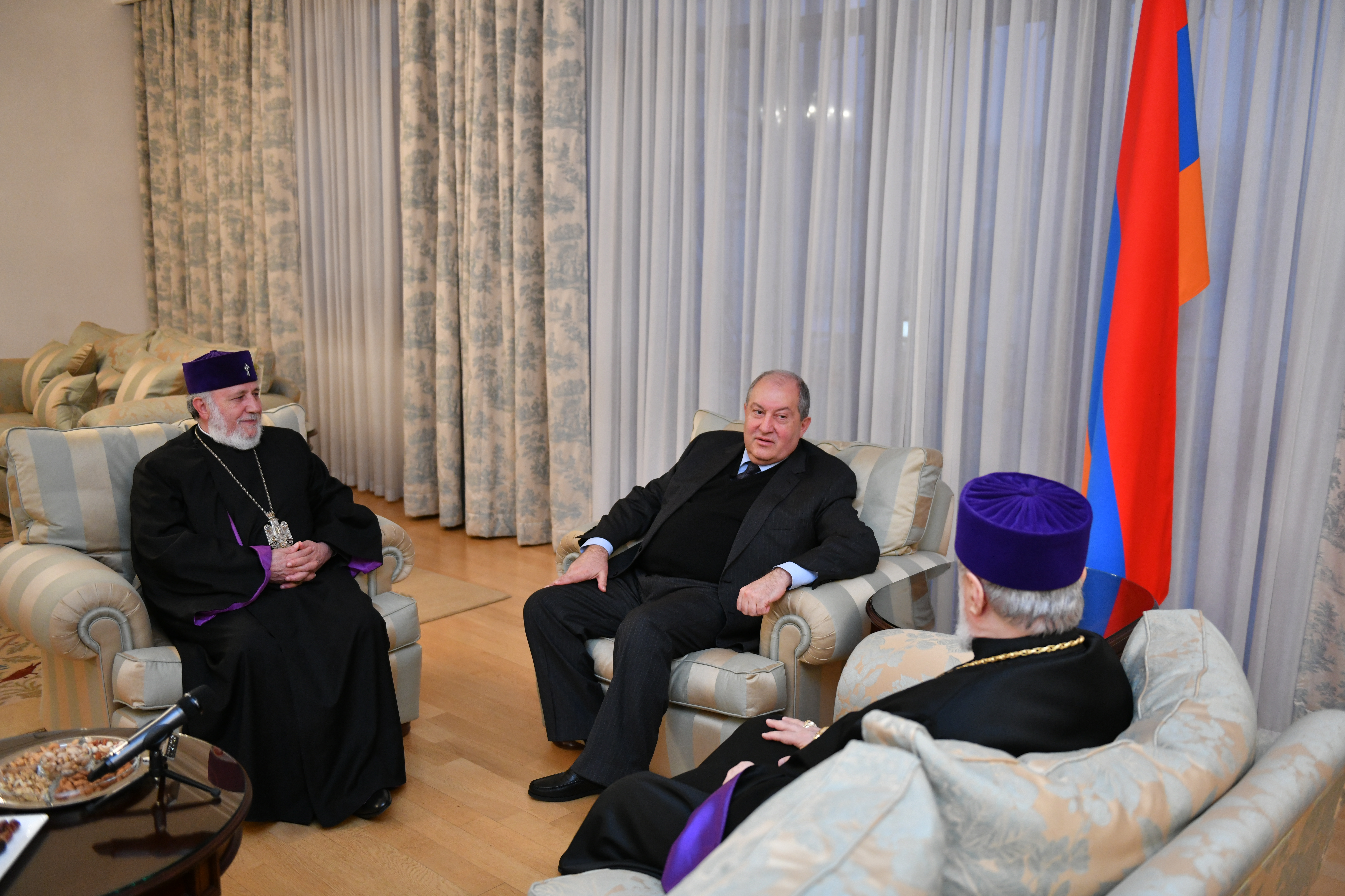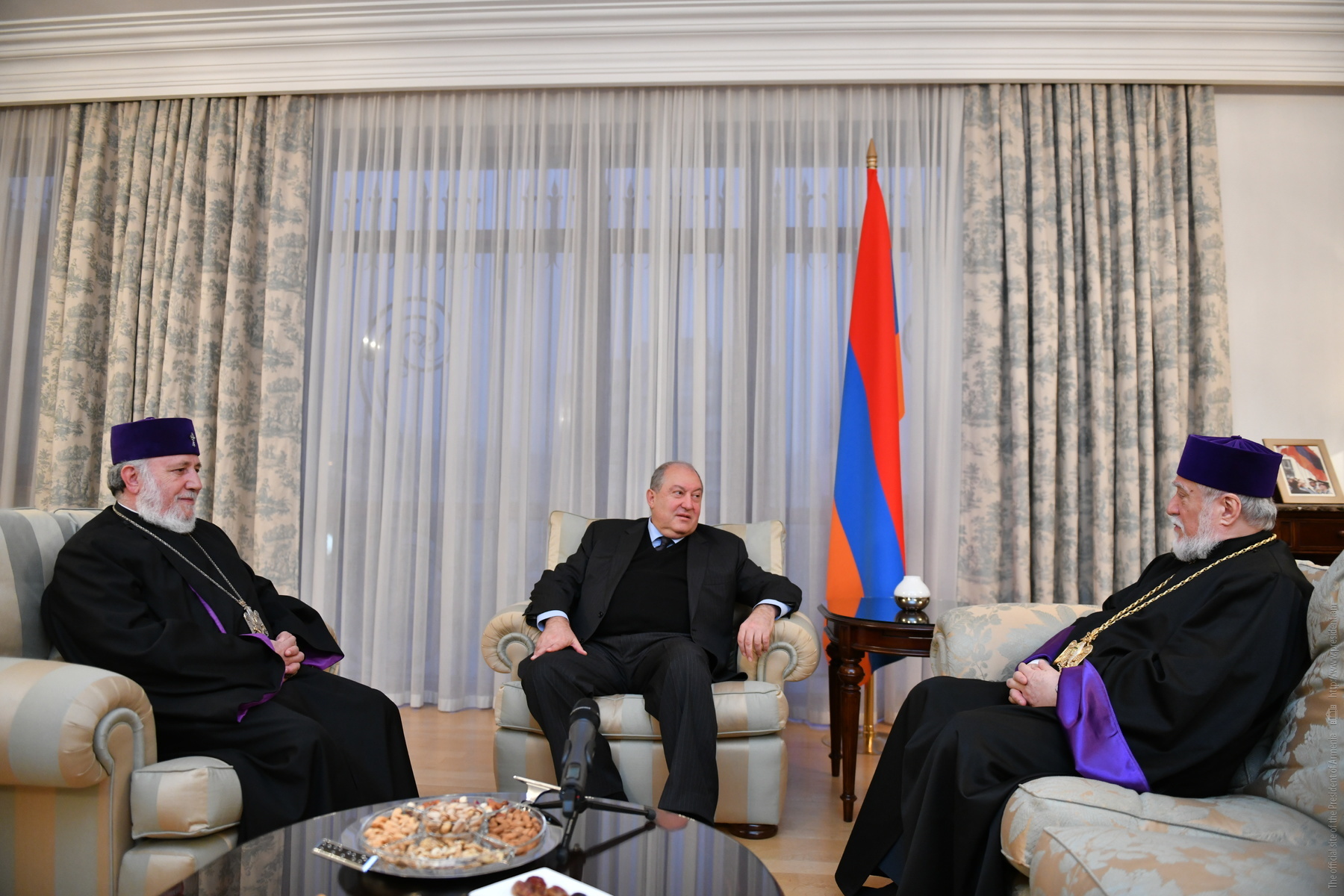 President Armen Sarkissian hosted today His Holiness Catholicos of All Armenians Garegin II and His Holiness Catholicos of the Great House of Cilicia Aram I.
