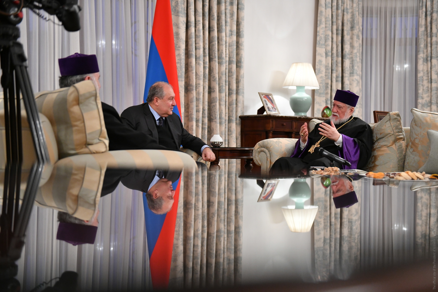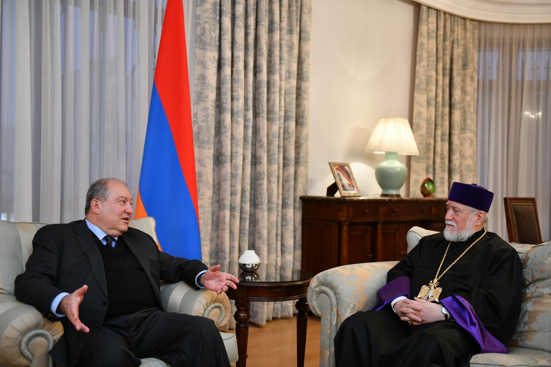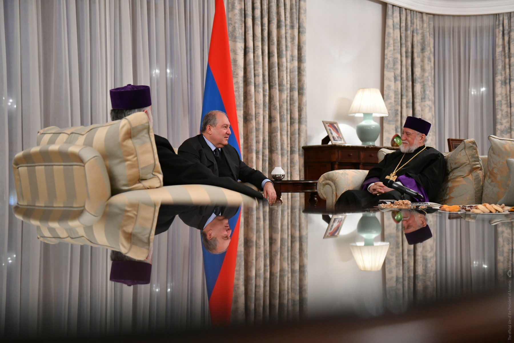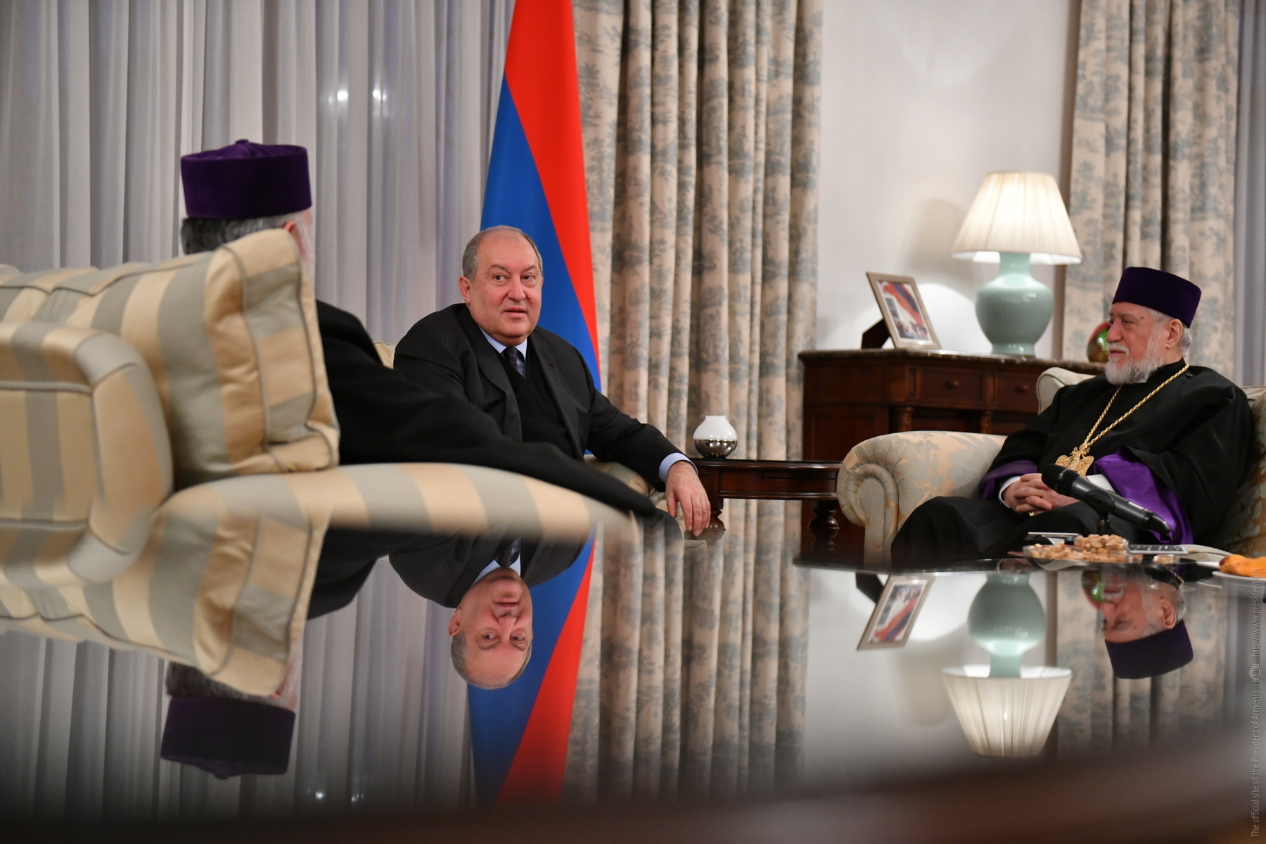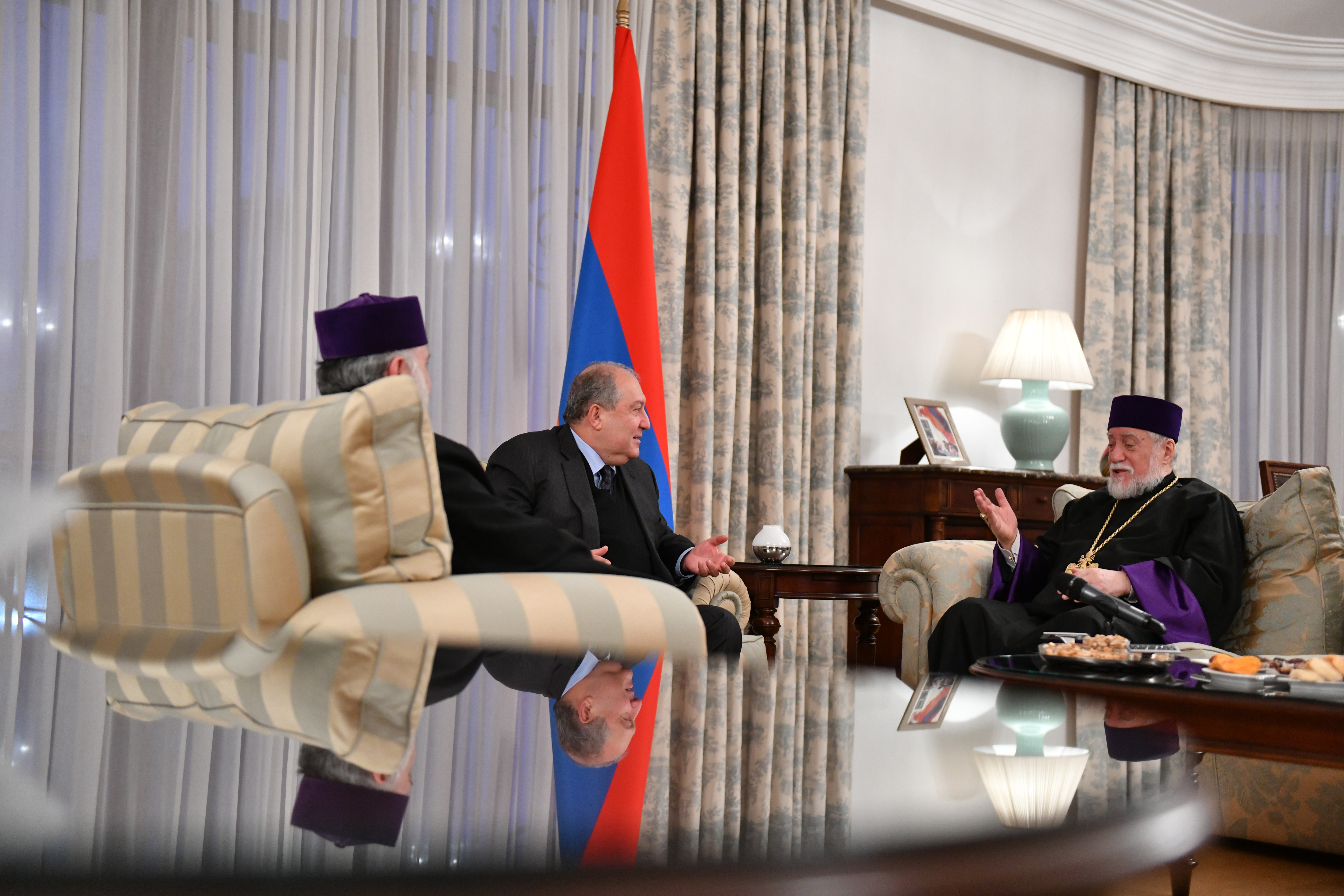 President Armen Sarkissian hosted today His Holiness Catholicos of All Armenians Garegin II and His Holiness Catholicos of the Great House of Cilicia Aram I.