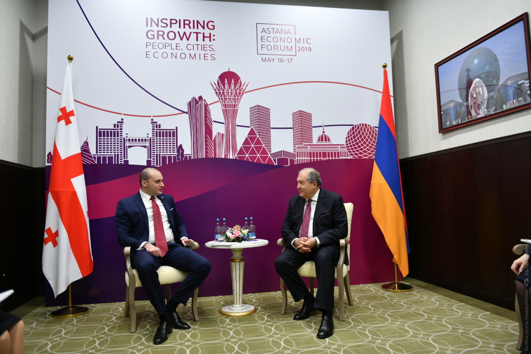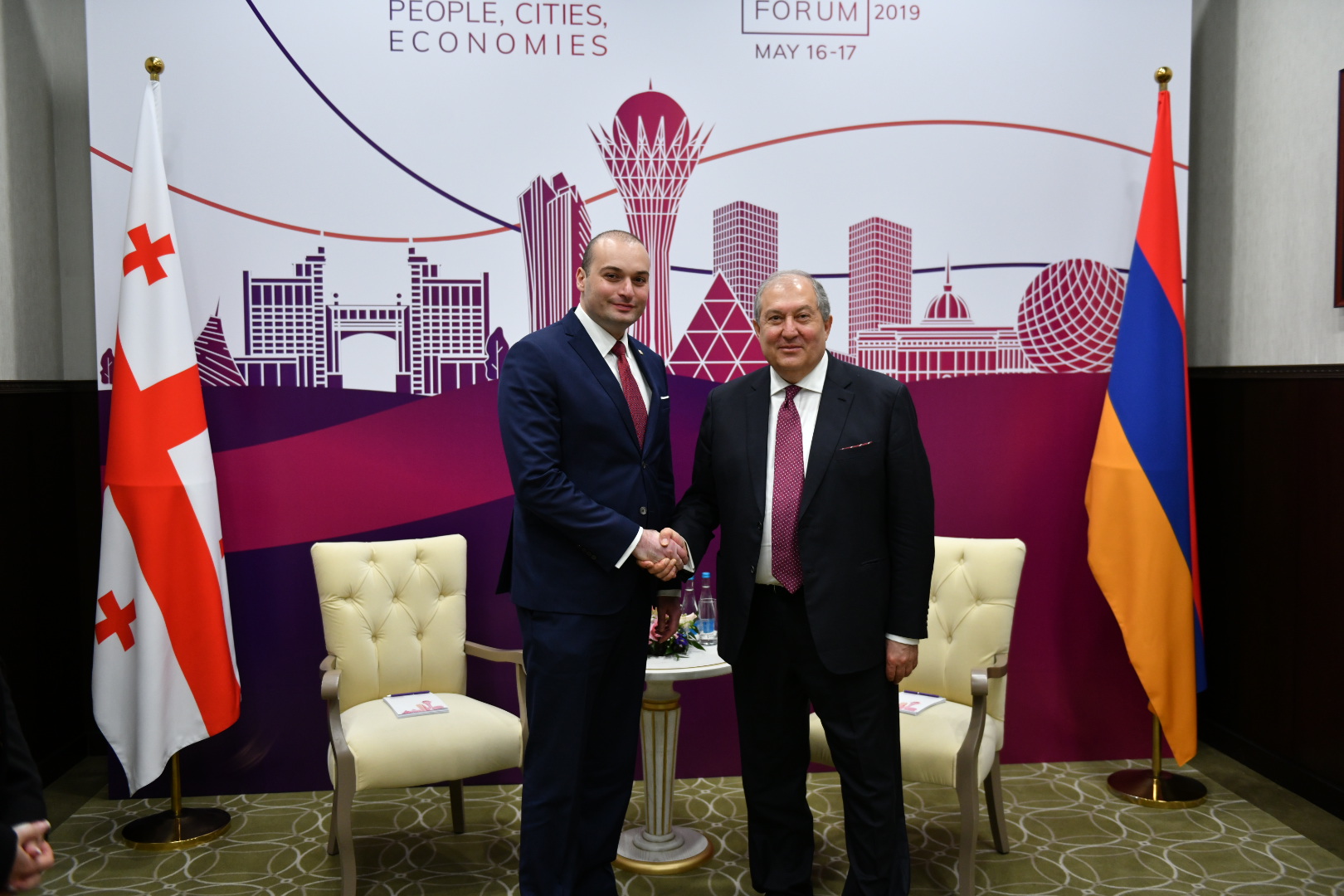 President Armen Sarkissian, who is in the capital of Kazakhstan on a working visit, today in Nur-Sultan met with the Prime Minister of Georgia Mamuka Bakhtadze.