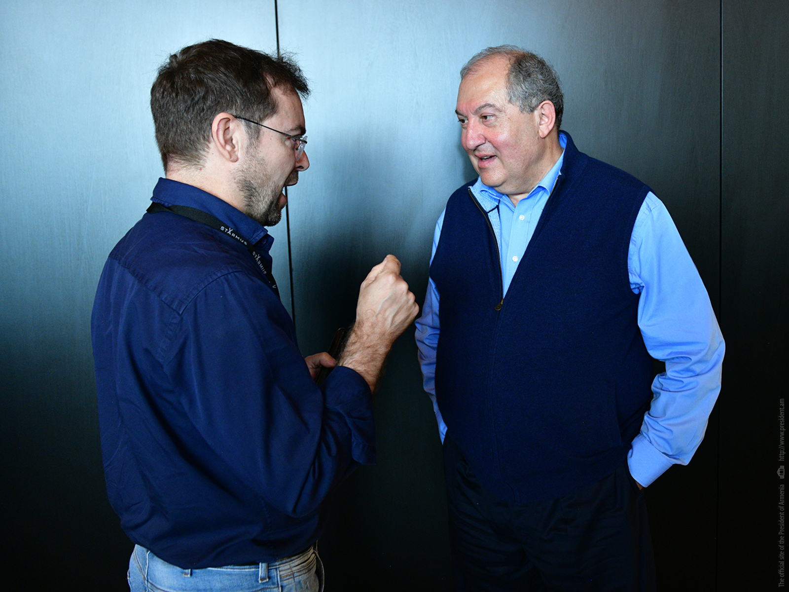 The interlocutors underscored the importance of encouraging and inspiring the young people who work in science. As an example, the President of Armenia highlighted scientific achievements of Donna Srickland and assessed as outstanding her contribution to the area of pulsed lasers. Scientific and technological progress as well as the cooperation with Armenia where the main topics of the President’s conversation with the founder of the Nest Labs company Tony Fadell. Tony Fadell received the 2017 RA Presidential Award for his global contribution to the area of information technologies.