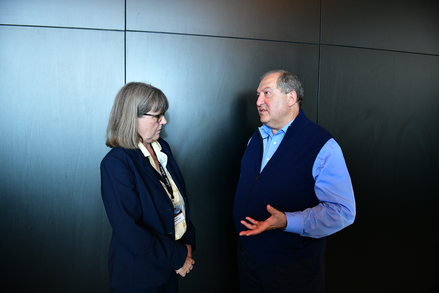 In the framework of the scientific and technical development discussions, the President of Armenia said in particular, “When a nation has a mission, it gathers all its potential in one place to achieve that goal. I believe that our nation has a goal to become a technologically and scientifically advanced country.” He noted with satisfaction that many children in Armenia want to be software engineers. “I wish they would dream of becoming not only software engineers but also scientists – mathematicians, physicians, chemists, biologists, or experts of artificial intelligence because the future belongs to them. To make these professions attractive, much should be done by the president, by the government, and by the state in general,” Armen Sarkissian said. He viewed as important for the young people to get excited and understand that scientific work is not a duty. “Working in science or technology areas should be a pleasant thing. At the same time, they should feel that are engaged in the most contemporary, most interesting activity which enjoys everyone’s deep respect,” President Sarkissian said. “The Nobel Prize is one of the world’s greatest award in science; However, there are individuals present in this hall who are famous artists, musicians. And they bow to the world’s greatest scientists.”