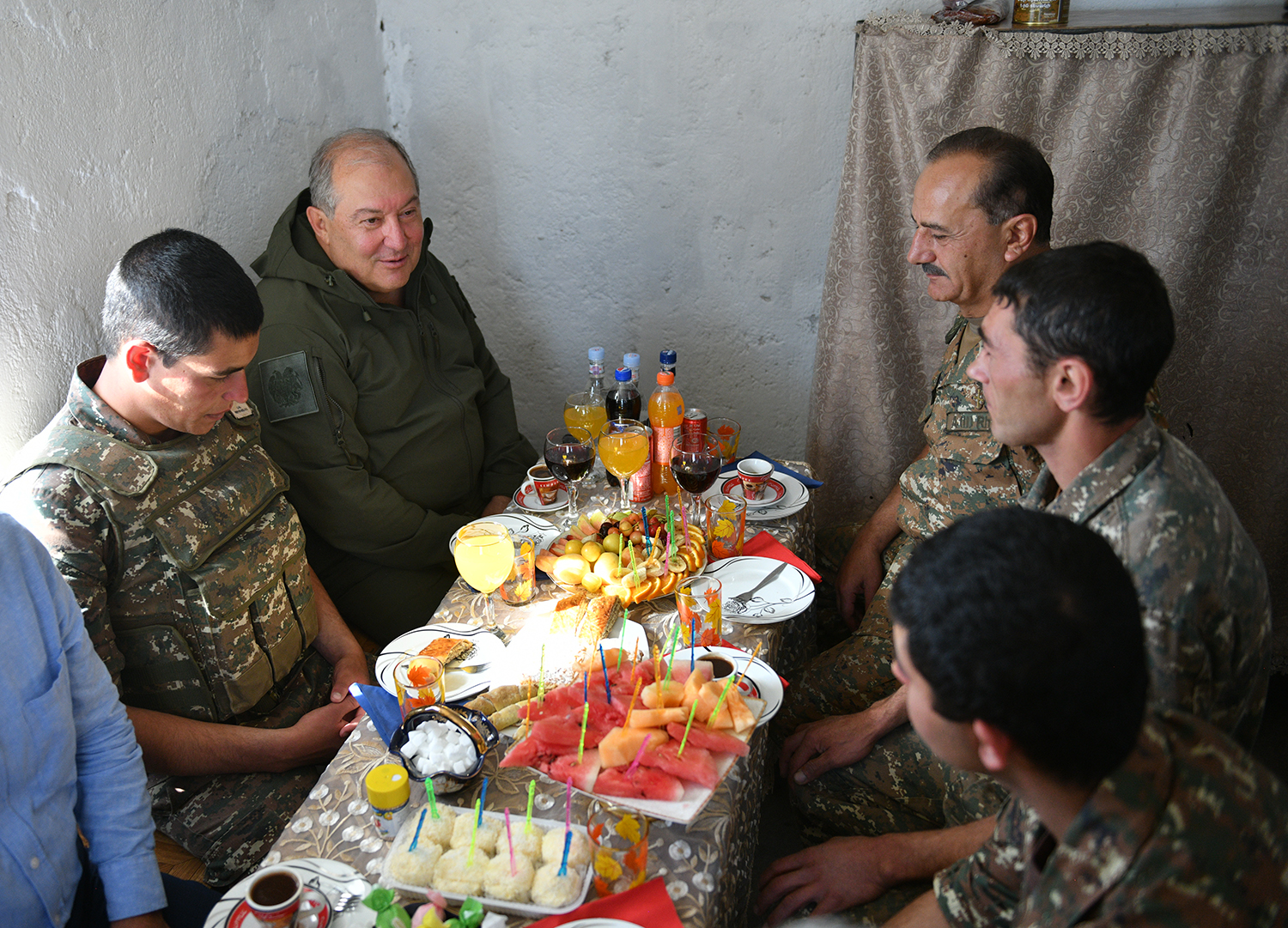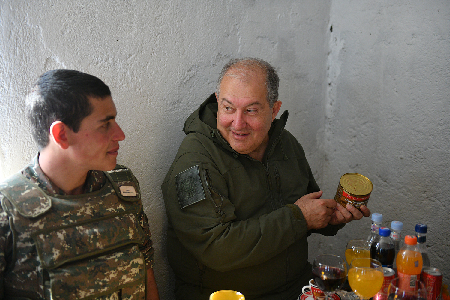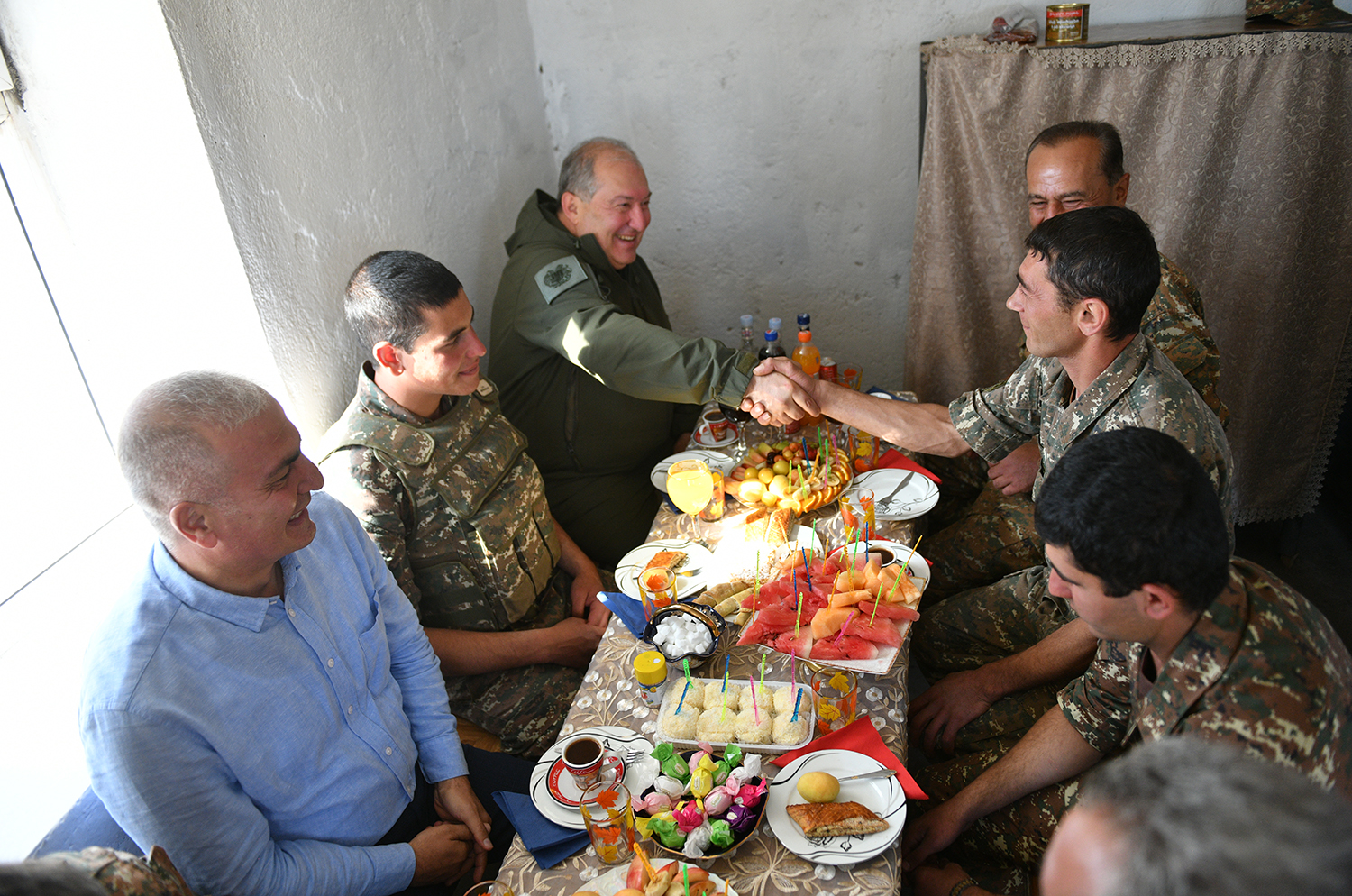 The President congratulated the soldiers and officers on duty and noted in particular that it was a great joy and honor for him to be on the border on Armenia’s Constitution Day. “Every one of you, you all not only defend our borders but also the Constitution, our Fatherland, your families and friends, children, mothers, and us all. I bow to you all, I understand that this position is one of the most important points of defense for our Fatherland. It is not easy, in summer heat and winter cold, to serve 24 hours,” the President said, “As the President of Armenia, I want on behalf of us all to express the deepest gratitude and say that we are proud of you. We expect each of you to continue with your duties, to protect and defend our Fatherland, to protect and defend the peace.