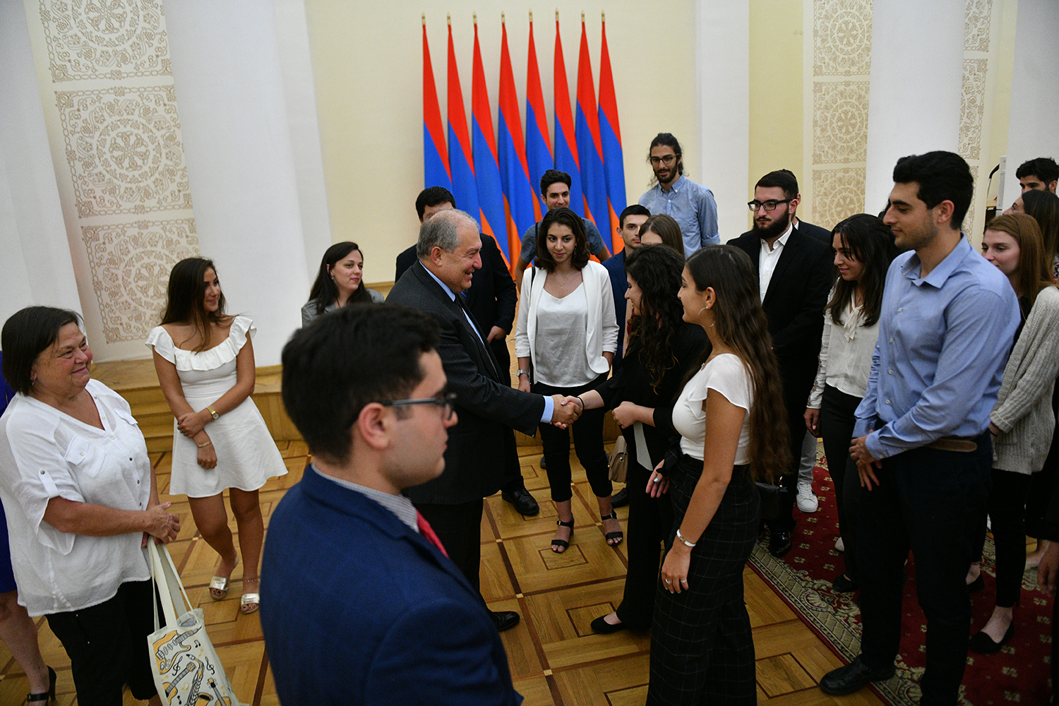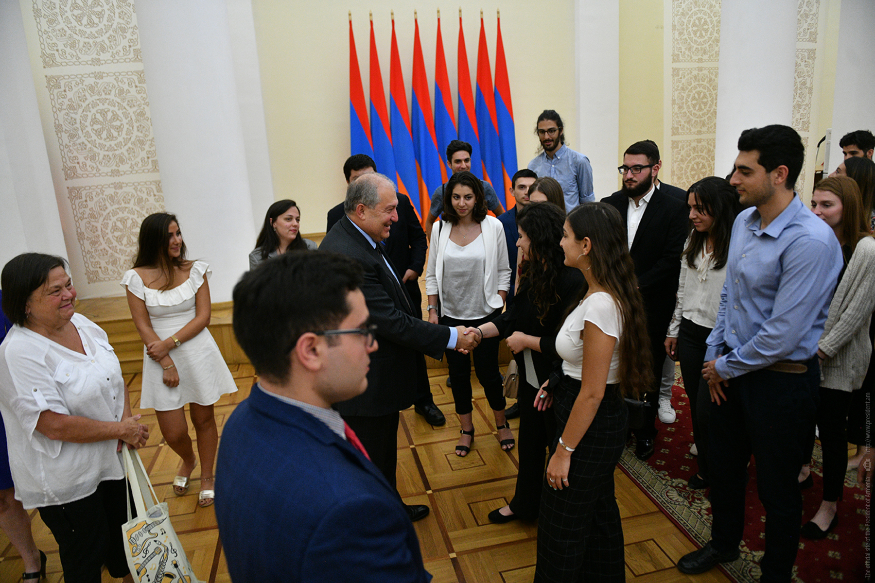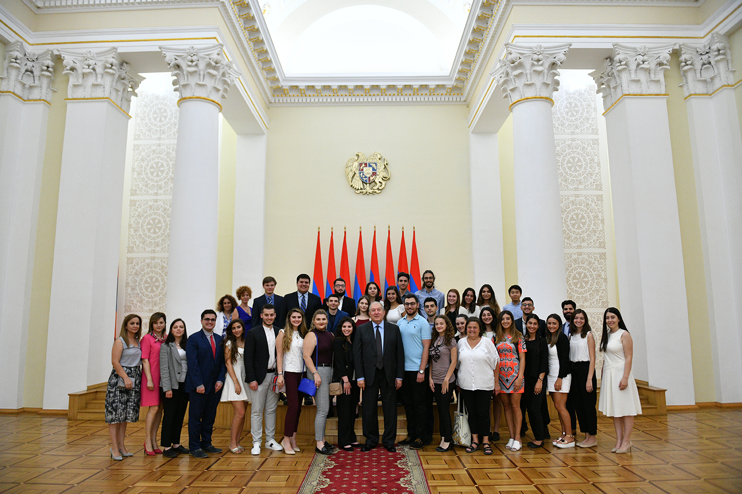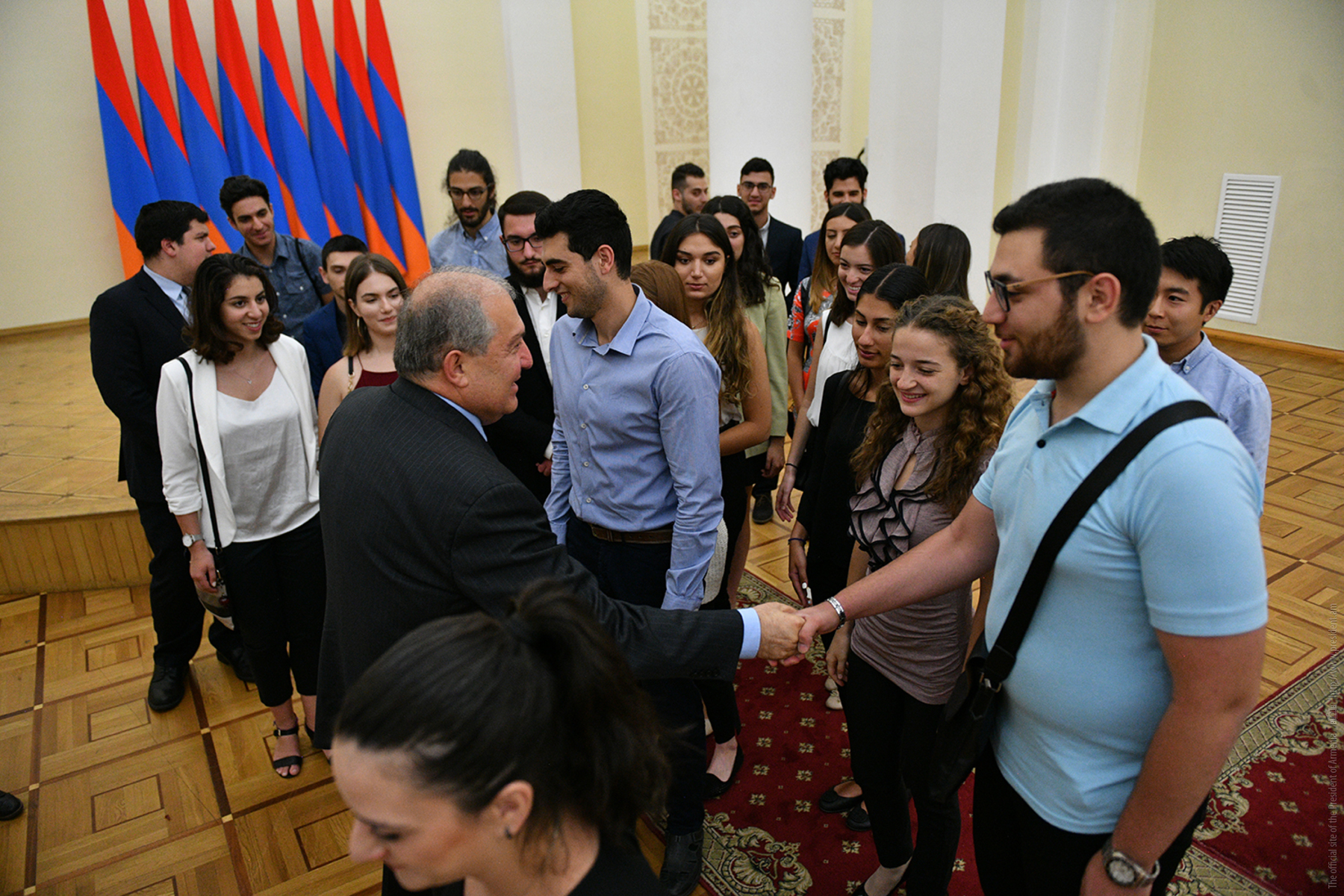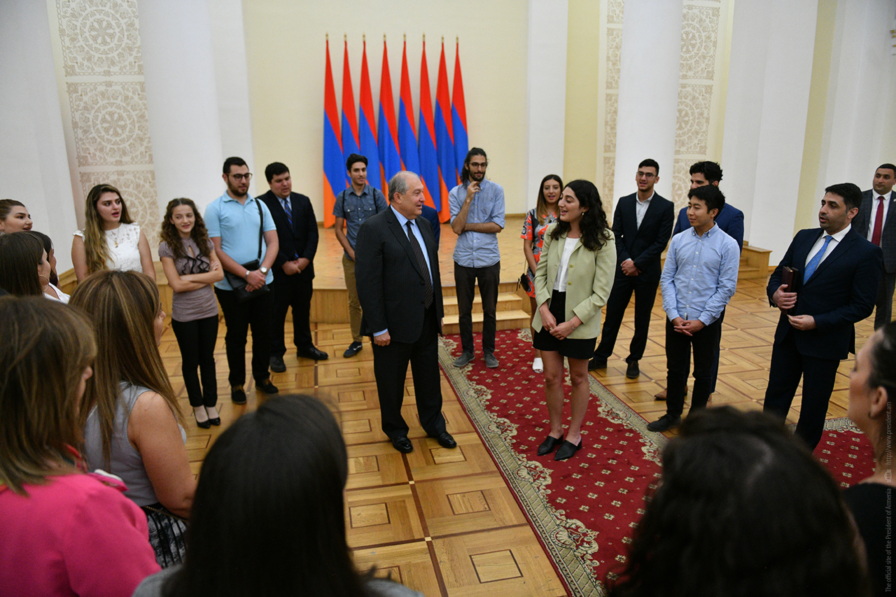 Today, the Presidential Palace hosted young people from Diaspora who have arrived to Armenia in the framework of the Armenian Benevolent General Union (AGBU) Yerevan Summer Professional Training and Musical Armenia programs. They met with President Armen Sarkissian. During a cordial conversation, President Sarkissian responded to the kids’ questions which pertained mainly to the vision of Armenia’s development, ties with the Fatherland, President’s personal experiences, etc.