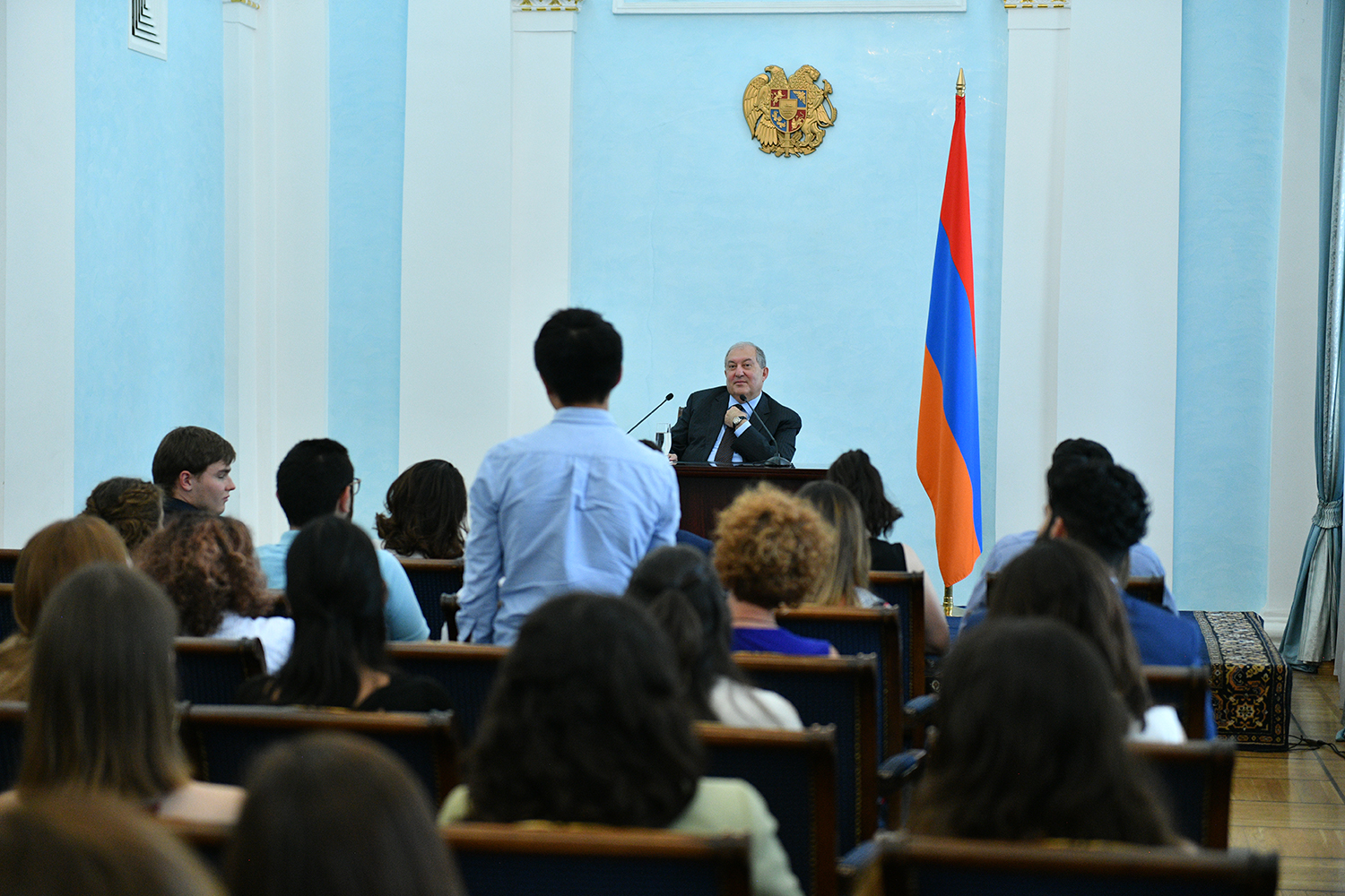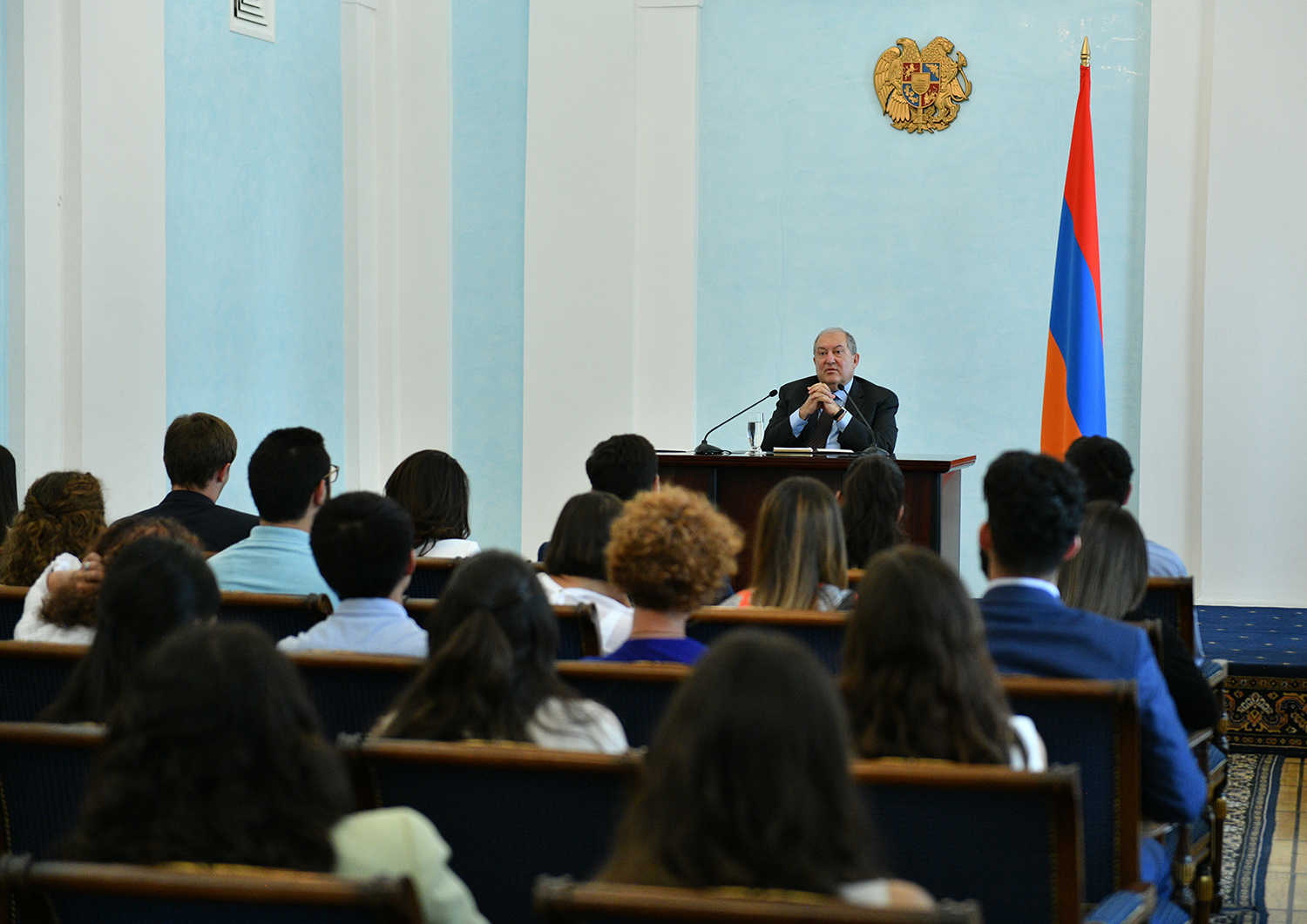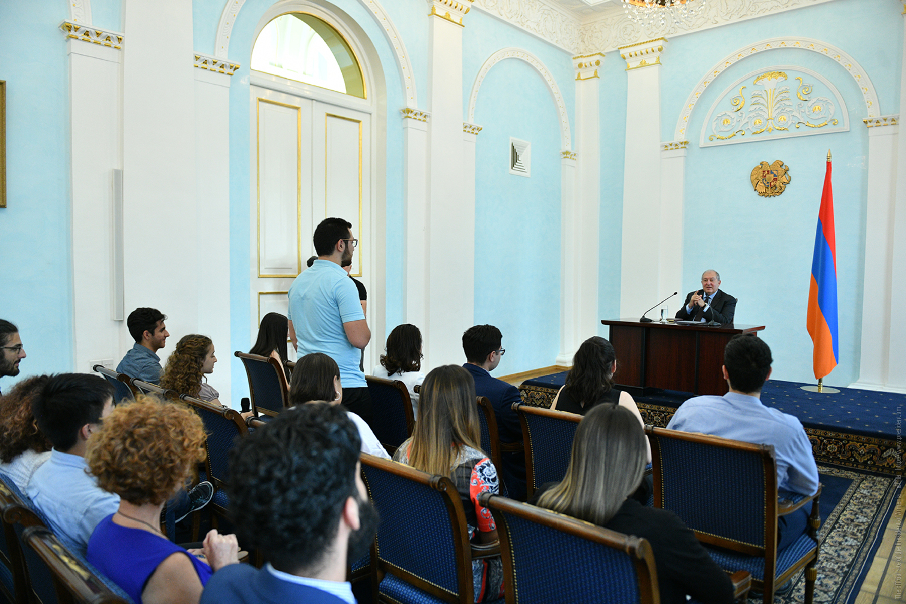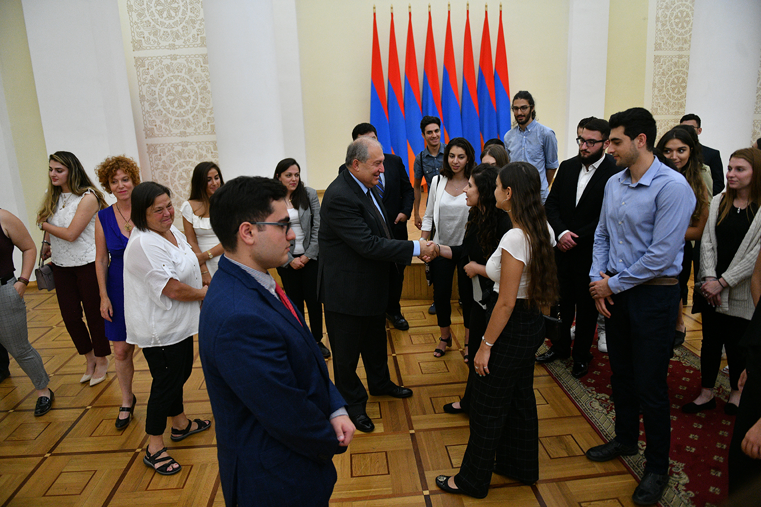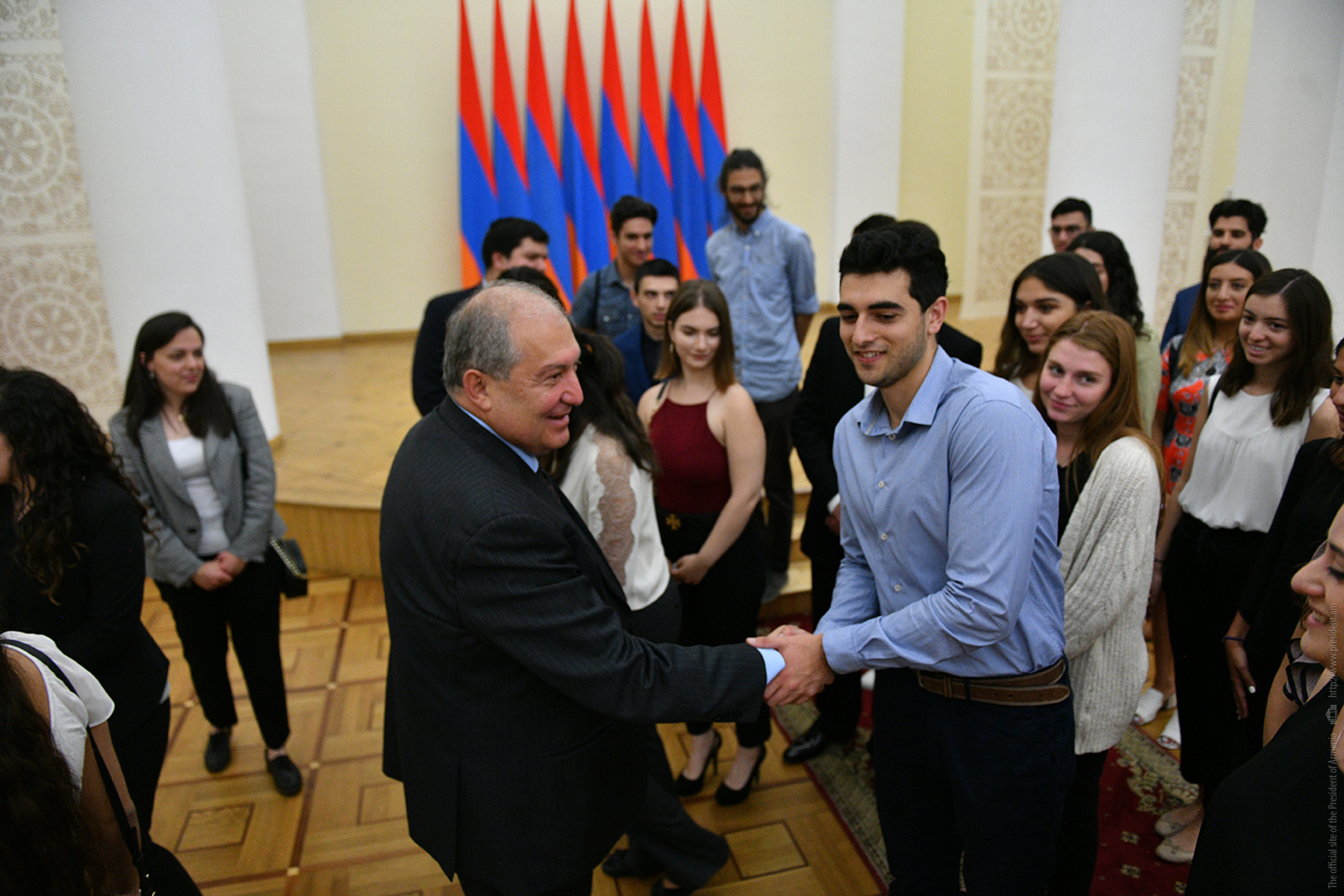 Today, the Presidential Palace hosted young people from Diaspora who have arrived to Armenia in the framework of the Armenian Benevolent General Union (AGBU) Yerevan Summer Professional Training and Musical Armenia programs. They met with President Armen Sarkissian. During a cordial conversation, President Sarkissian responded to the kids’ questions which pertained mainly to the vision of Armenia’s development, ties with the Fatherland, President’s personal experiences, etc.