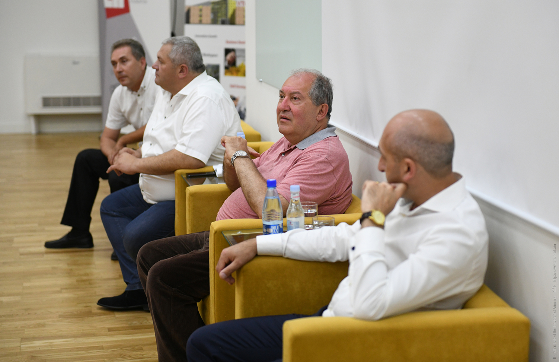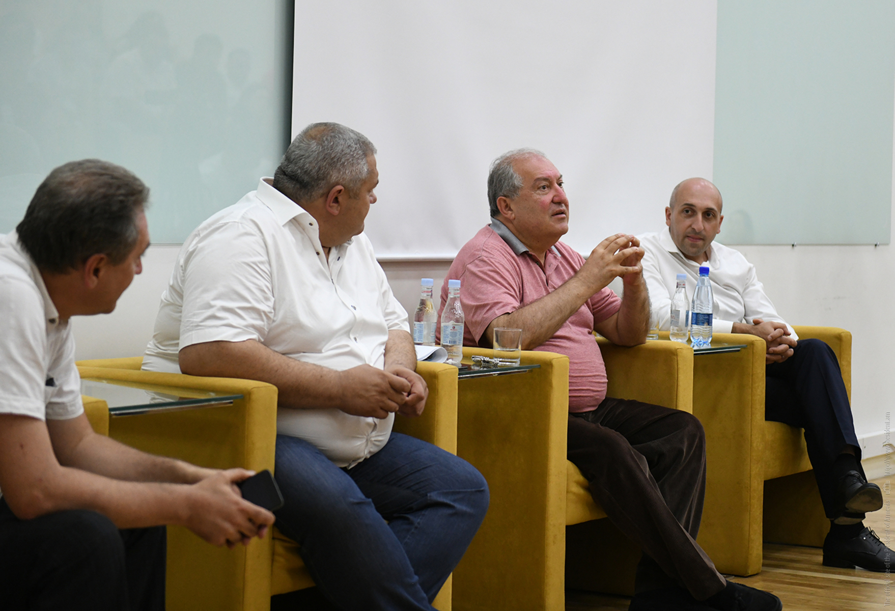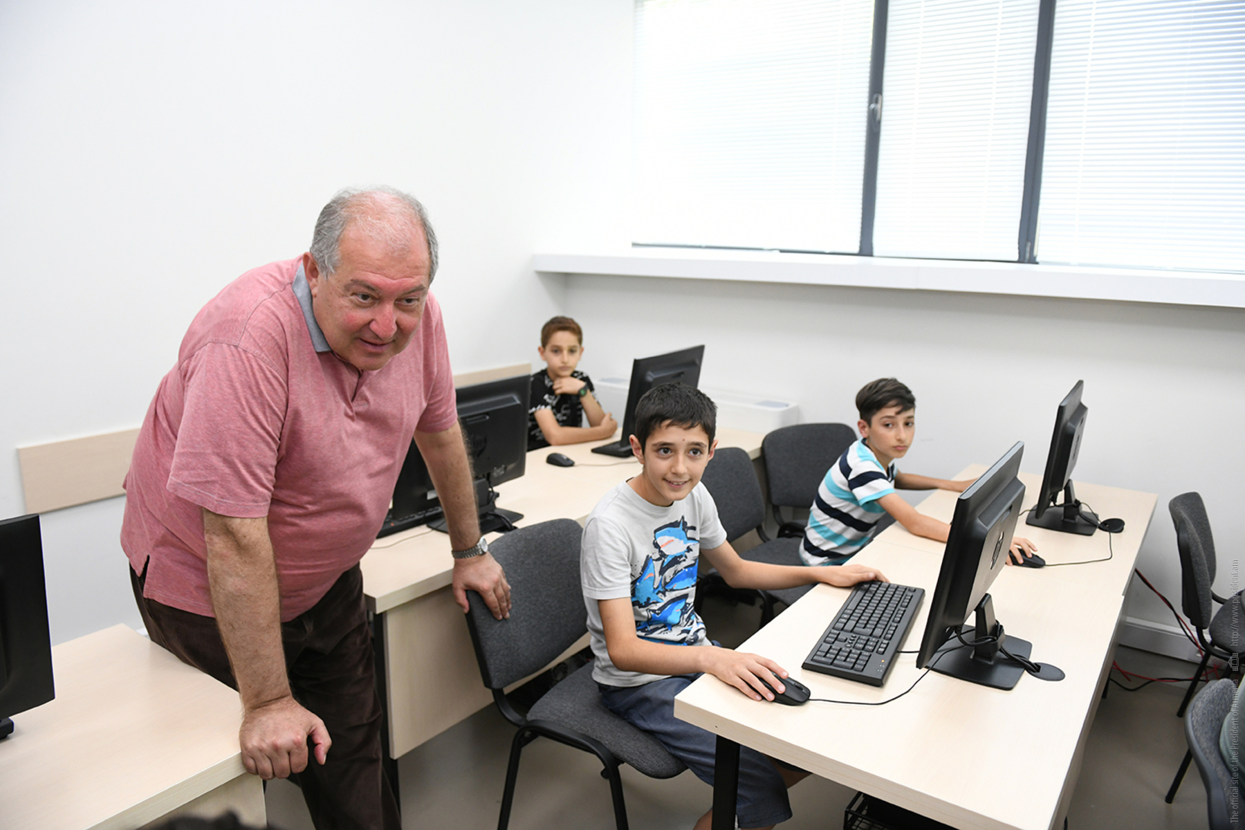 The President of Armenia toured the premise of the Center, conversed with the kids participating to the classes. Later, he met with the representatives of the companies located in the Center, inquired about their activities, and responded to their questions.