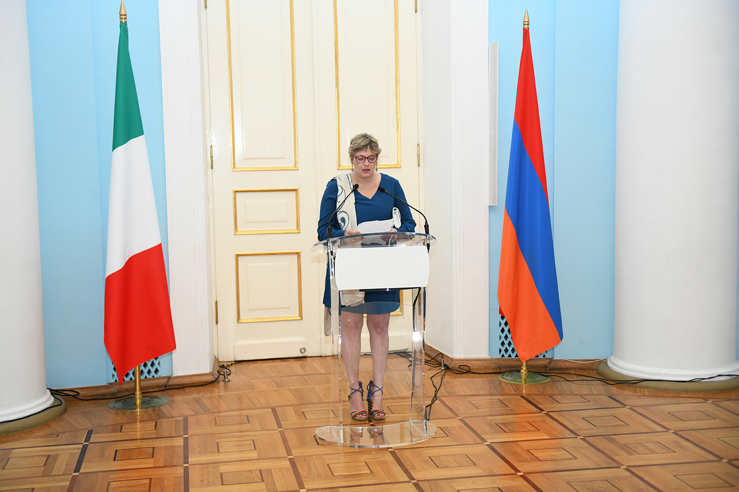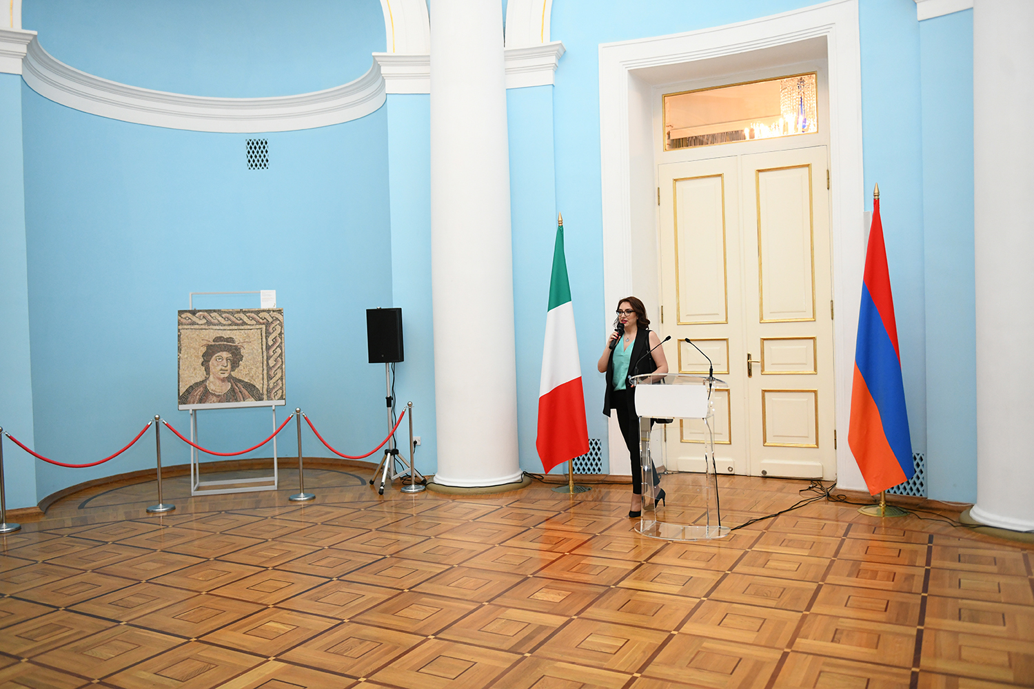 Today, at the official opening ceremony the Head of Presidential Administration Emil Tarassian on behalf of President Armen Sarkissian and Mrs. Nouneh Sarkissian welcomed the guests. He noted that the exhibition provides another opportunity to enjoy the Italian culture. “As you know, the “Colorful visions of Ancient Rome: Mosaics from Capitoline Museums” exhibition has been opened at the National Gallery of Armenia. At the initiative of President Sarkissian some mosaics of that splendid collection will be in the exceptional manner presented here, at the Presidential Palace. The President wants to create yet another opportunity to come close to the Italian culture, to submerge into the times when Ancient Rome and Great Hayq maintained versatile ties, and , why not, make our current interstate relations even closer,” the Head of Presidential Administration said. He expressed gratitude to the National Gallery of Armenia and Embassy of Italy in Armenia for creating a wonderful cultural atmosphere.