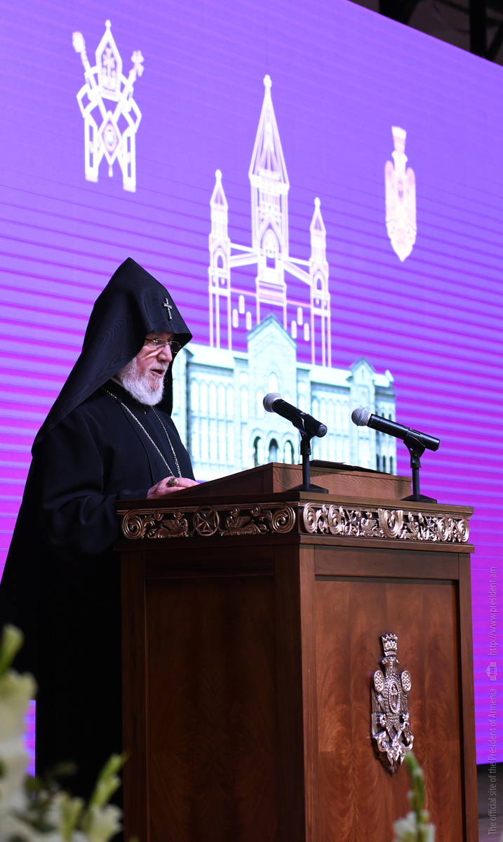 After the blessings offered by His Holiness Garegin II, President Armen Sarkissian made a statement.