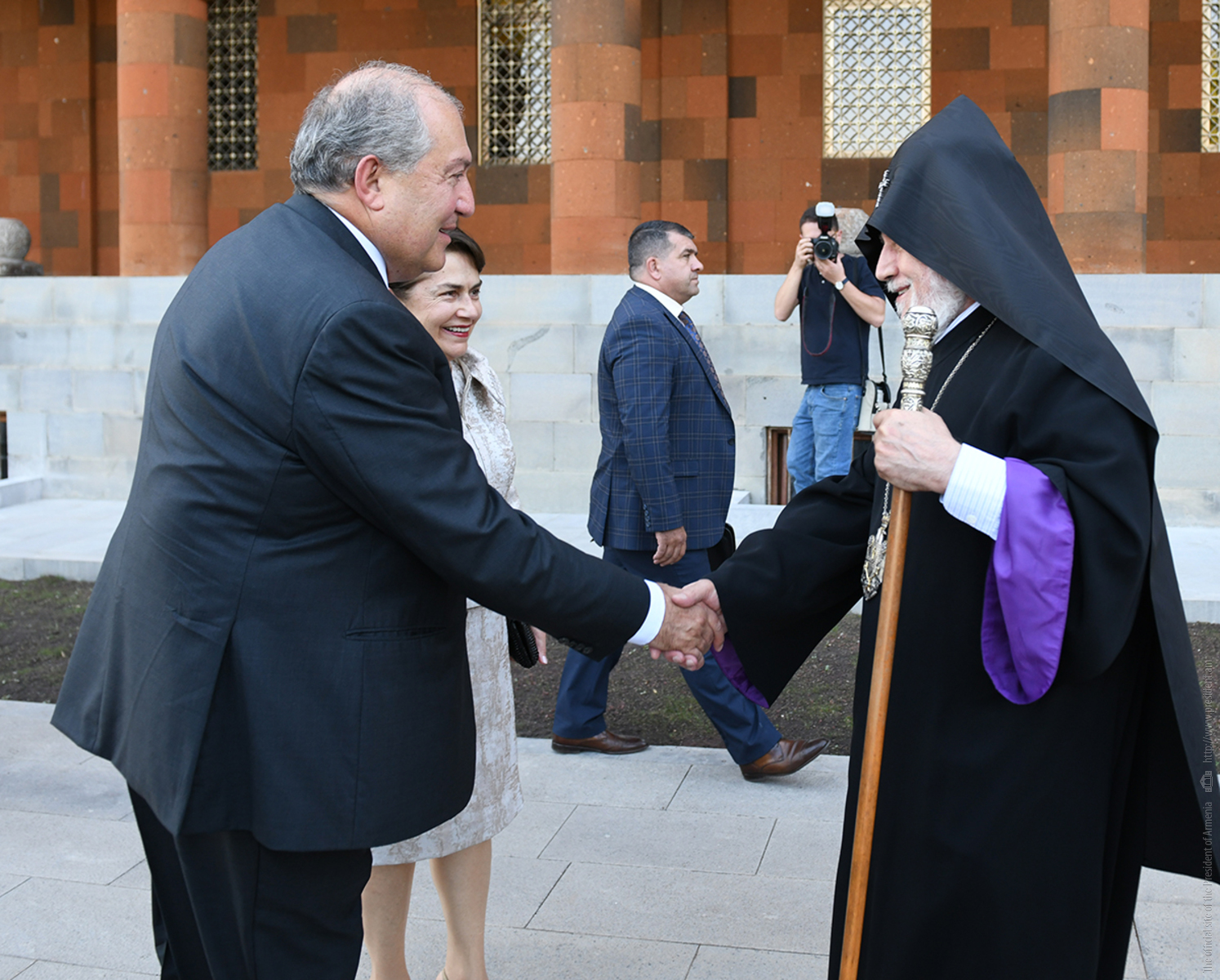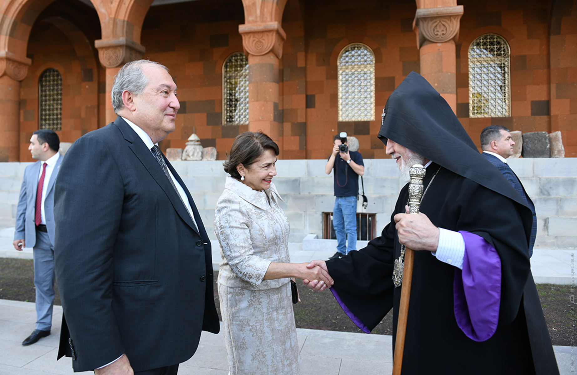 President Armen Sarkissian and Mrs. Nouneh Sarkissian participated today at the opening of the Residence of the Catholicos, the newly constructed Sourb Hairapetats chapel and the reception hall at the Holy See of Saint Etchmiadzin.