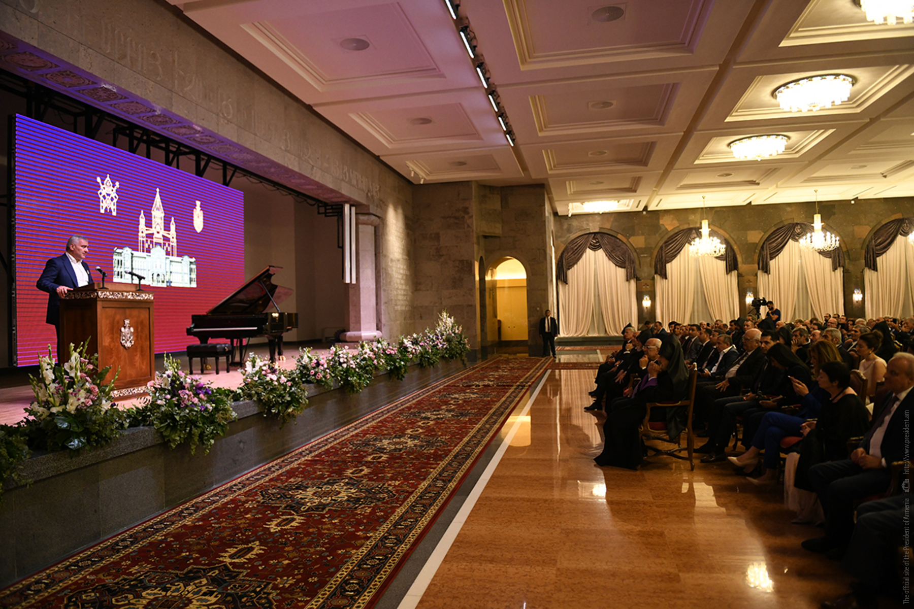 I am confident that very soon the newly renovated Residence will fill with the Armenian kids but this time they will use this splendid structure and the territory of the Residence for singing, joy, creative work and demonstration of their creations. I have no doubt that this splendid hall will be used to promote the Armenian culture. I will be delighted to attend future concerts, exhibitions worthy of this wonderful hall and the Residence. Minutes ago, I shook hands with our great maestro Tigran Mansourian. Maestro, I believe your glorious music and this glorious structure deserve each other.