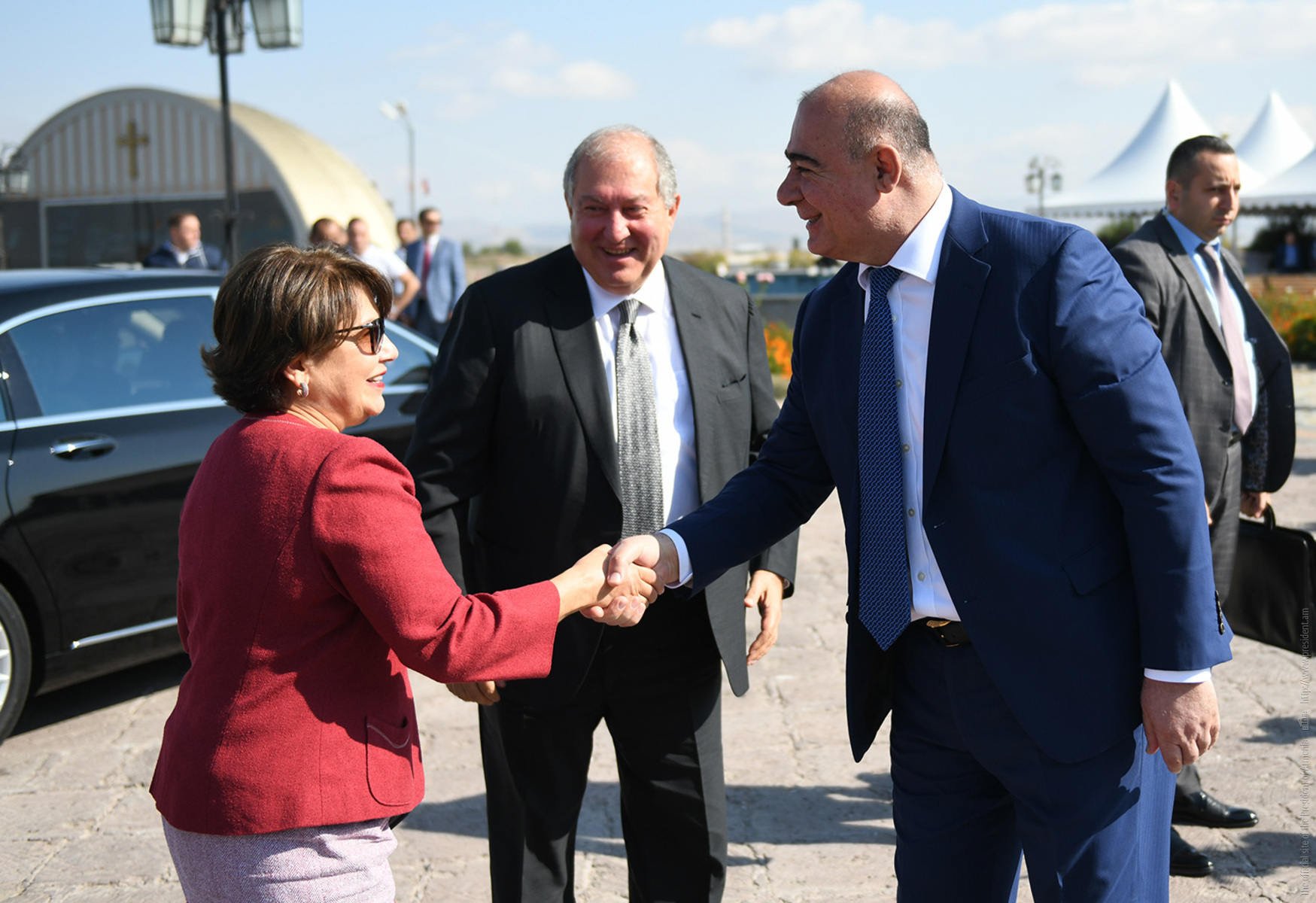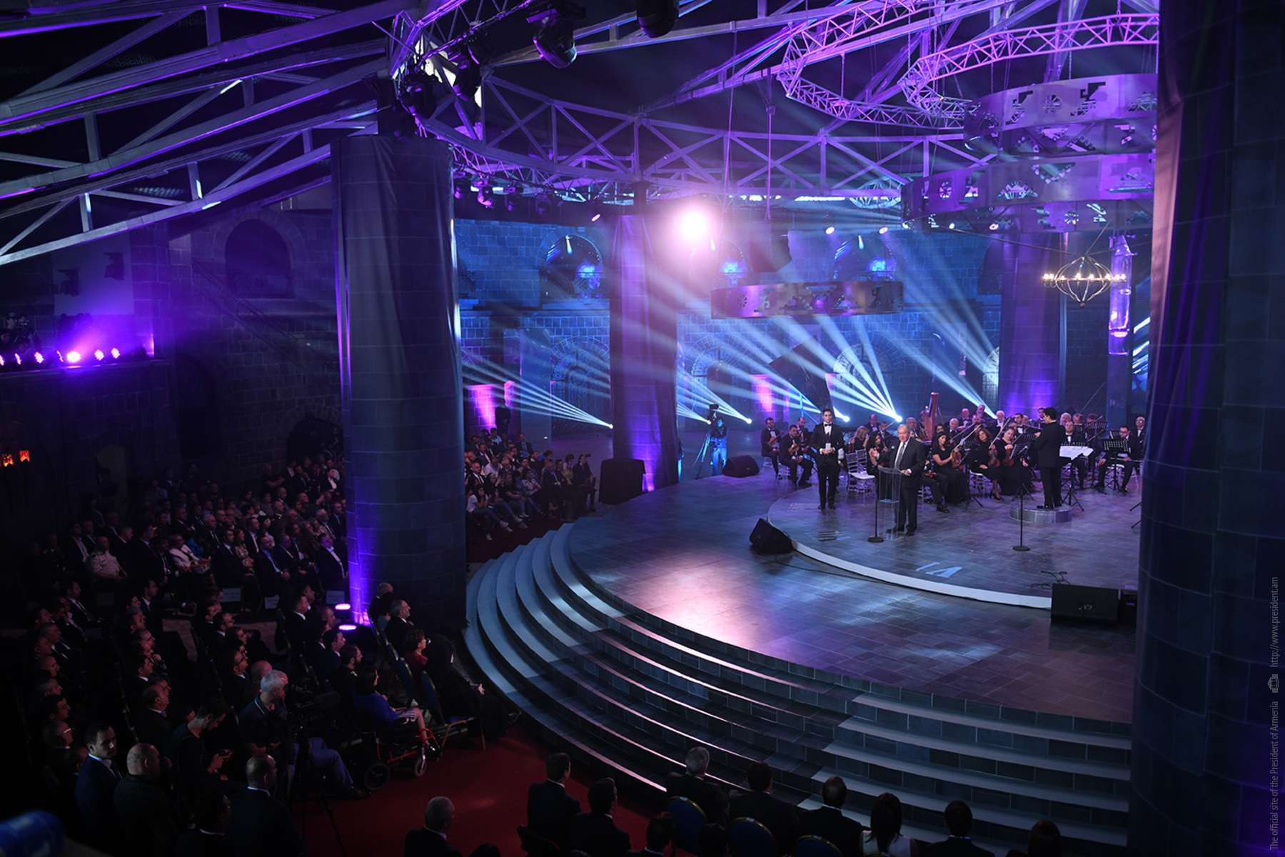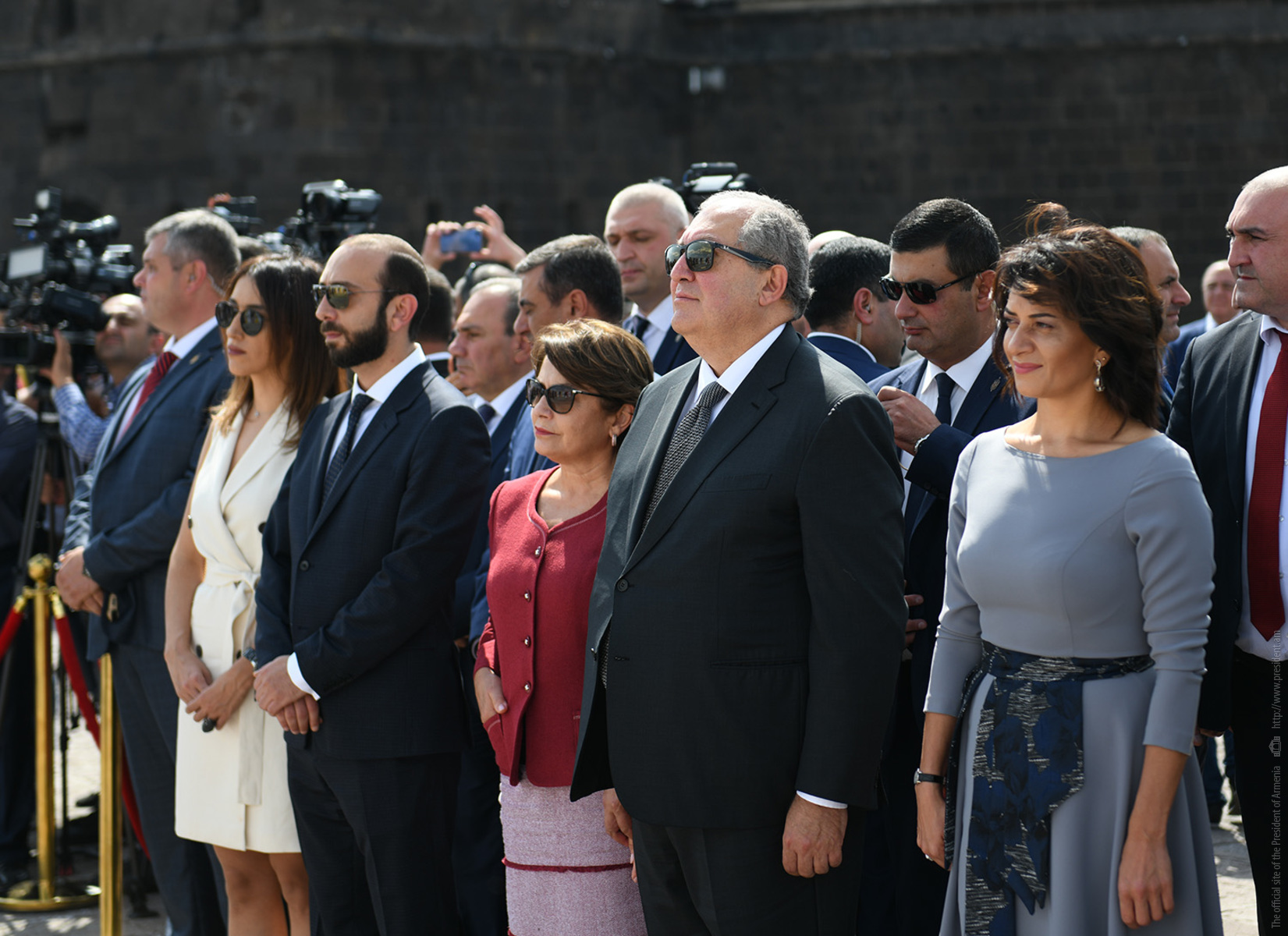 President Armen Sarkissian and Mrs. Nouneh Sarkissian today in Gyumri participated at the festive events dedicated to the 28th anniversary of Independence. In the Black Castle of Gyumri, President Sarkissian, Mrs. Sarkissian, His Holiness Supreme Patriarch and Catholicos of All Armenians Garegin II, Prime Minister Nikol Pashinian, President of Artsakh Bako Sahakian, other high-level officials and guests were present at the award ceremony titled the Hero of Our Times. President Armen Sarkissian handed one of 13 awards.