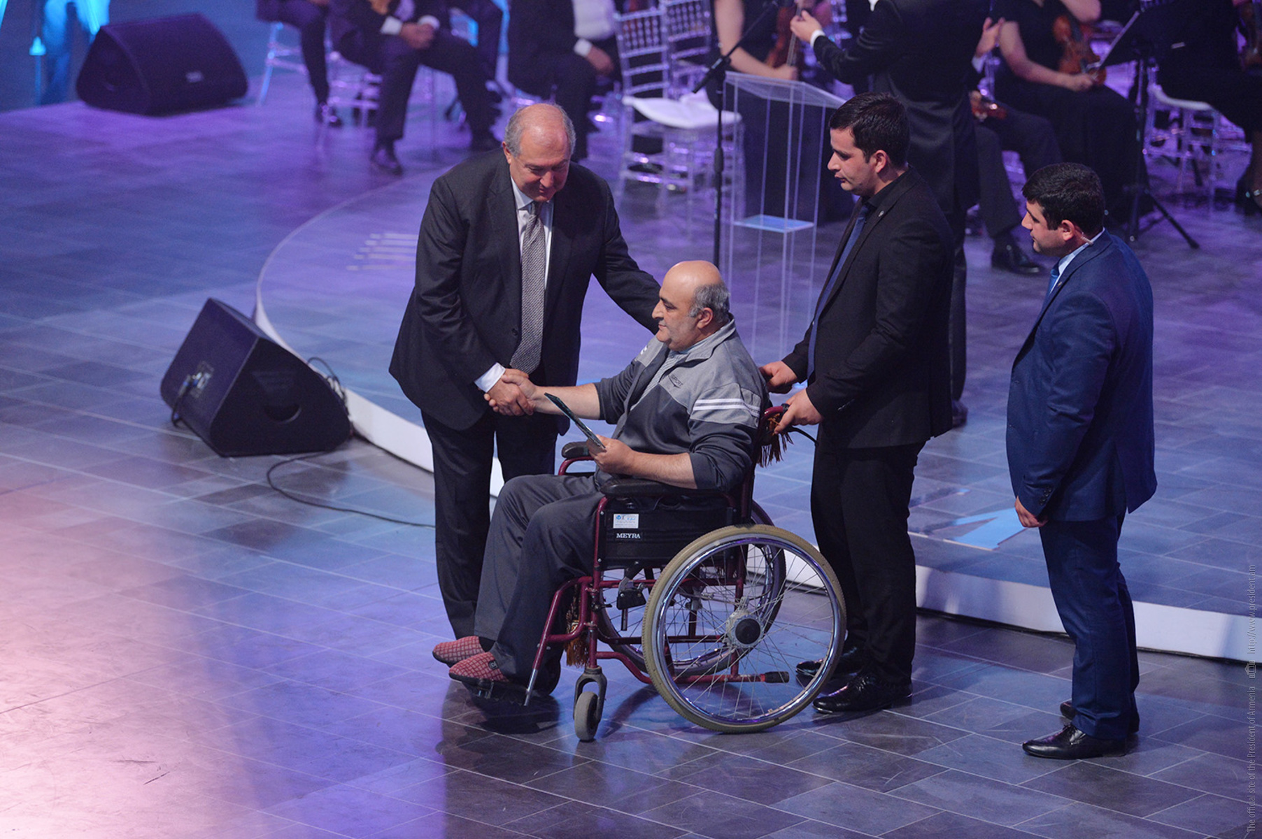 After opening the nomination envelope, President Sarkissian handed the award to the winner – Samvel Gasparian, a carpenter from Margahovit. Speaking about the awardees, the President said that every one of them is a true hero in his work.