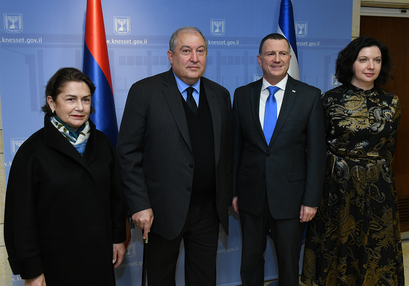 President Armen Sarkissian, who is in the State of Israel on a working visit, and Mrs. Nouneh Sarkissian today visited the Israeli Parliament – Knesset where they were hosted by the Speaker of Knesset Yuli Edelstein and Mrs. Irina Nevzlin.