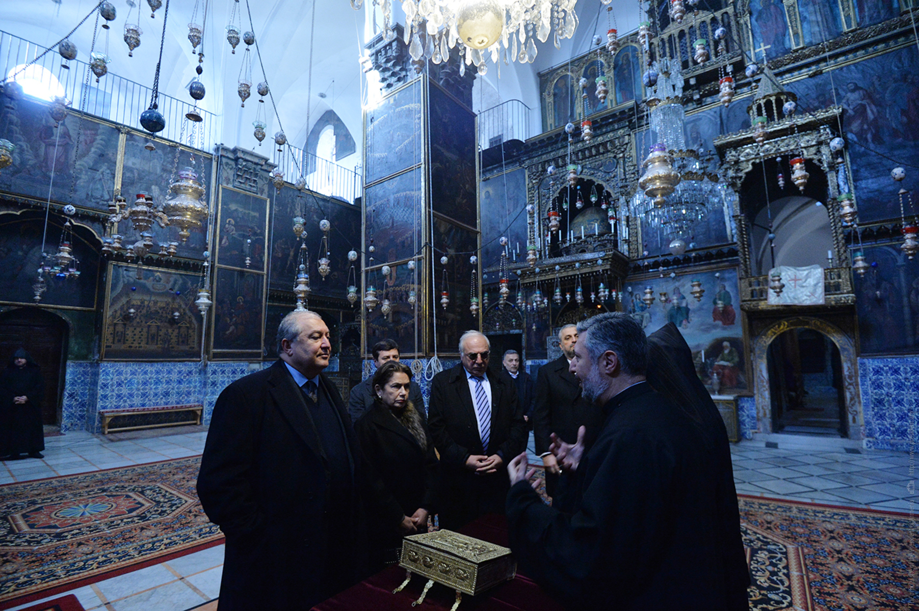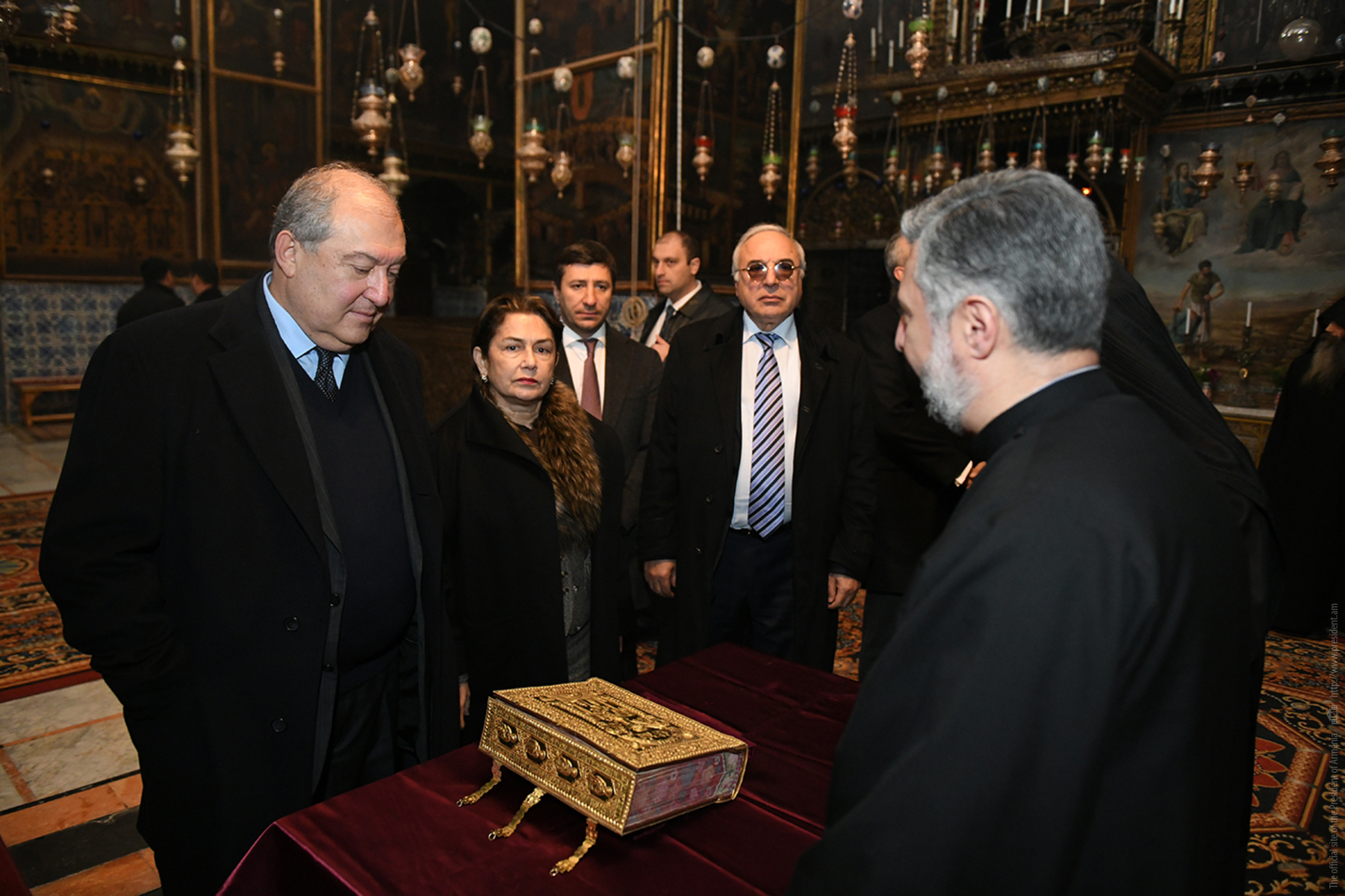 President Armen Sarkissian and Mrs. Nouneh Sarkissian visited the center of the Armenian spiritual heritage in Jerusalem, the magnificent the Cathedral of Saint James erected on the Mount Zion.