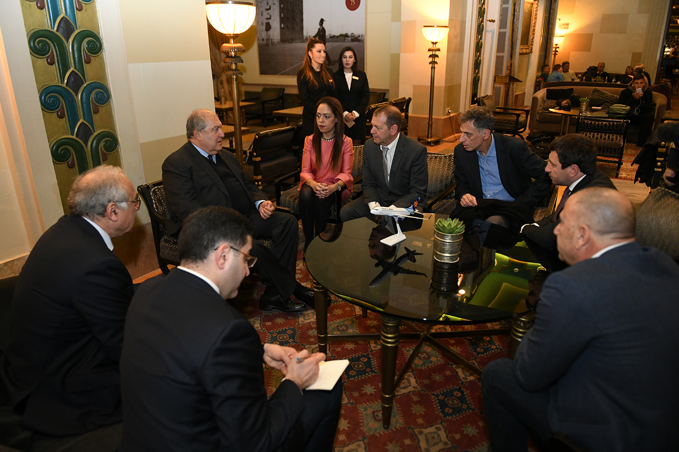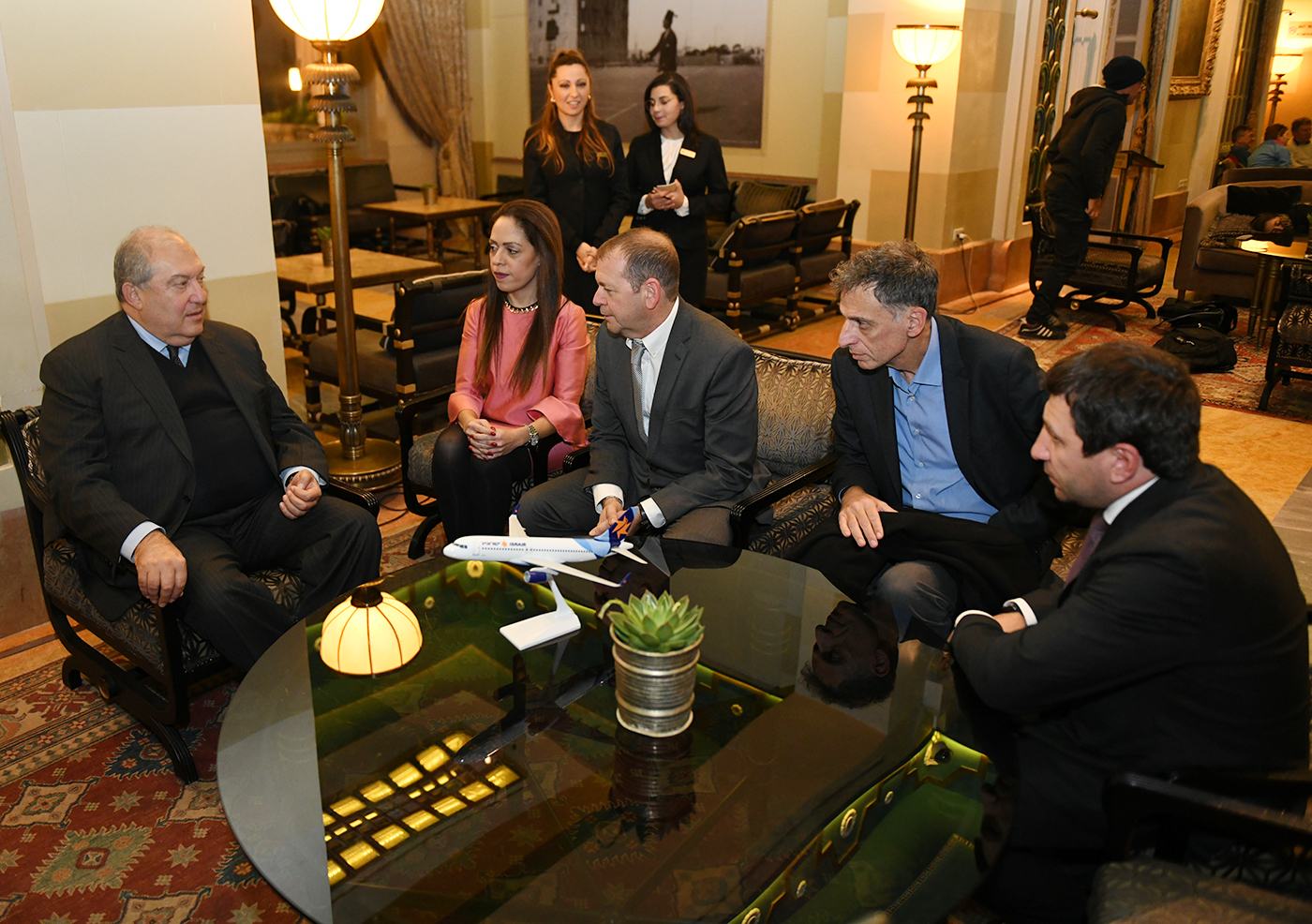 In the framework of his working visit to the State of Israel, President Armen Sarkissian met with the CEO of Israir Airlines company Uri Sirkis and Operations Manager Dorit Kalimi.