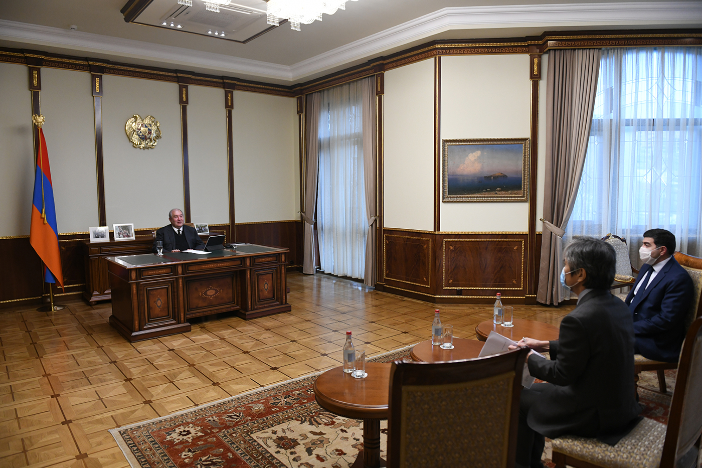 The interlocutors exchanged views on the practical elements of the Armenian-Japanese cooperation considering the current situation, created by the spread of the new coronavirus, as well as the future programs. Ambassador Yamada presented the situation with the epidemic in Japan and undertaken measures. Discussed were opportunities of the mutual assistance under the existing conditions. President Sarkisisan thanked for the continued assistance provided by Japan to Armenia, and particularly for providing a set of tests necessary for detecting the disease.