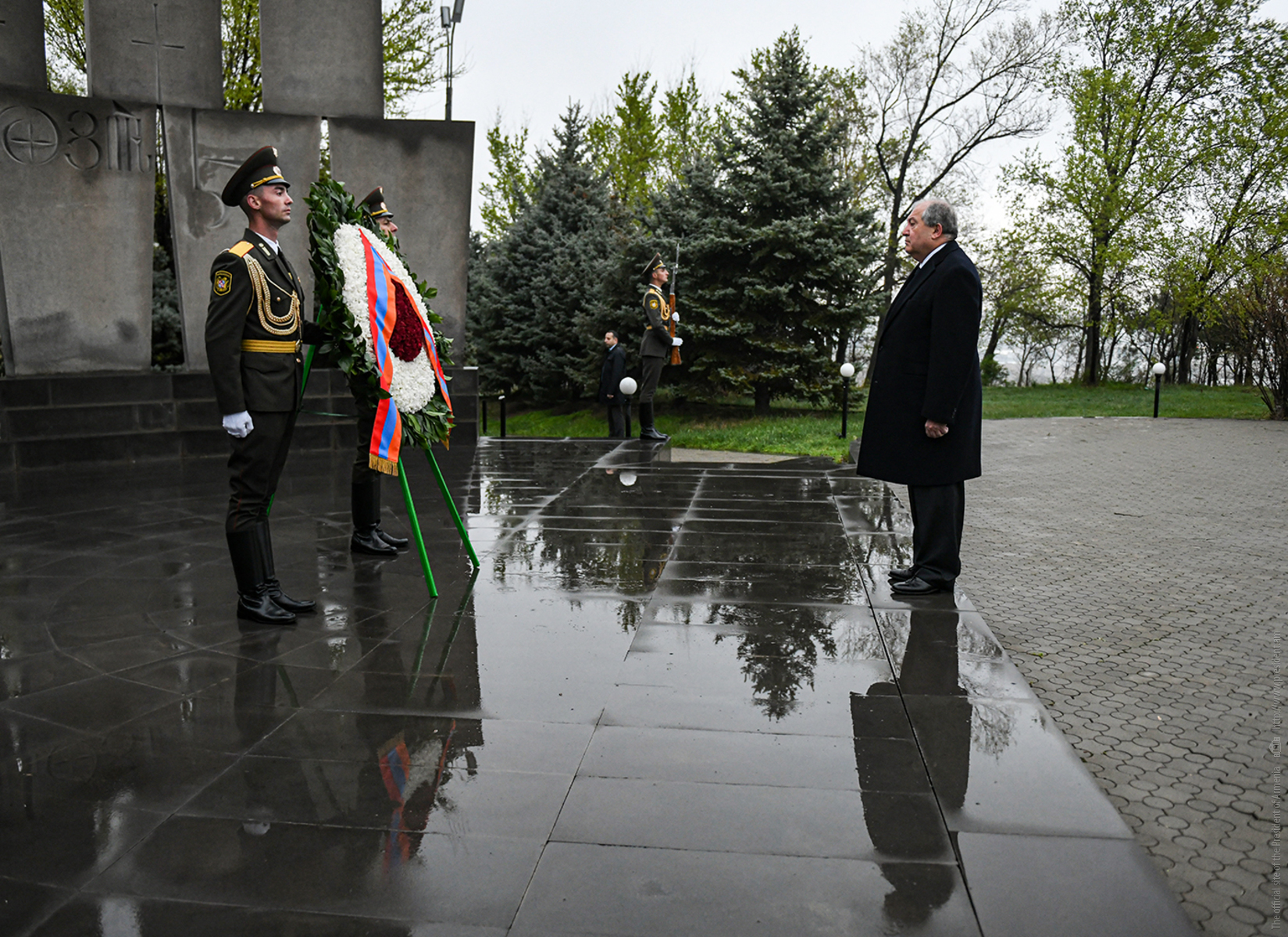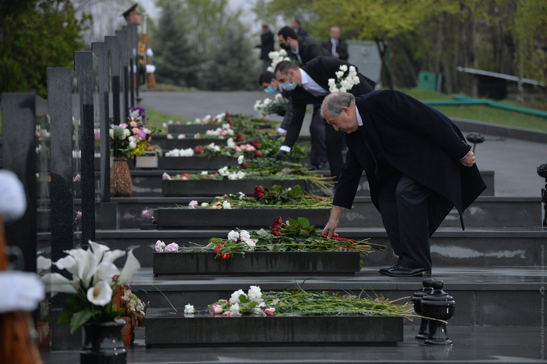 President Sarkissian and accompanying Homeland Defenders laid flowers at the tombs of the heroes, who lost their lives during April 2016 military actions, and paid tribute to their memory.