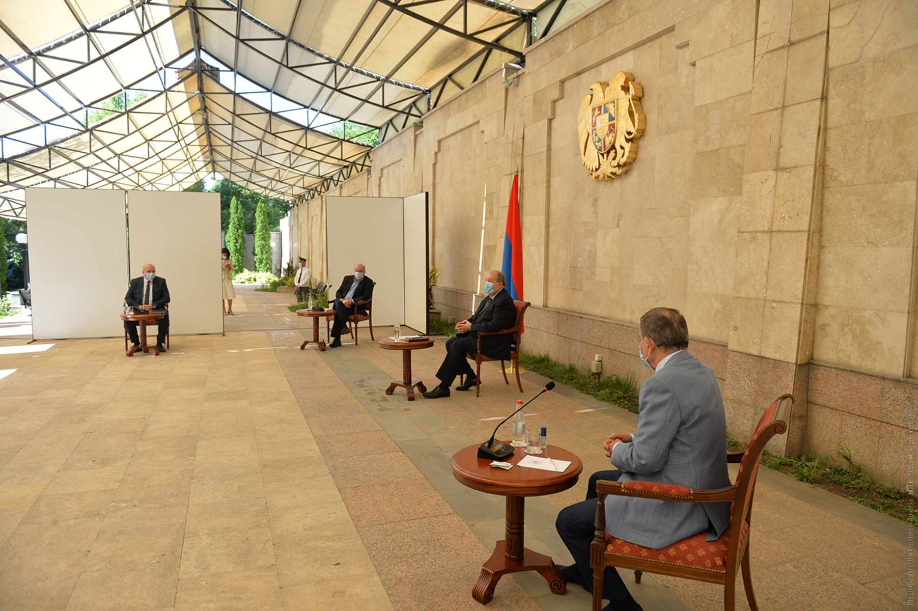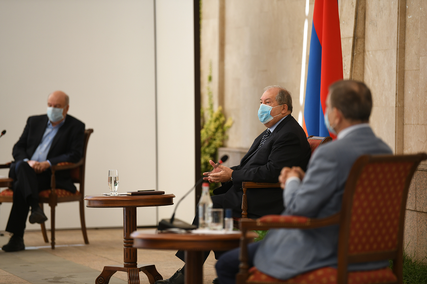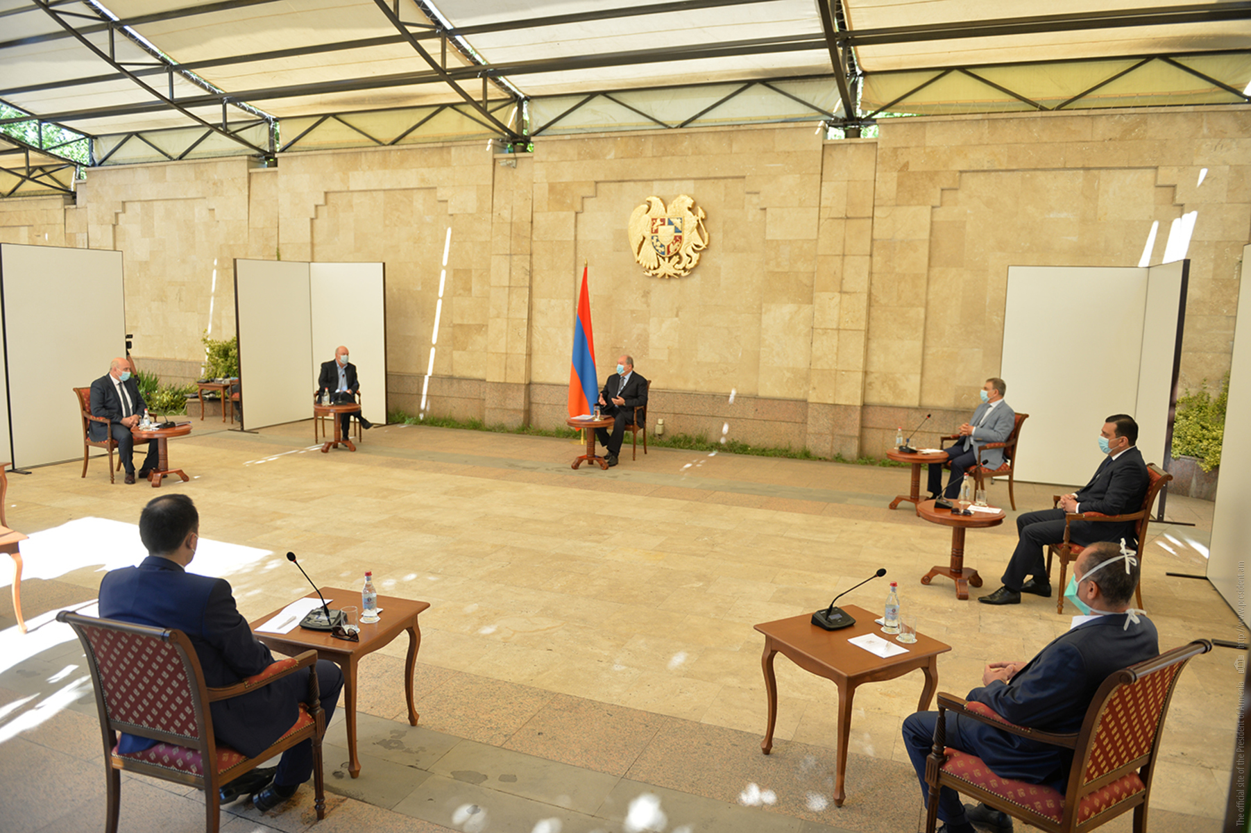 President Sarkissian noted that the purpose of the meeting is to discuss with the responsible representatives of the healthcare system and eminent experts three main issues: the current situation with the pandemic and forthcoming steps, issues related to the management of the healthcare system and how the President and the institute of presidency can assist in the resolution of these issues and in defeating the pandemic.