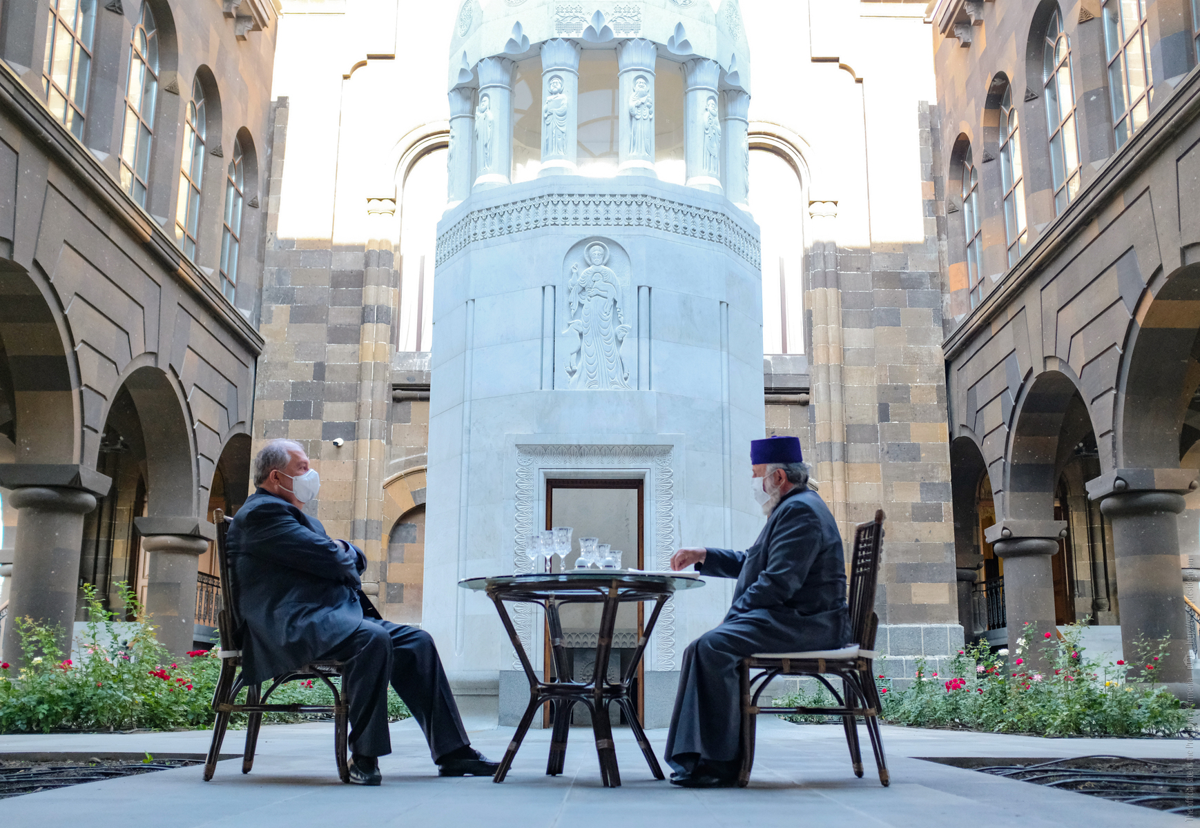 The President of Armenia and His Holiness spoke about the military actions unleashed recently by Azerbaijan at the Tavush segment of the Armenian-Azerbaijani border and shelling by the Azerbaijani armed forces of peaceful Armenian settlements. They stressed as important and significant that the clergy of the Saint Armenian Apostolic Church in Armenia and in Diaspora alike, just like throughout the course of our history, today too, stand by the Fatherland, next to our troops defending peace and security, and encourage and support with prayers and spiritual words the defenders of our Fatherland.