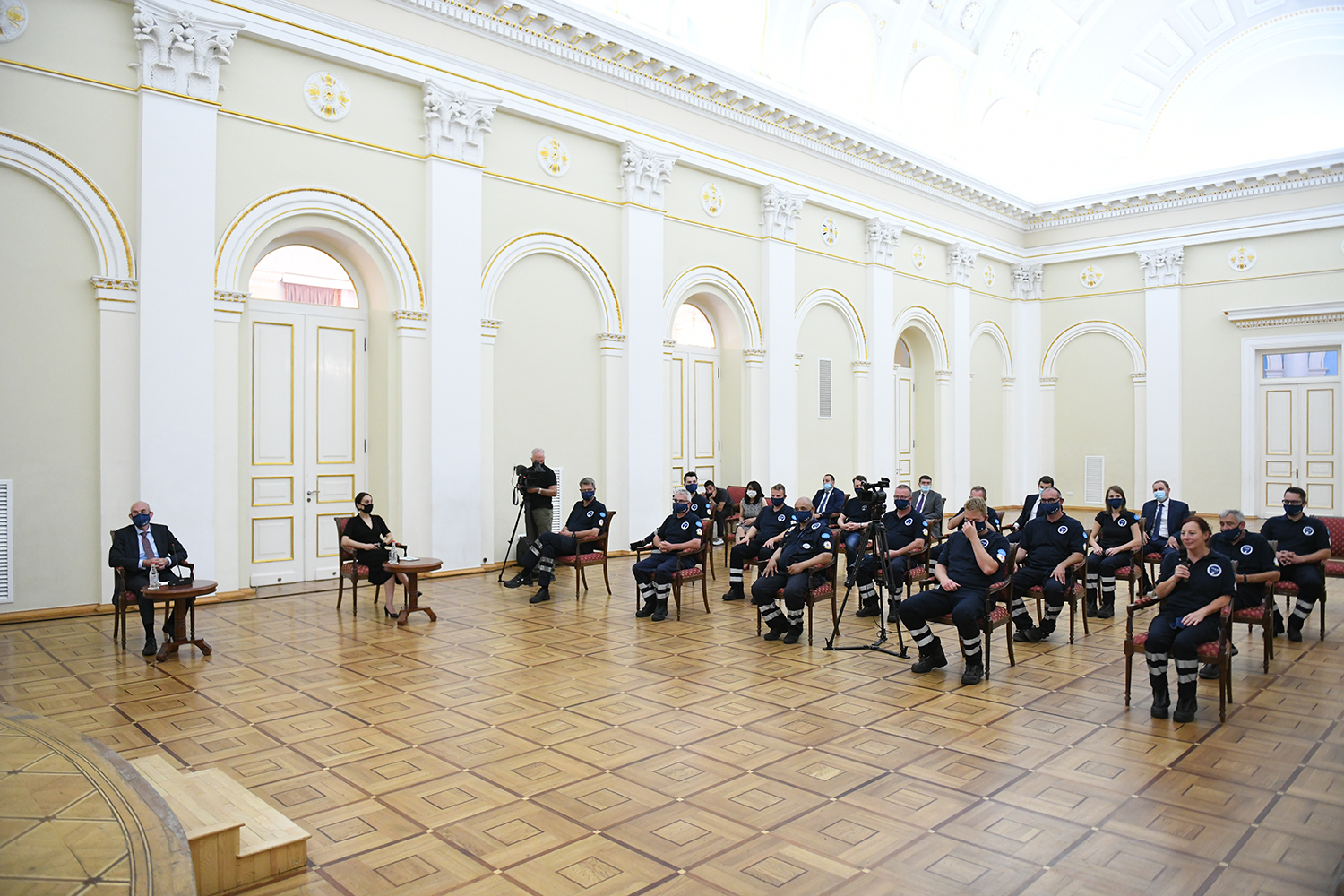 President Armen Sarkissian hosted today a team of medical workers from Germany who have arrived to Armenia to assist their Armenian colleagues in the fight against the coronavirus pandemic and share their experience. Present at the meeting were also the first Deputy Minister of the RA Ministry of Health Anahit Avanessian, Ambassador Extraordinary and Plenipotentiary of Armenia to the Federal Republic of Germany Ashot Smbatian and Ambassador Extraordinary and Plenipotentiary of Germany to Armenia Michael Banzhaf.