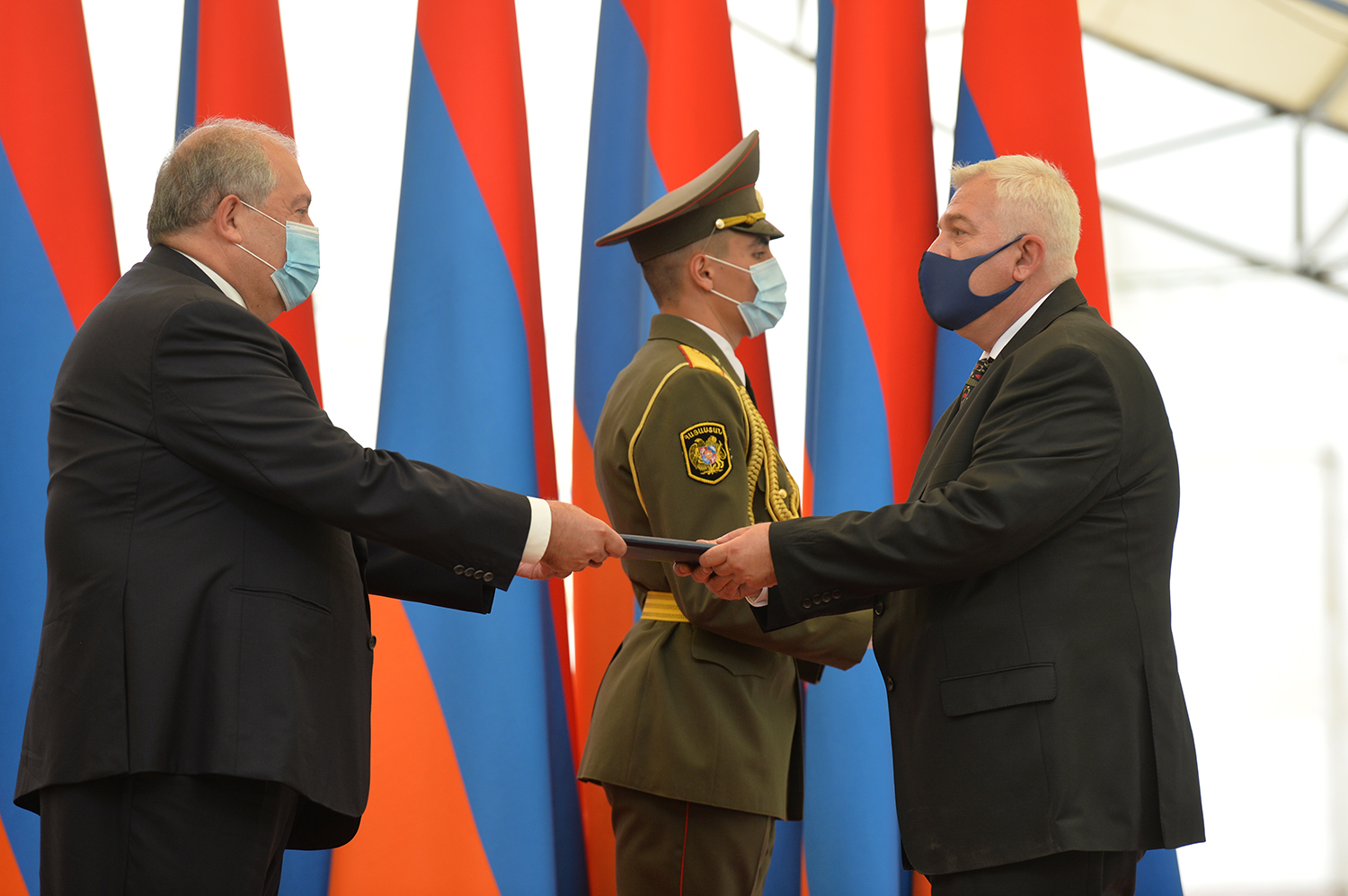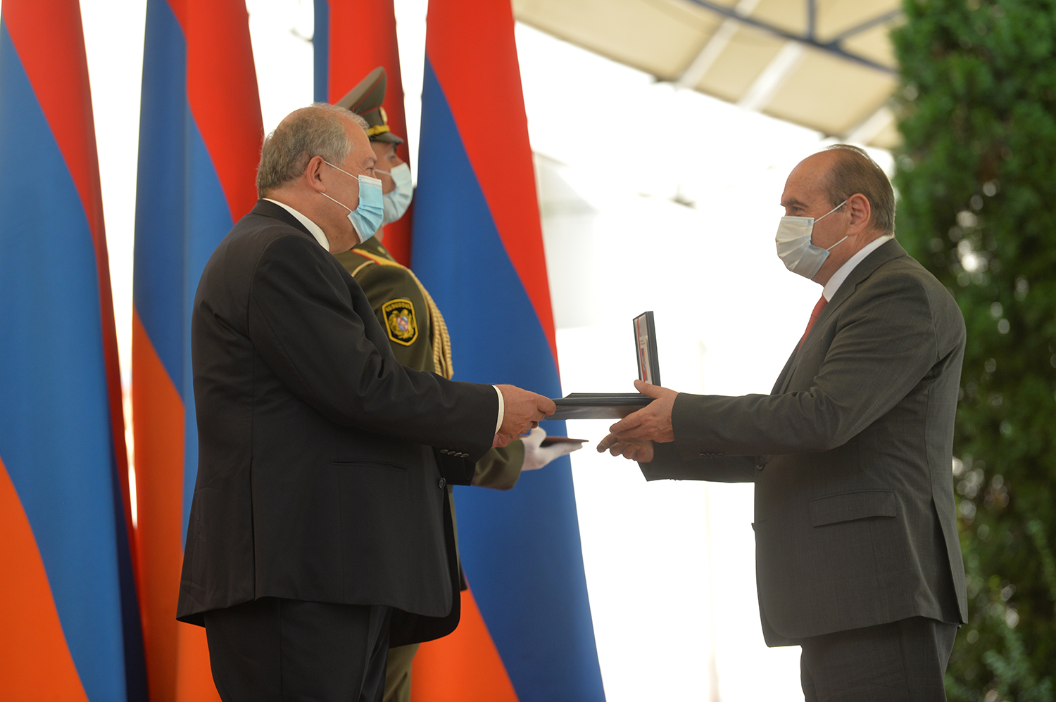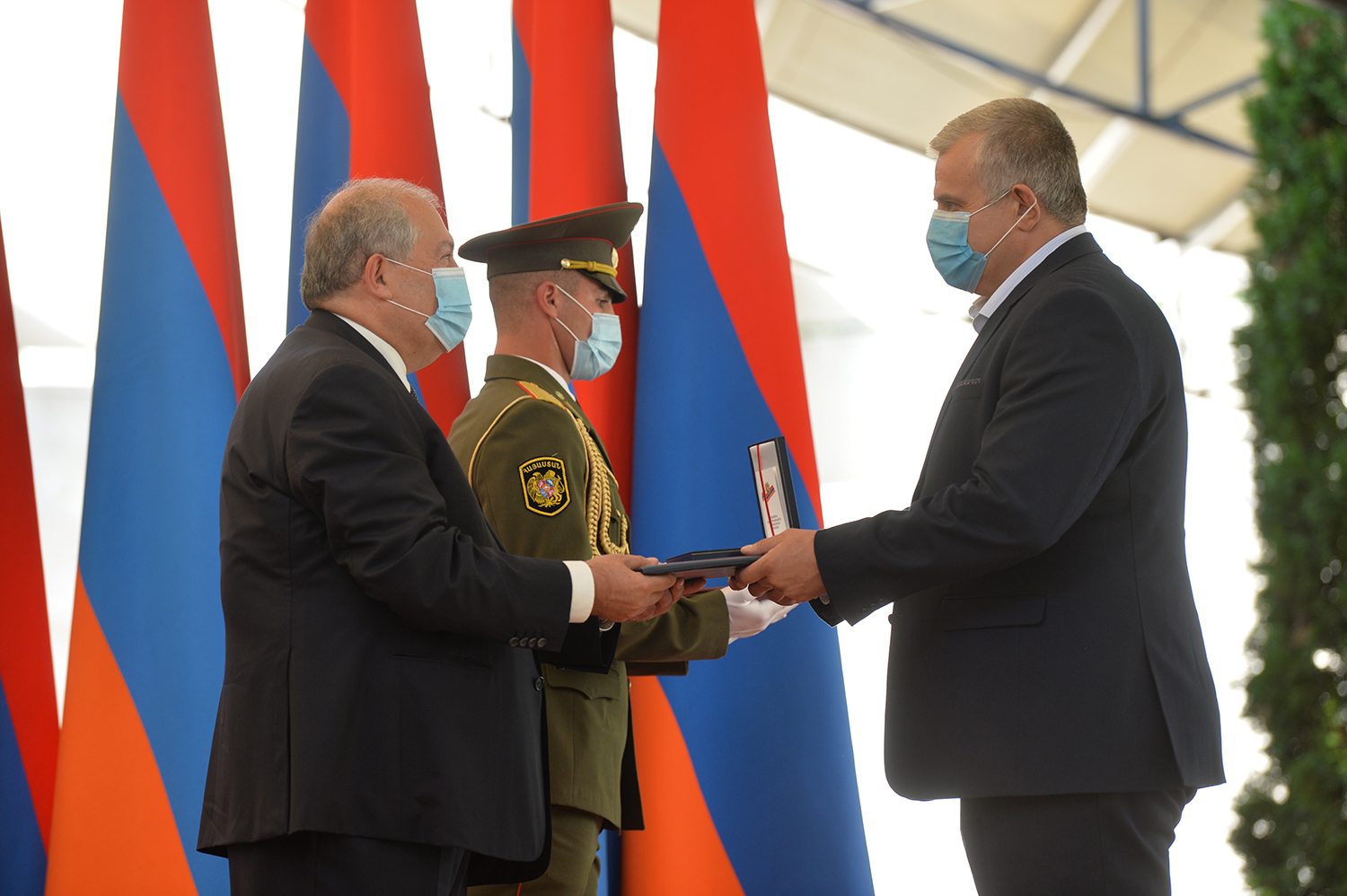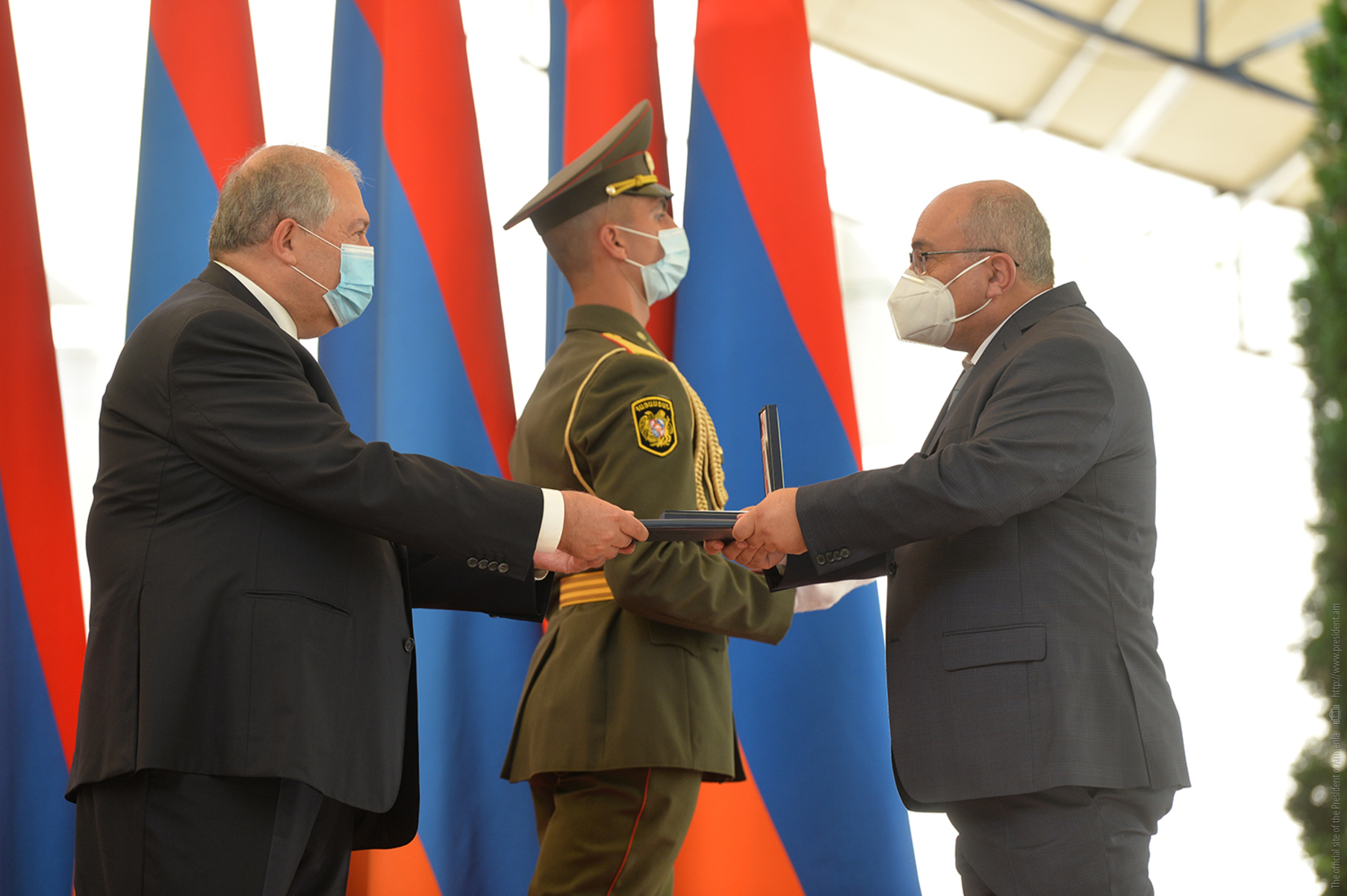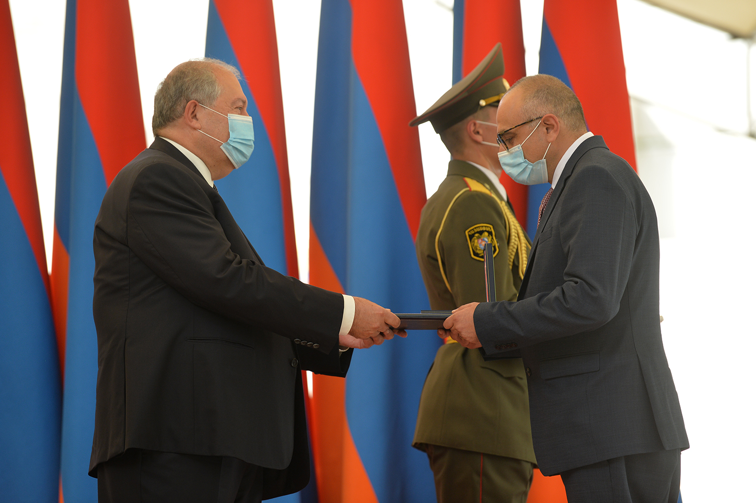 The award handing ceremony took place today at the Presidential Palace. President Armen Sarkissian handed high state awards and congratulated on the occasion of Independence Day and on receiving awards and ranks.