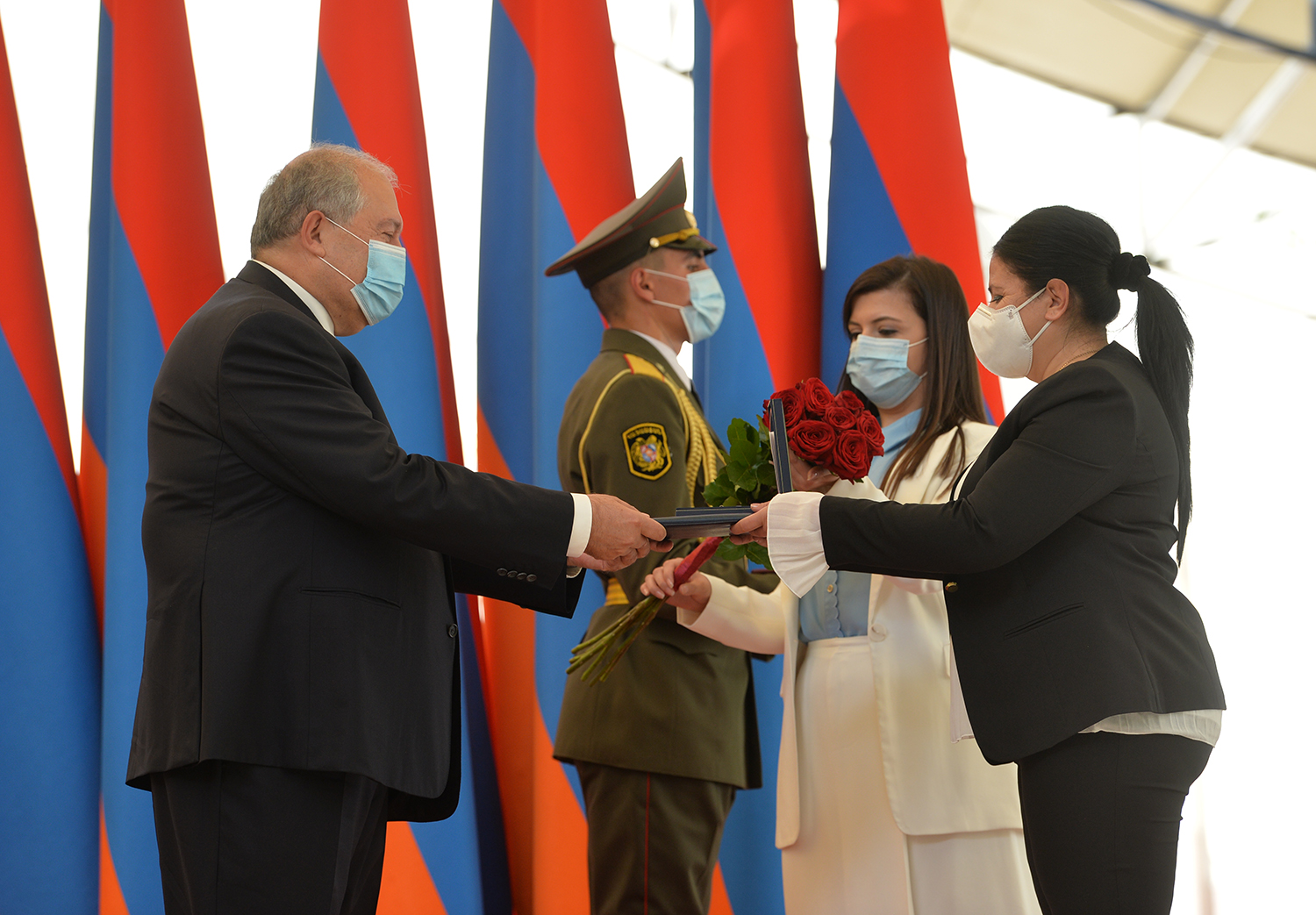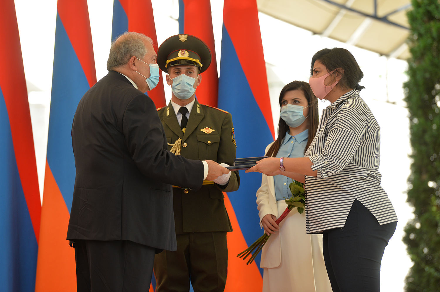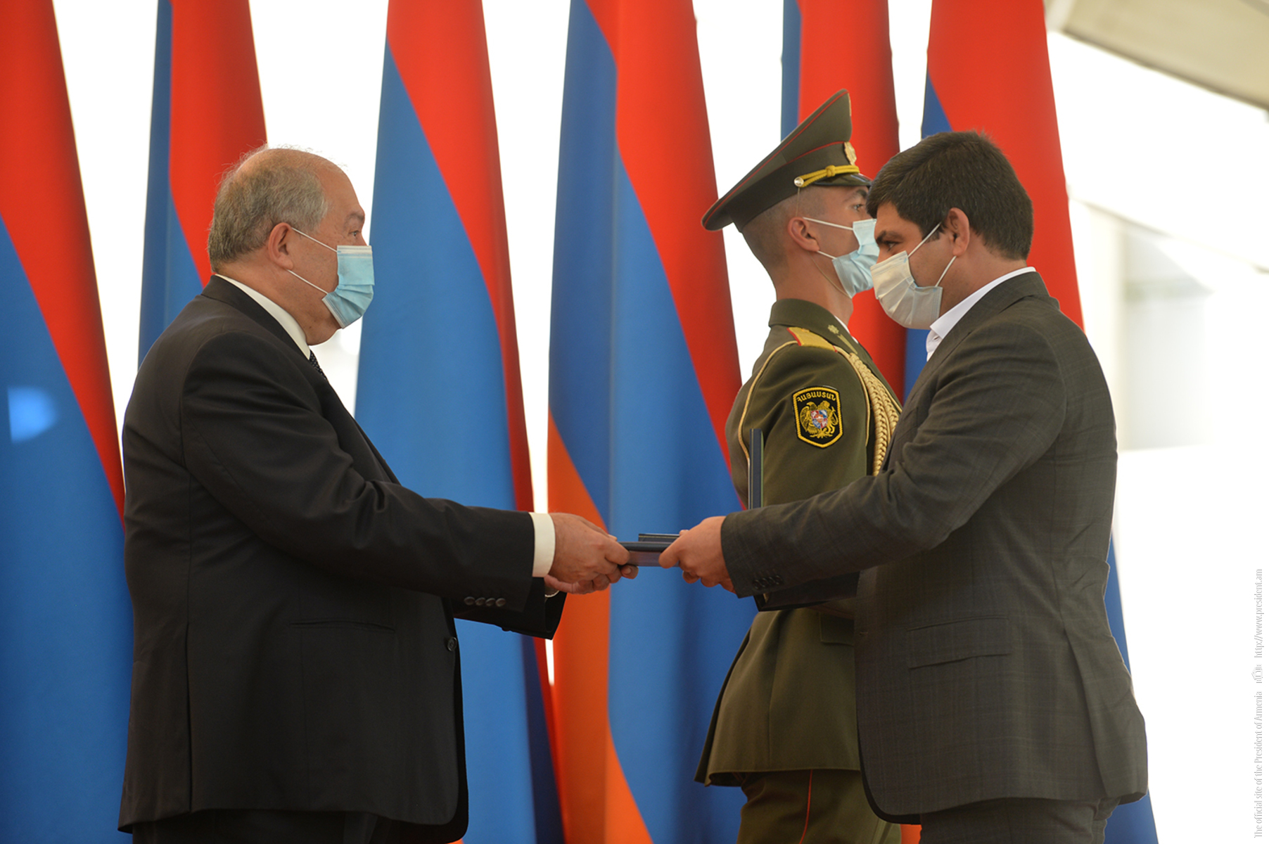 By the decrees of President Armen Sarkissian a group of individuals from the areas defense, healthcare, law enforcement, culture, education, arts, sport, technologies, judiciary, state service and other areas of social life were awarded orders and medals, ranks and titles.