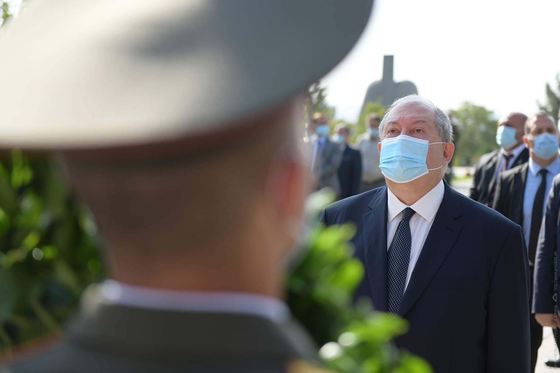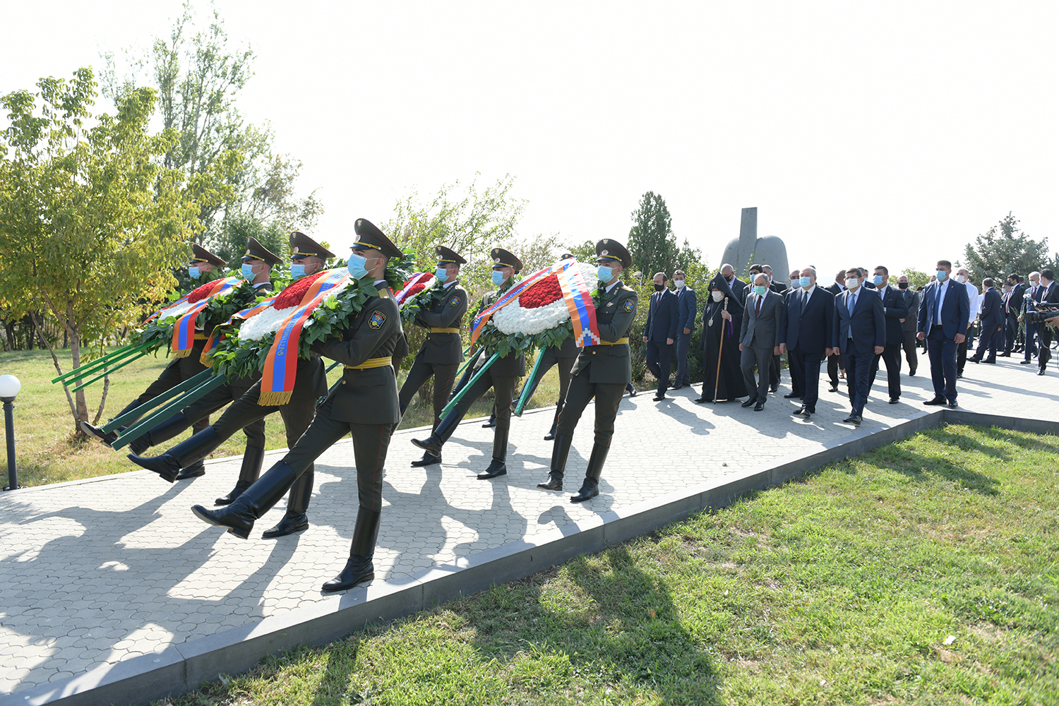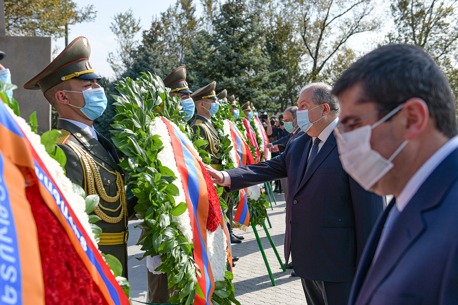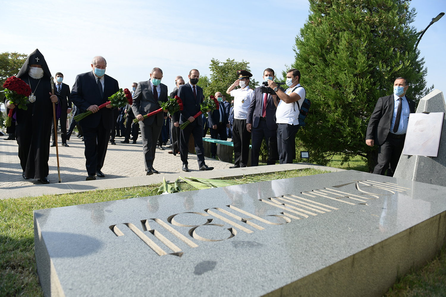 On the occasion of Independence Day, President Armen Sarkissian together with His Holiness Supreme Patriarch and Catholicos of All Armenians Garegin II, Prime Minister Nikol Pashinian, President of the Republic of Artsakh Arayik Harutyunian, Speaker of the National Assembly Ararat Mirzoyan, and members of the Security Council, accompanied by the highest echelon of the Ministry of Defense and Armed Forces visited today the Erablur military pantheon and paid tribute to the memory of the devotees who gave their lives for independence of the Fatherland.