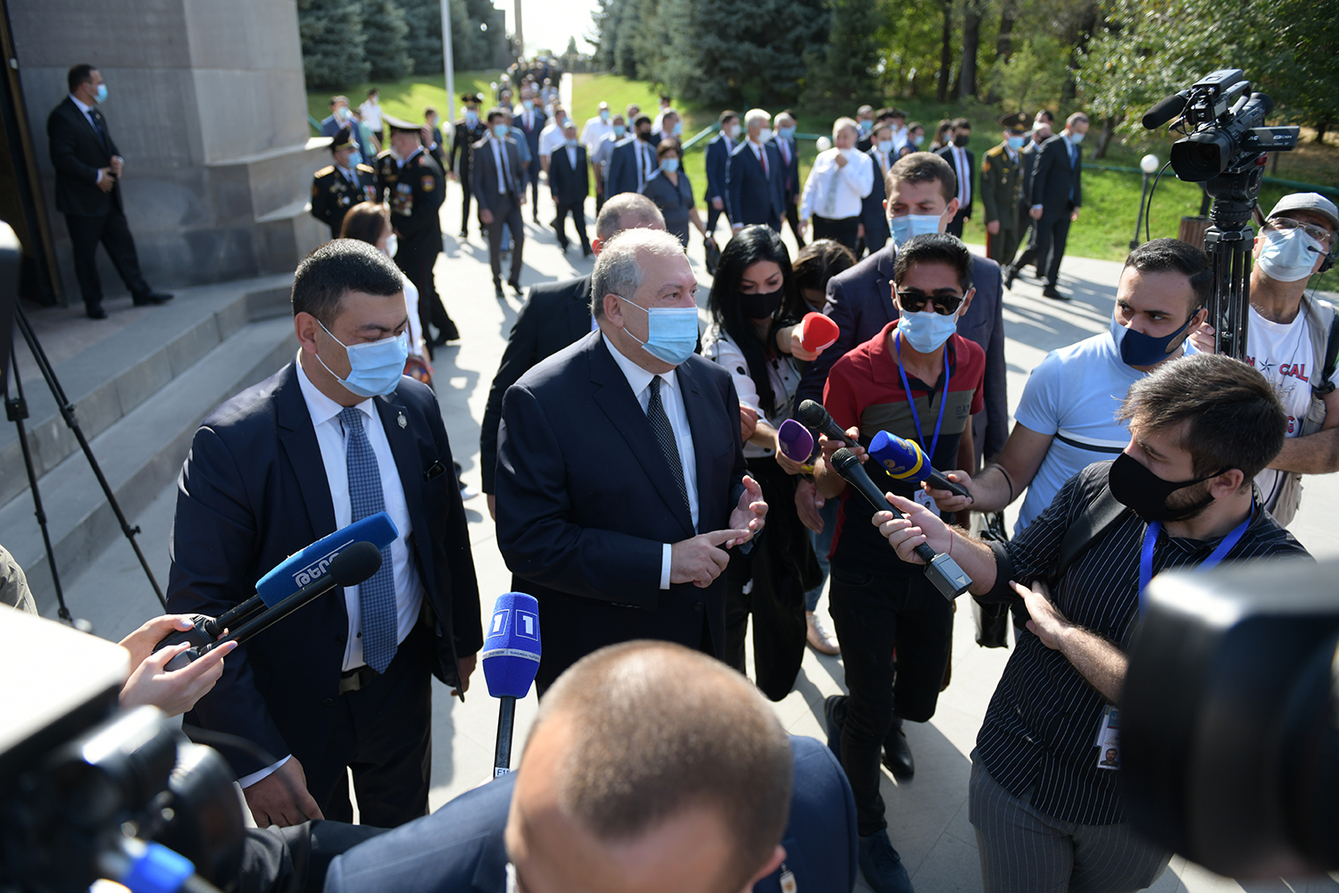Responding to the questions of the journalists, President Sarkissian congratulated all on the occasion of the holiday and said, “Thirty years ago, our nation had a dream, a dream cherished for hundreds of years – to reestablish its independent statehood, and 29 year ago that dream became a reality. Through these years we have had great victories, difficulties, and I believe we have learned all good and bad lessons. It’s time we dream again, so that in the next 30 years we build a strong and powerful state. Twenty-nine years ago we all together had faith and received what we wanted. If today we have faith, are disciplined and organized, with a precise goal and plan, we will get our dream.”