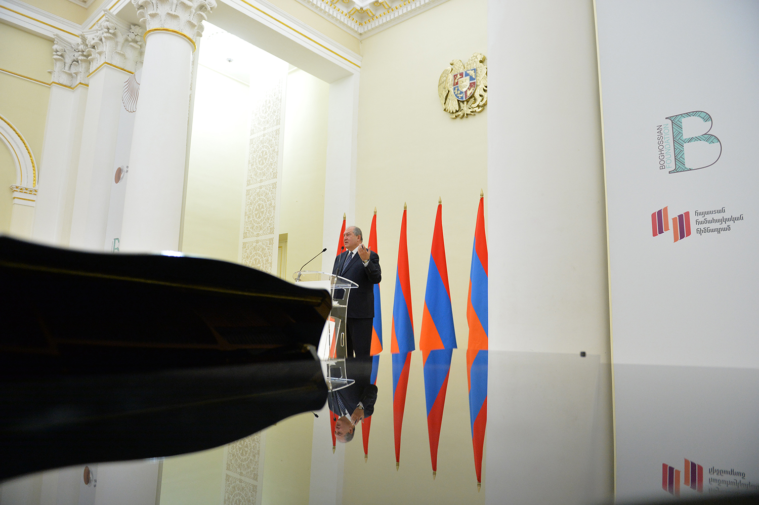 The President of Armenia, Chairman of the Board of Trustees of Hayastan All-Armenian Fund Armen Sarkissian today at the big hall of the Presidential Palace was present at the Poghossian Award ceremony.