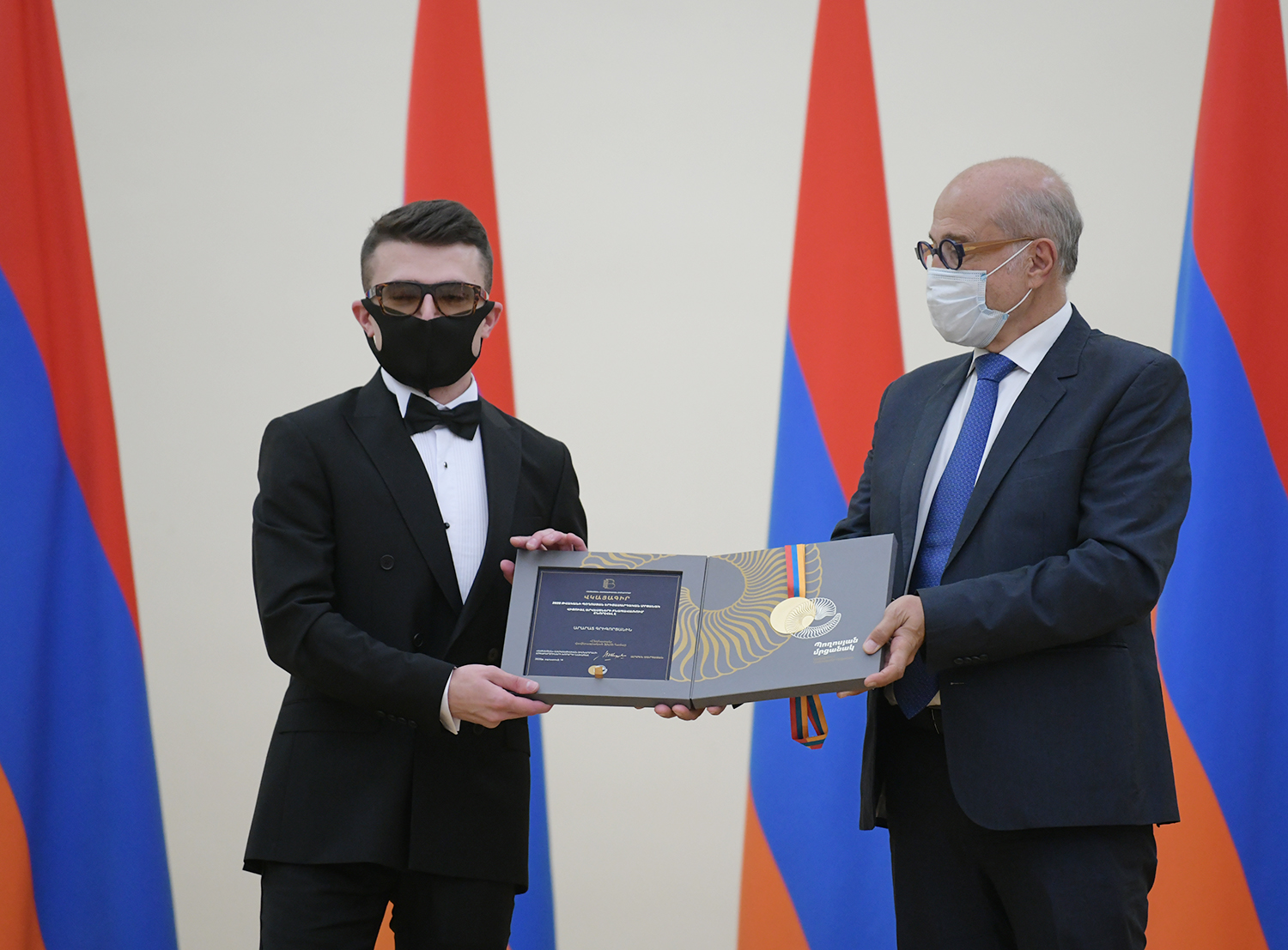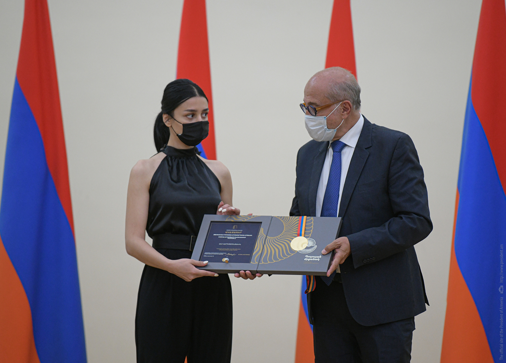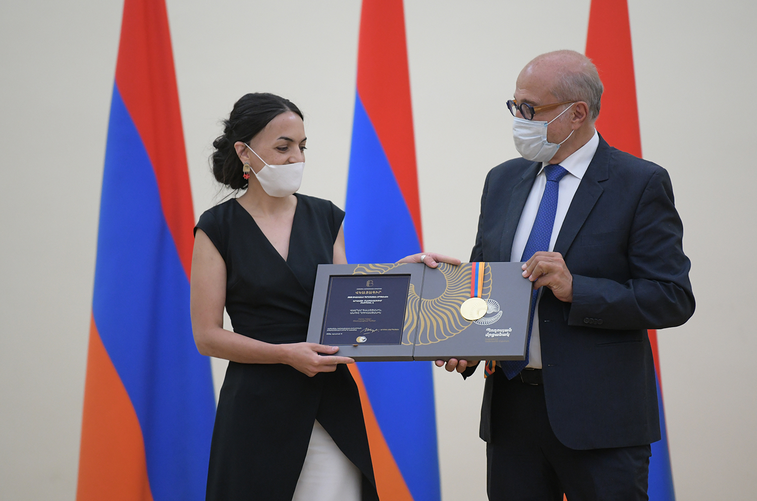 At the conclusion of the award ceremony, President Armen Sarkissian addressed the participants of the ceremony and said that it was important to show appreciation for the input of the scientists, workers of arts and culture. “This beautiful award, which used to be called Presidential and now is the Poghossian Award, has been awarded for 19 year in a row which means it has a history and has encouraged many scholars, workers of arts and culture to continue to work in different areas regardless of the situation they are in – good or bad, on the rise or surrounded by difficulties. Thus, with regard to showing appreciation this award has done splendid work.” The President underscored that one of the greatest merits of our nation is the ability to be creative, and this award is aimed at encouraging creative individuals. “Being creative is one of the attributes of being Armenian. I meet creative people every day, and they are creative not only in science, arts, painting or music but also in crafts and high arts,” the President said. “Hence, I believe this award has played an important role in encouraging and appreciating the years-long activities of our scientists, artists, art workers, authors and certainly has been an encouragement for the young scientists, art workers, and students. It is critical that each artist, scientist and intellectual knows that they are in the center of their nation’s attention. In fact, this award shows the attitude of the people and their respect. Thus, I wish all awardees of this year to continue their scientific and cultural activities, while the young awardees ought to understand that today they are living not only in the Armenian world but at the world at large. They have a road to pass to conquer that world, and should always remember that the Fatherland is standing by them.”