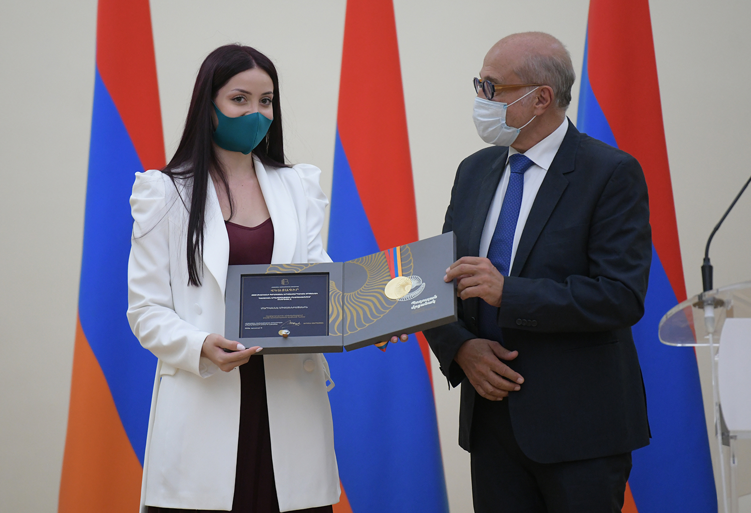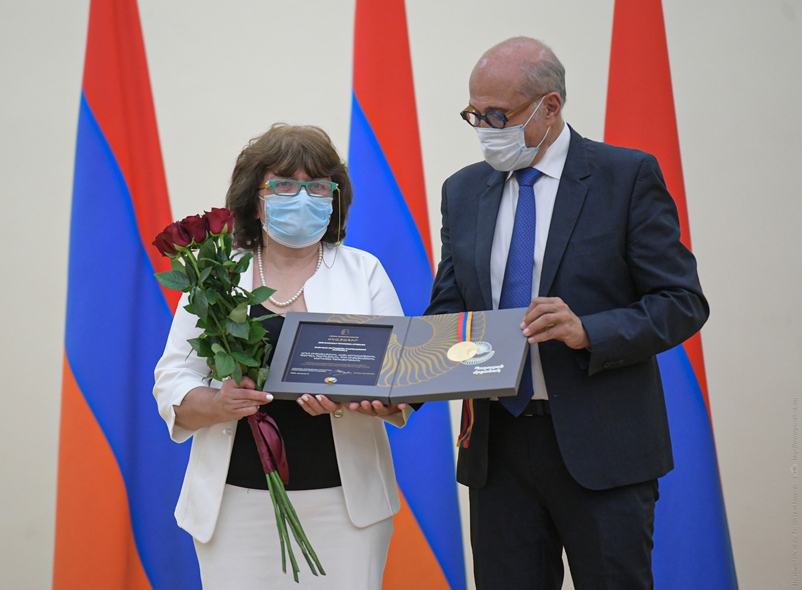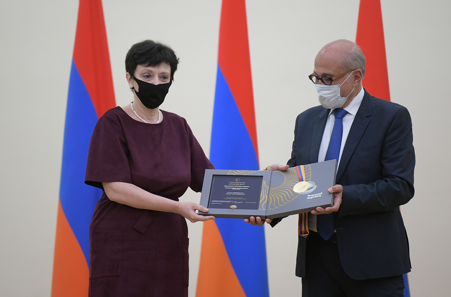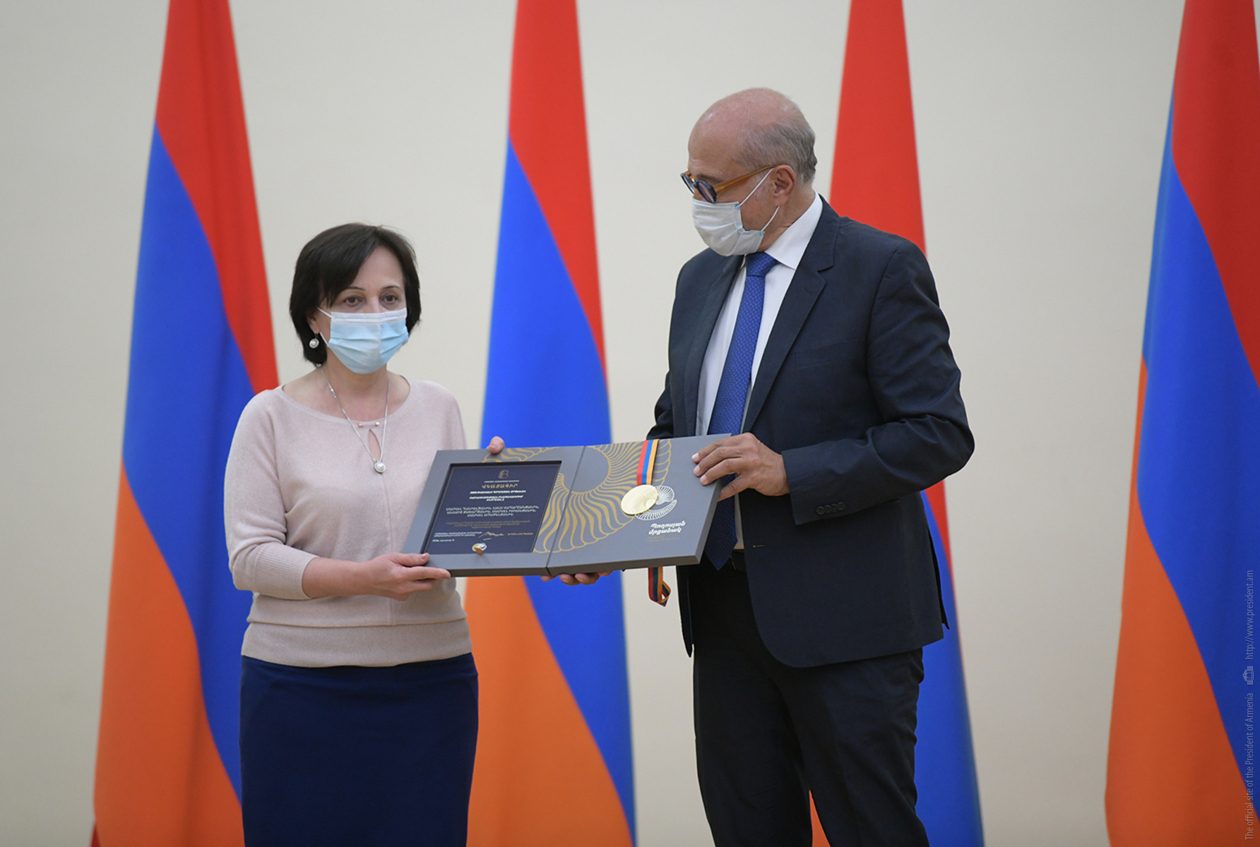 At the conclusion of the award ceremony, President Armen Sarkissian addressed the participants of the ceremony and said that it was important to show appreciation for the input of the scientists, workers of arts and culture. “This beautiful award, which used to be called Presidential and now is the Poghossian Award, has been awarded for 19 year in a row which means it has a history and has encouraged many scholars, workers of arts and culture to continue to work in different areas regardless of the situation they are in – good or bad, on the rise or surrounded by difficulties. Thus, with regard to showing appreciation this award has done splendid work.” The President underscored that one of the greatest merits of our nation is the ability to be creative, and this award is aimed at encouraging creative individuals. “Being creative is one of the attributes of being Armenian. I meet creative people every day, and they are creative not only in science, arts, painting or music but also in crafts and high arts,” the President said. “Hence, I believe this award has played an important role in encouraging and appreciating the years-long activities of our scientists, artists, art workers, authors and certainly has been an encouragement for the young scientists, art workers, and students. It is critical that each artist, scientist and intellectual knows that they are in the center of their nation’s attention. In fact, this award shows the attitude of the people and their respect. Thus, I wish all awardees of this year to continue their scientific and cultural activities, while the young awardees ought to understand that today they are living not only in the Armenian world but at the world at large. They have a road to pass to conquer that world, and should always remember that the Fatherland is standing by them.”