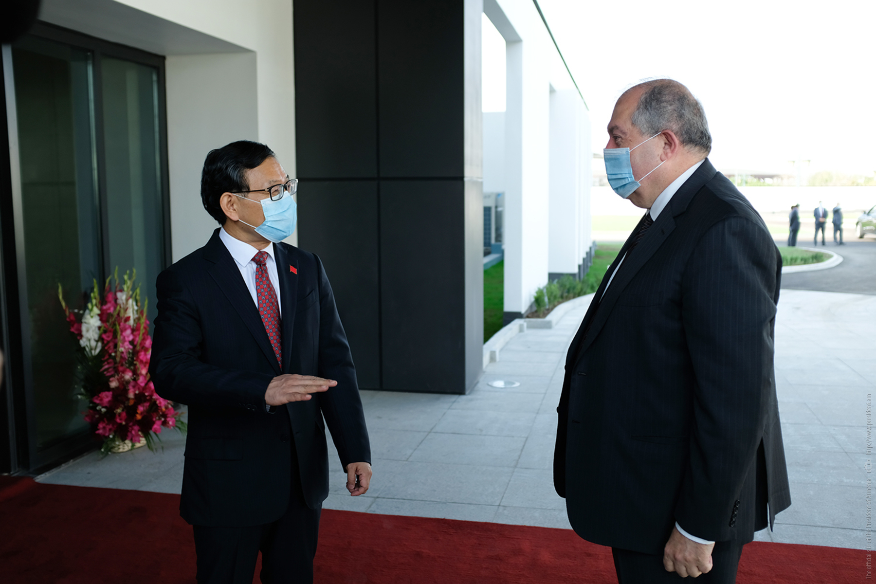 Ambassador of China to Armenia H.E. Tian Erlong welcomed the President at the doorstep of the new premise of the Embassy and noted that the President of Armenia was their first guest. “You are the first and most honorable guest of our new Embassy. It is a great honor for us to host you. We remember that you have visited us three times on the eve of the national holiday to congratulate us in person.