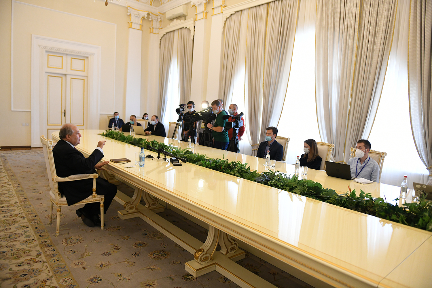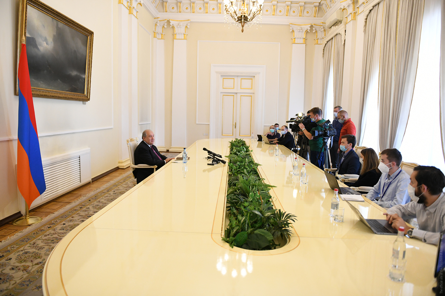 President Armen Sarkissian met today with representatives of the Russian mass media and responded to their questions related to the military aggression unleashed by Azerbaijan.