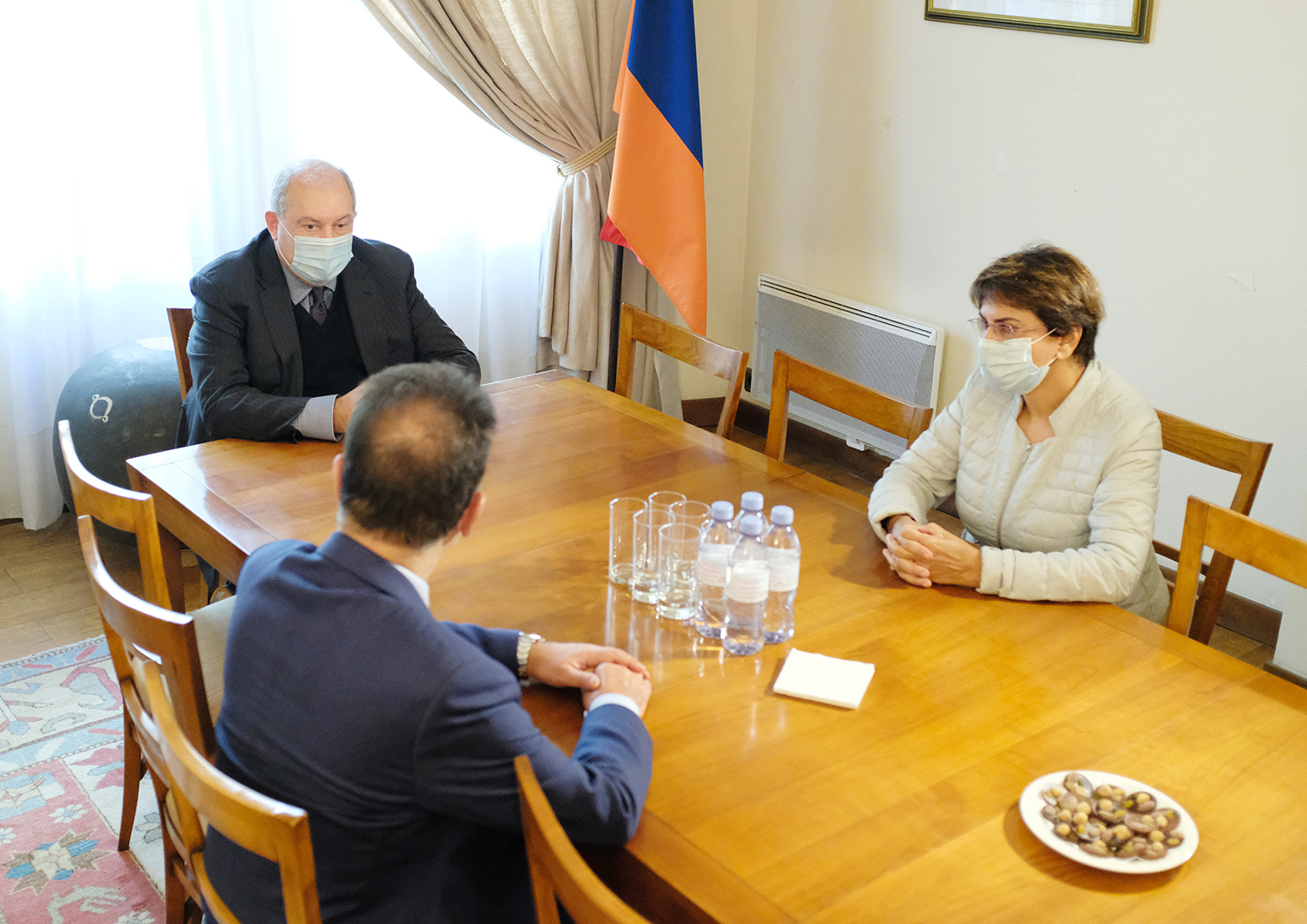 President Armen Sarkissian, who is in Paris on a working visit, met with ARF Bureau member, co-chair of the Coordinating Council of the Armenian Organizations of France Murad Papazian and Chairperson of the Armenian General Benevolent Union (AGBU) France and AGBU Europe Nadya Gortsunian.