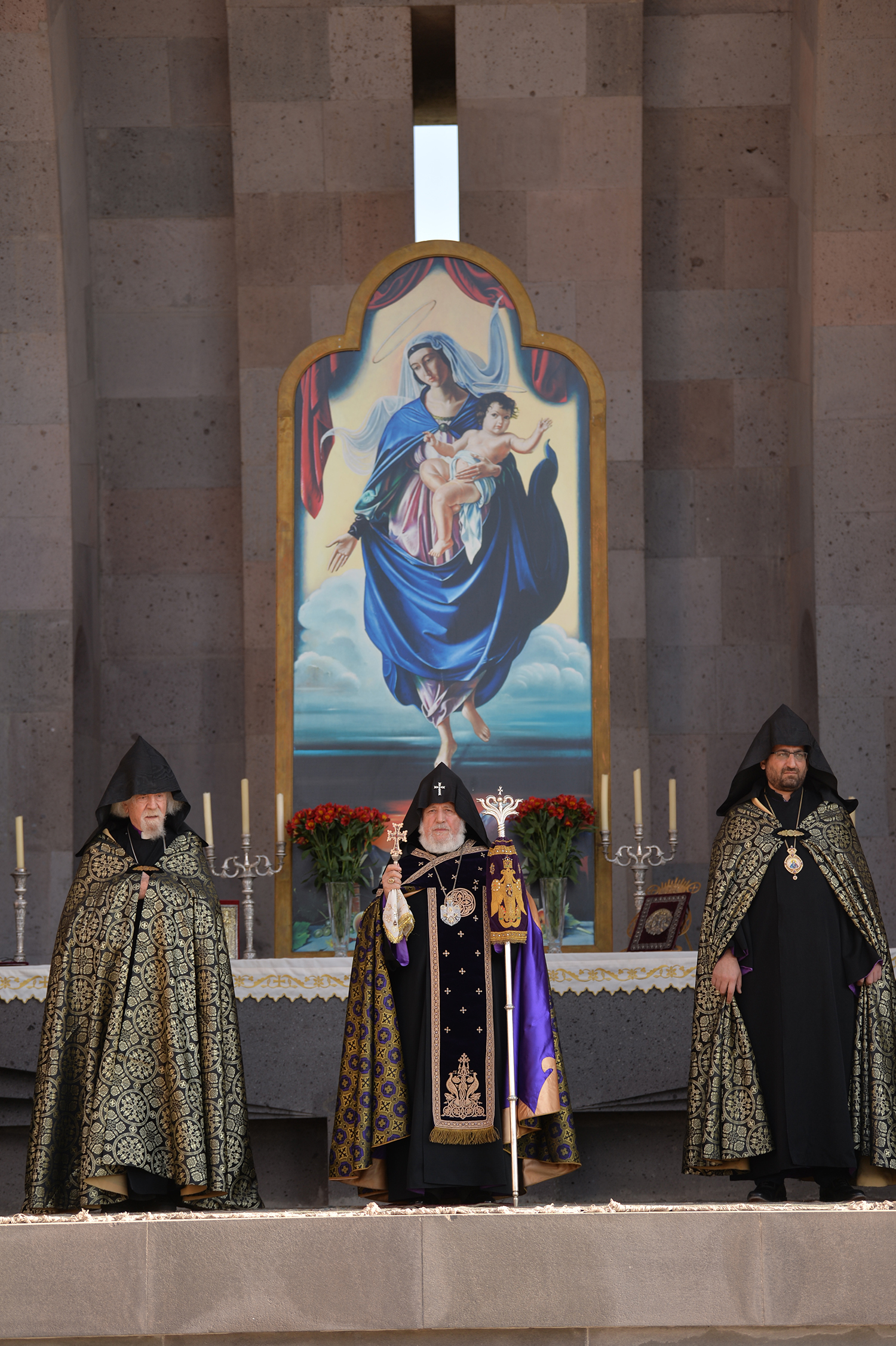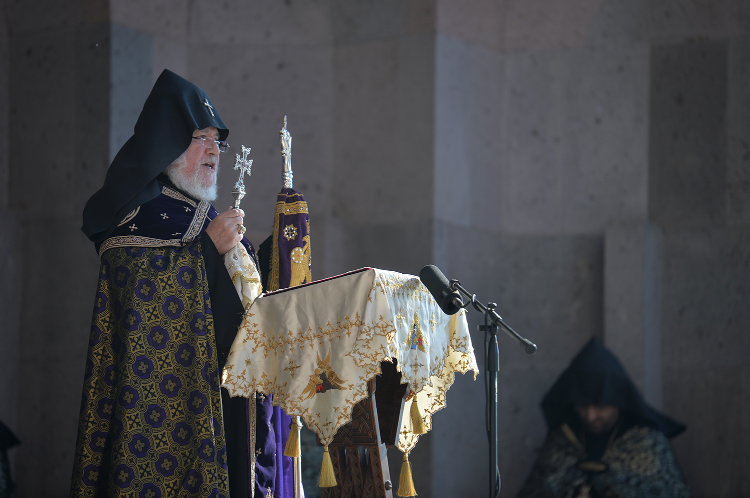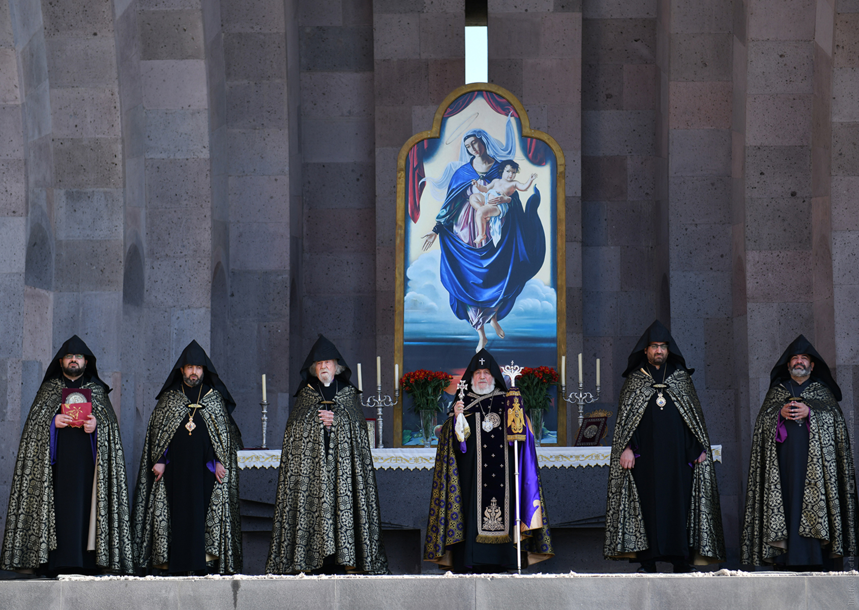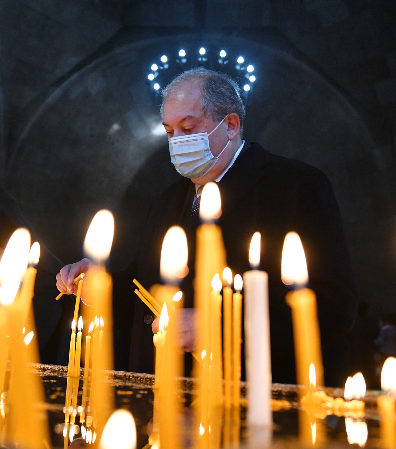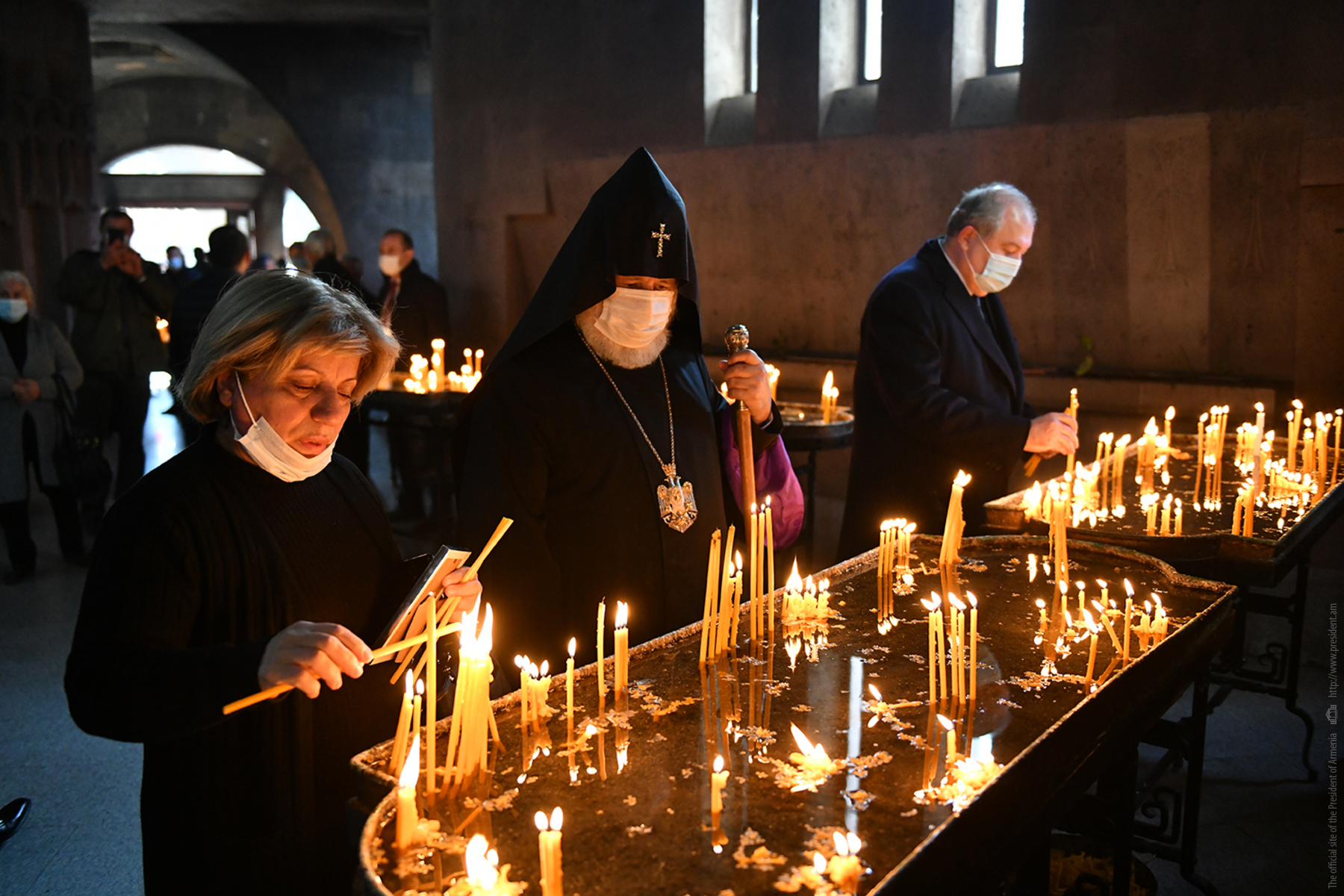 Today, the President of the Republic Armen Sarkissian visited the Mother See of Holy Etchmiadzin, and attended the commemorating service held at the open altar of St. Trdat under the chairmanship of the Catholicos of All Armenians. Catholicos of All Armenians Karekin II delivered a speech of remembrance.