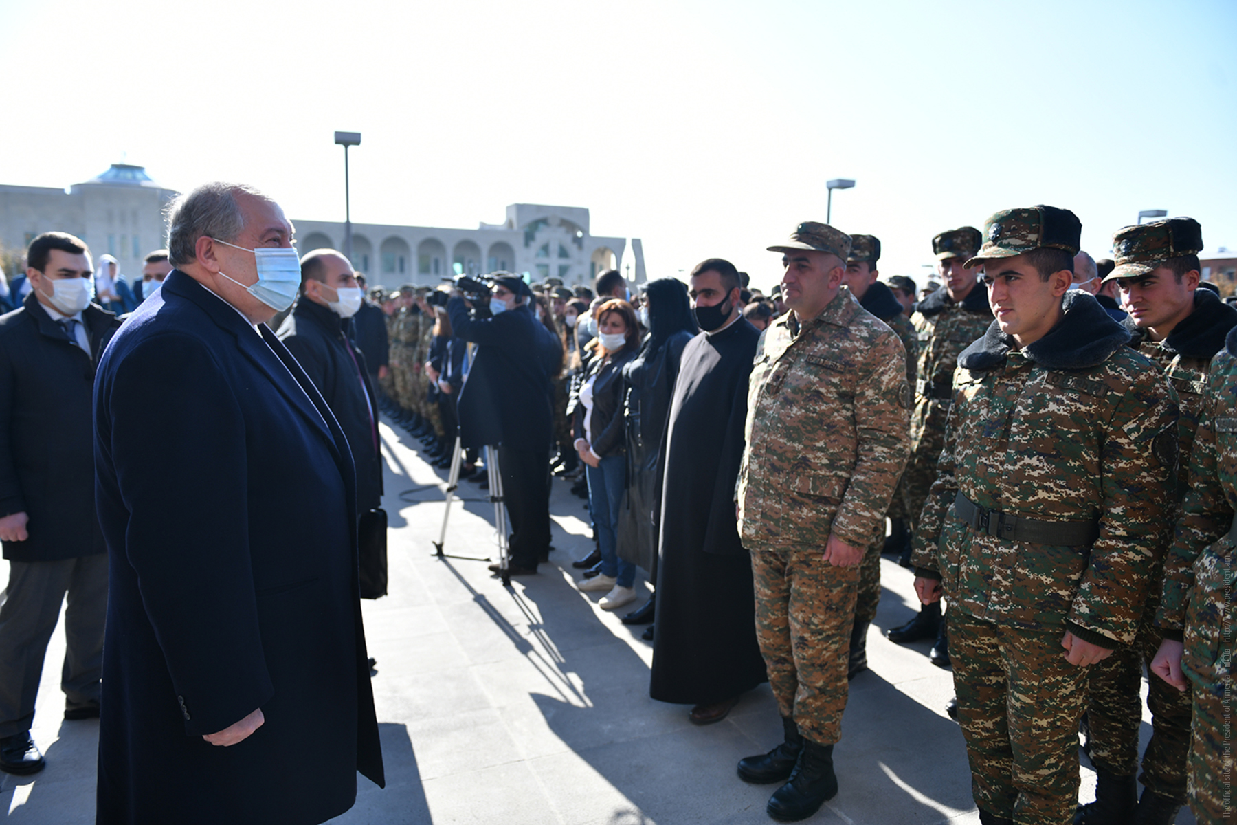 After the ceremony, President Sarkissian talked to the parents of the killed servicemen, the military and freedom fighters, lit a candle in memory of all our servicemen who sacrificed their lives for the sake of Homeland.